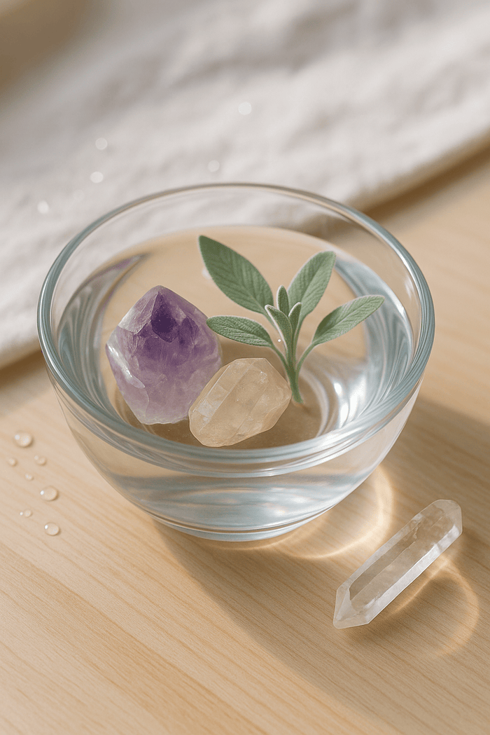 Открийте пълно ръководство за пречистващата вода: какво представлява, как се приготвя, какви ритуали и кристали я съпътстват и как осигурява духовна защита. ...