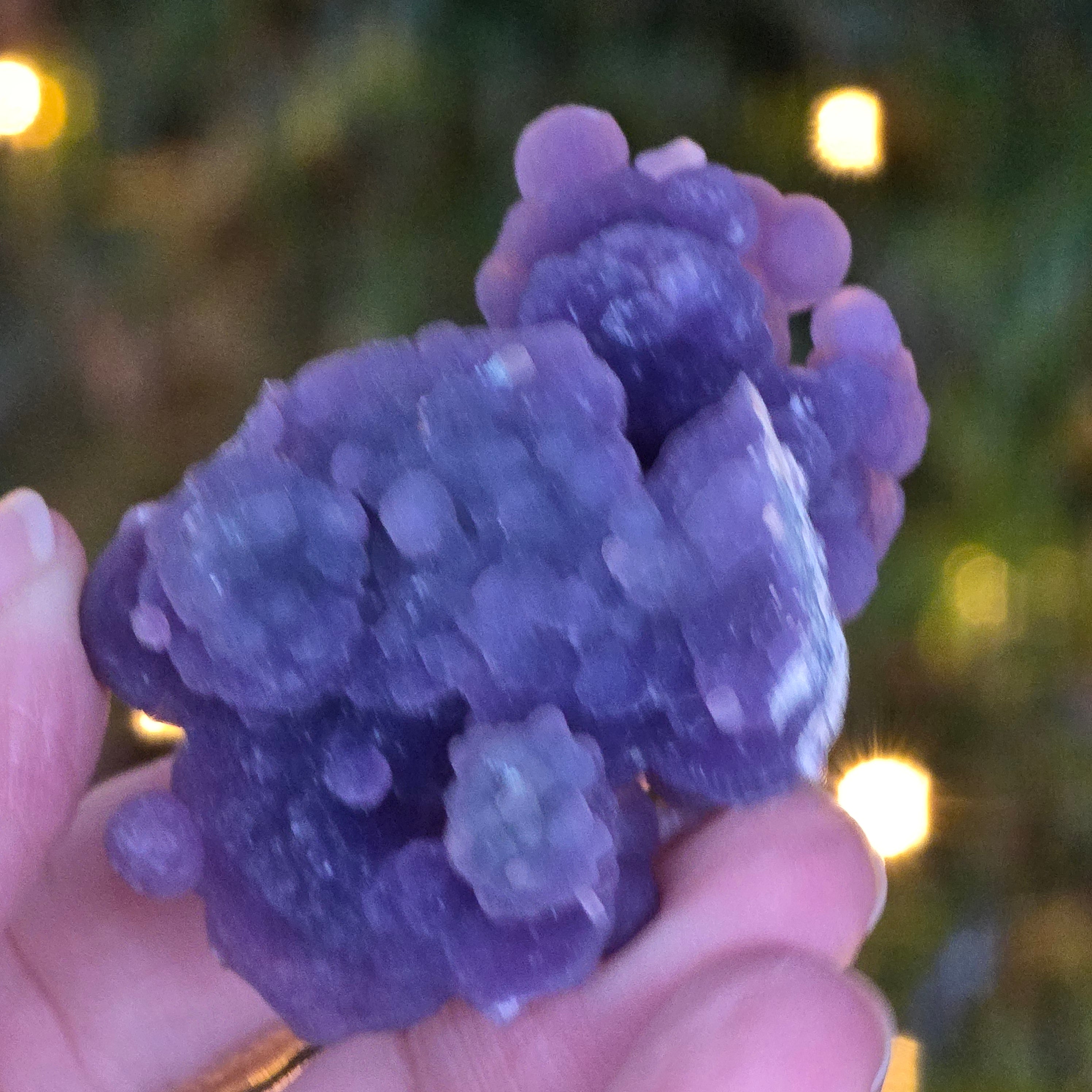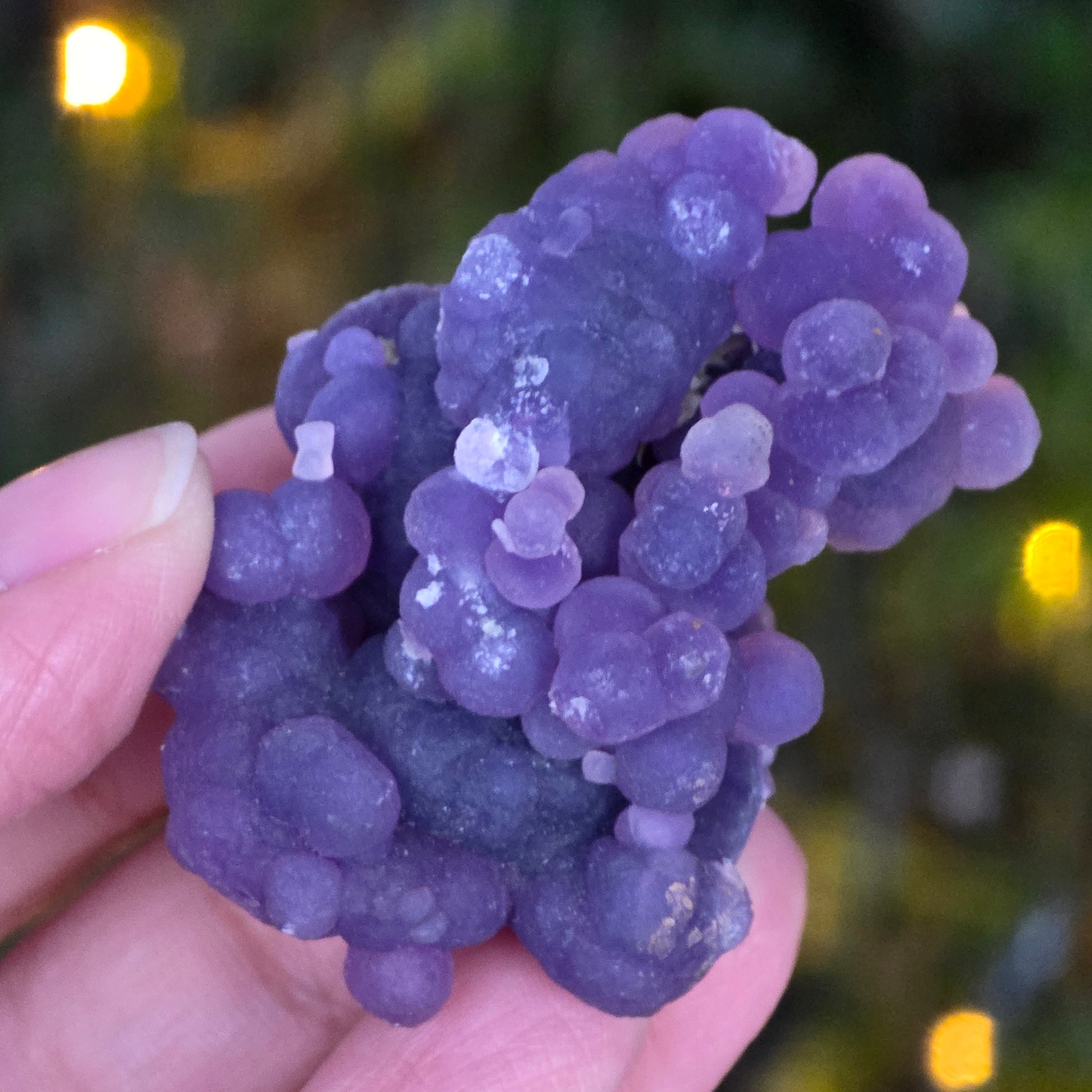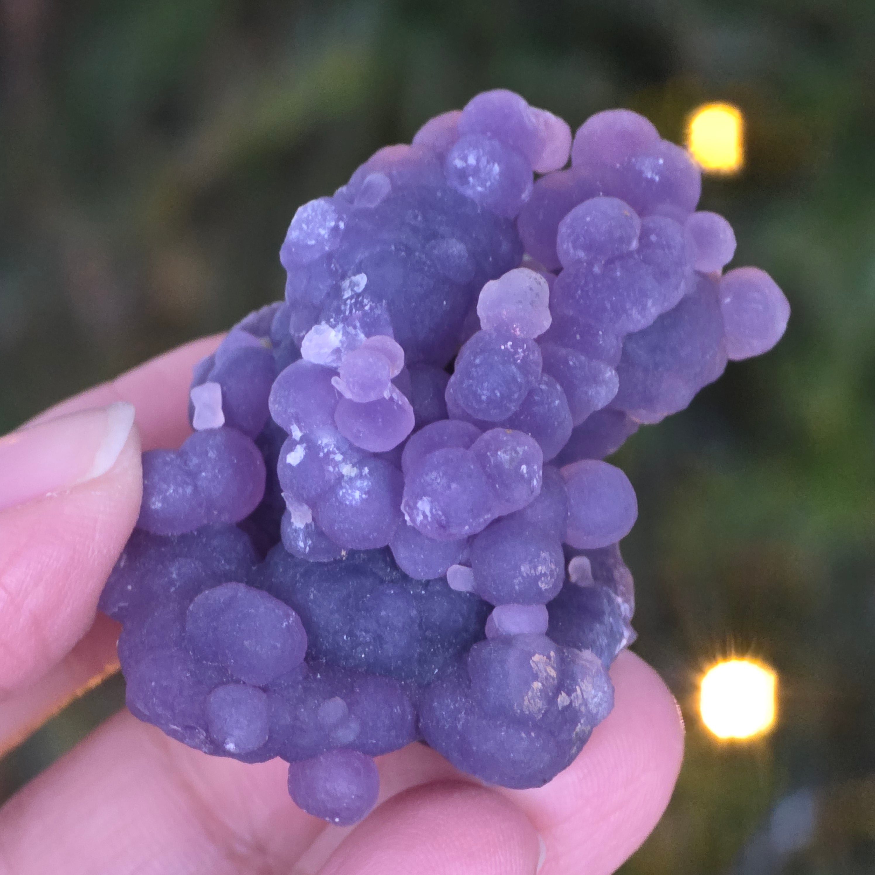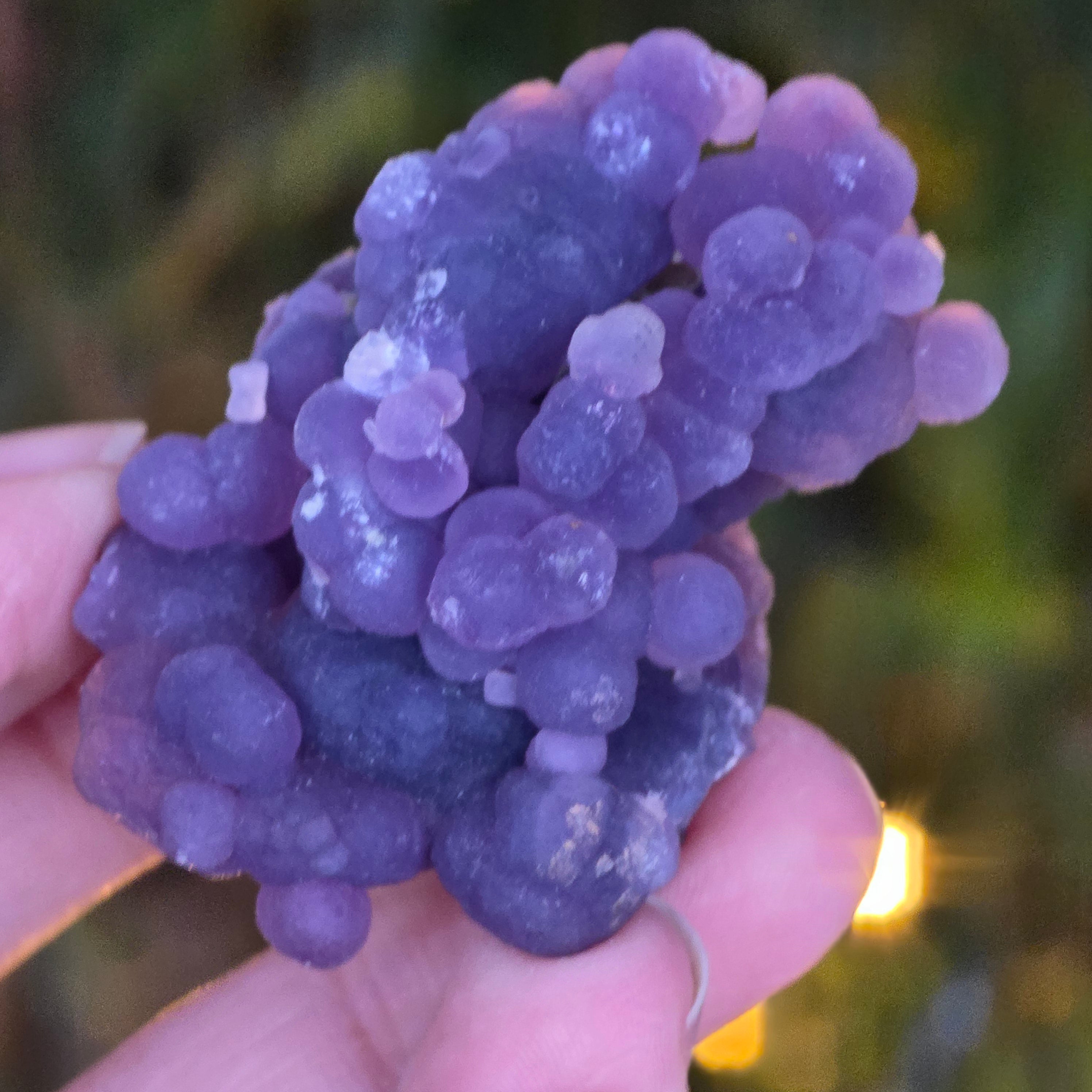 Гроздовият ахат се образува в кухините на вулканичните скали, където силициевите разтвори се охлаждат и кристализират, създавайки отличителния гроздов модел.