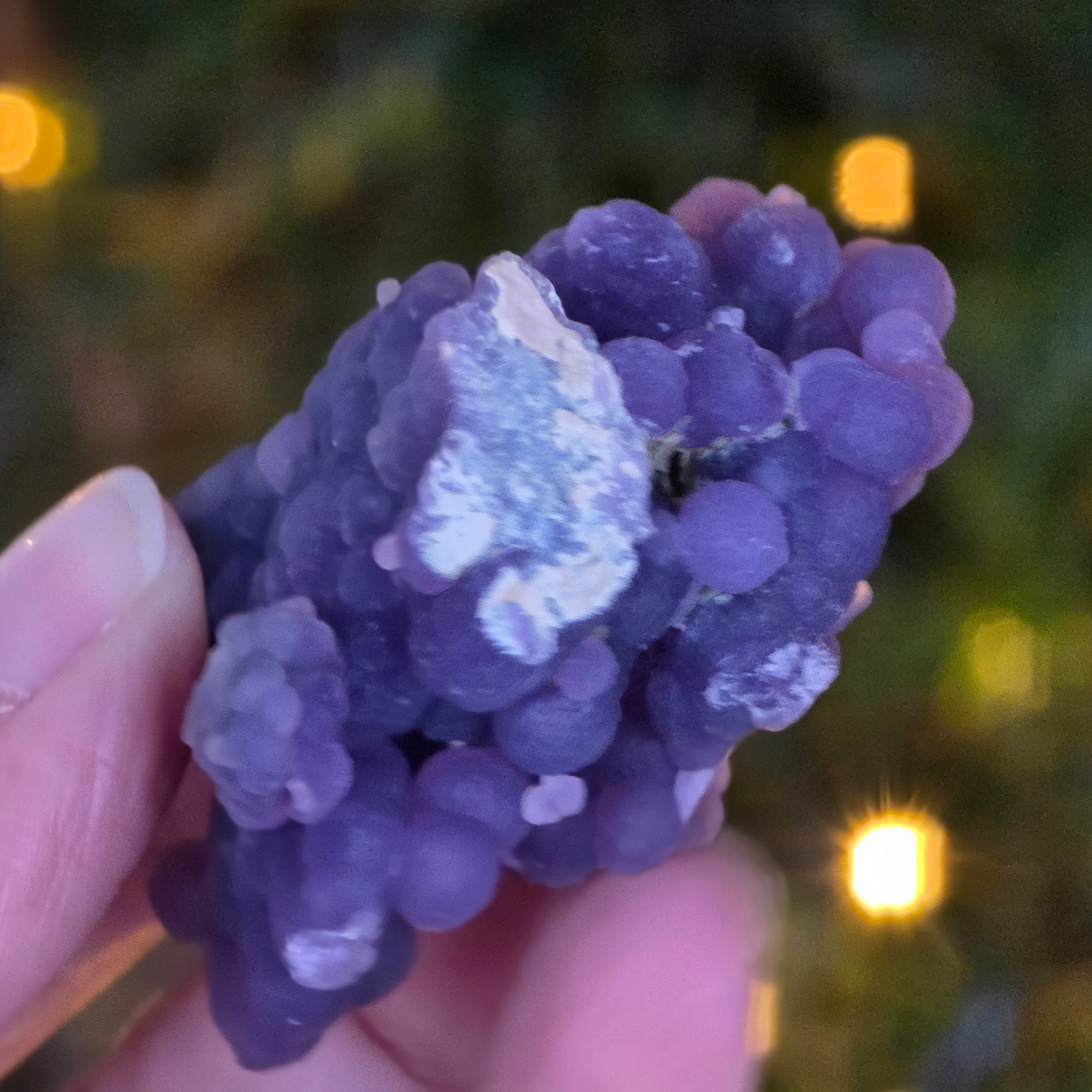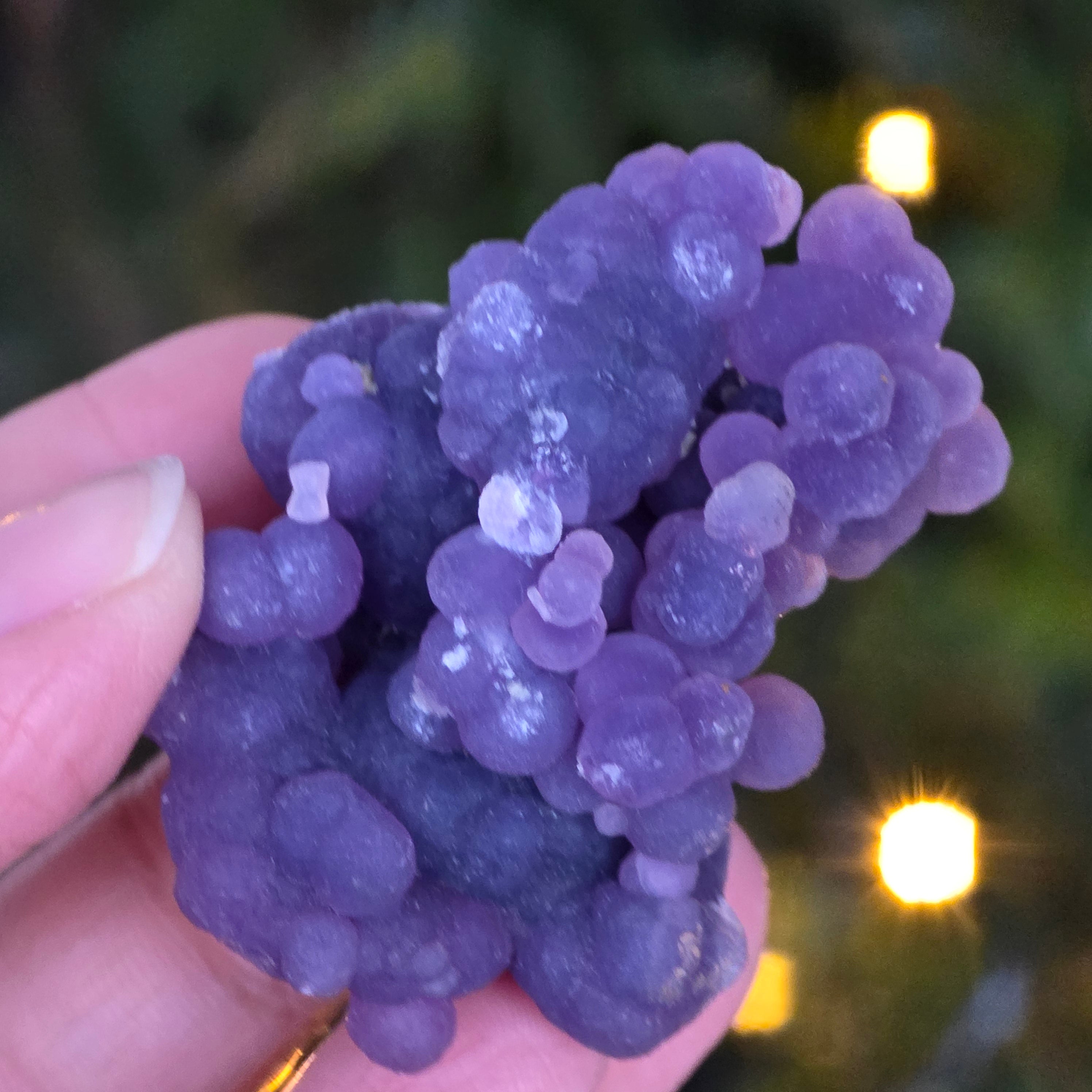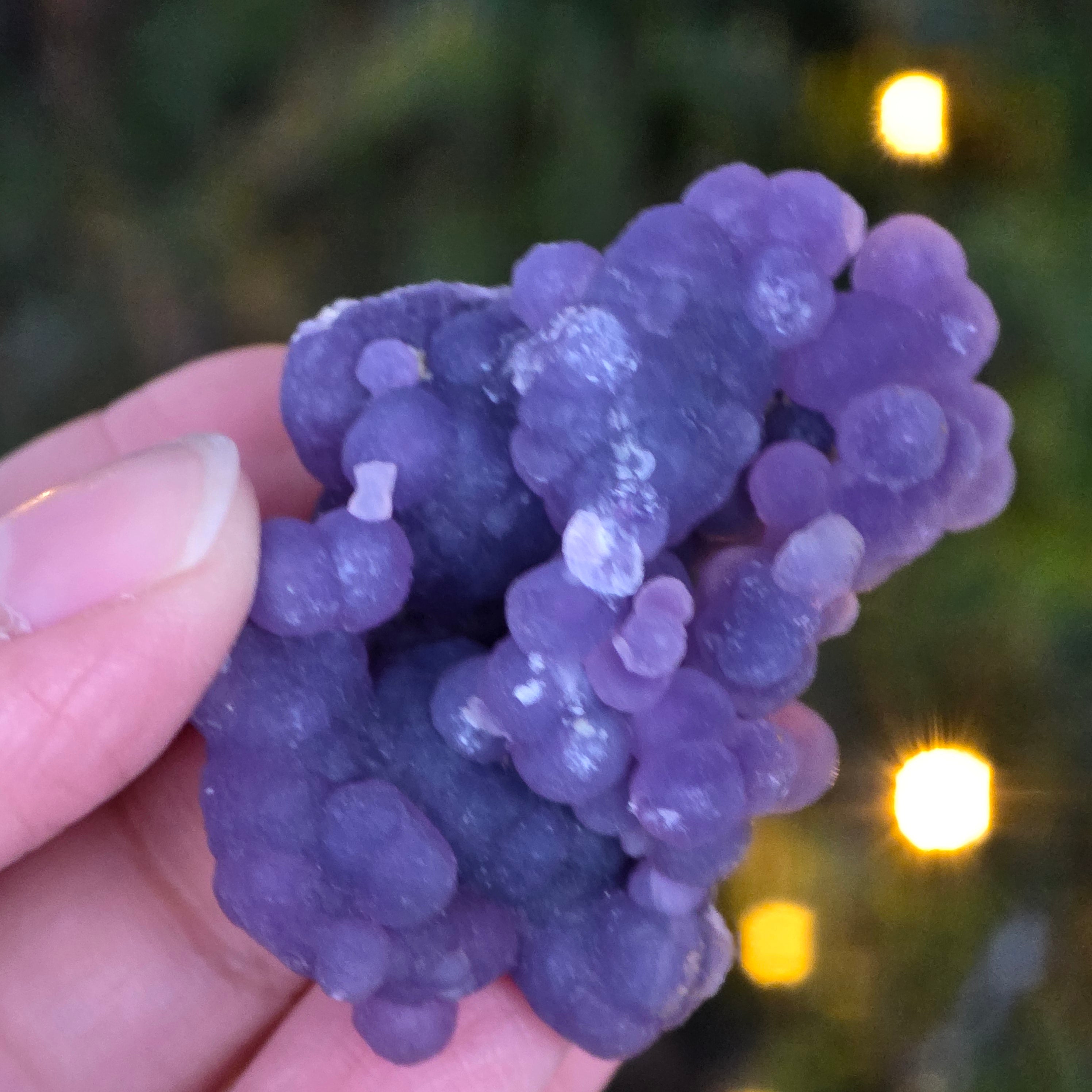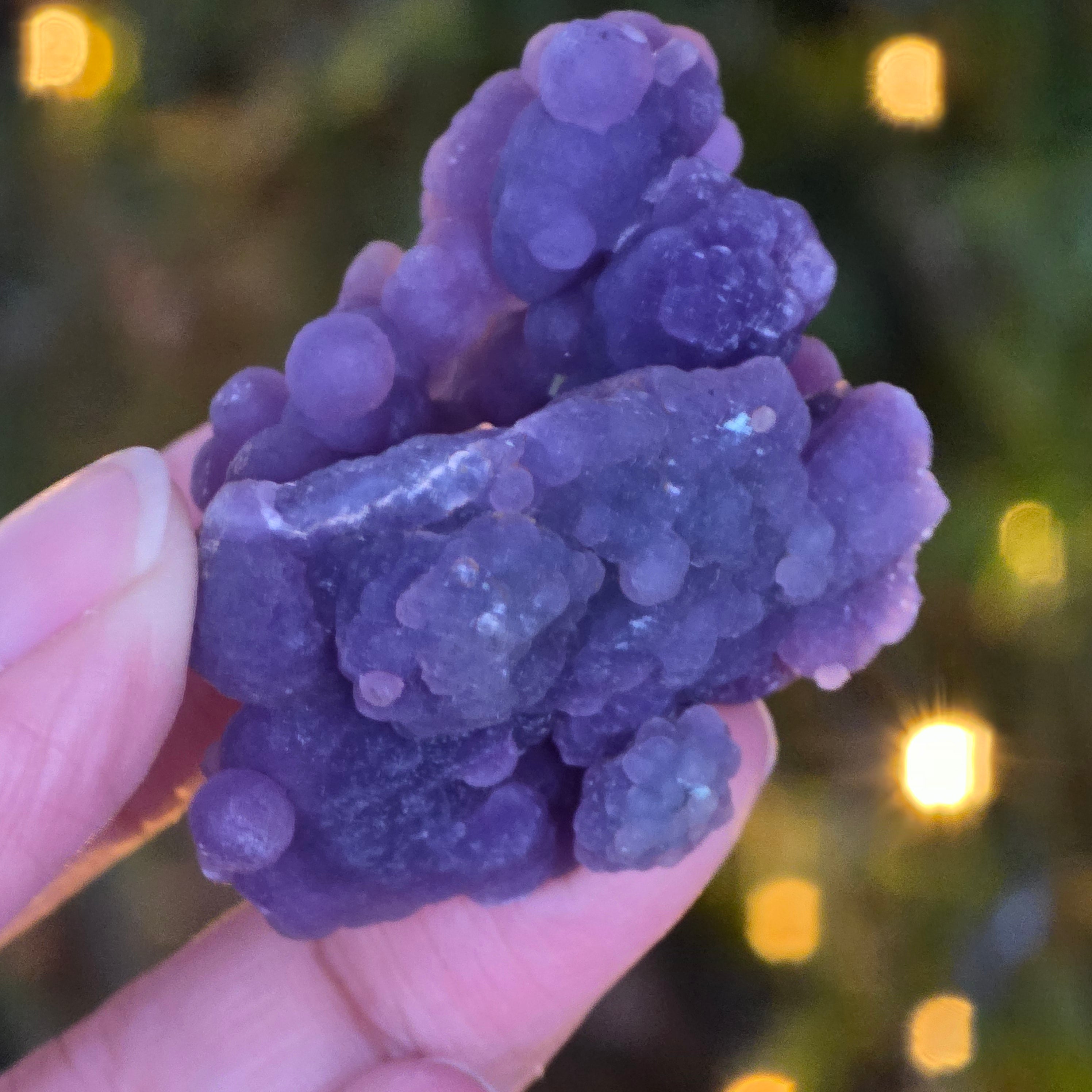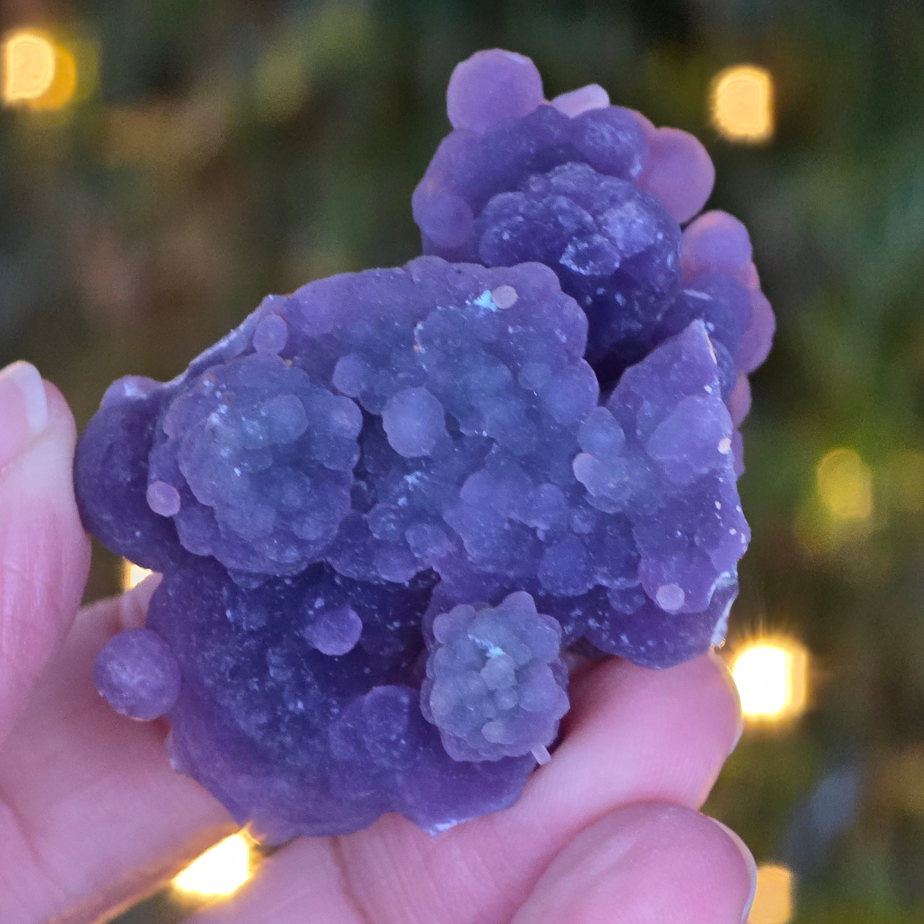 Гроздовият ахат се образува в кухините на вулканичните скали, където силициевите разтвори се охлаждат и кристализират, създавайки отличителния гроздов модел.