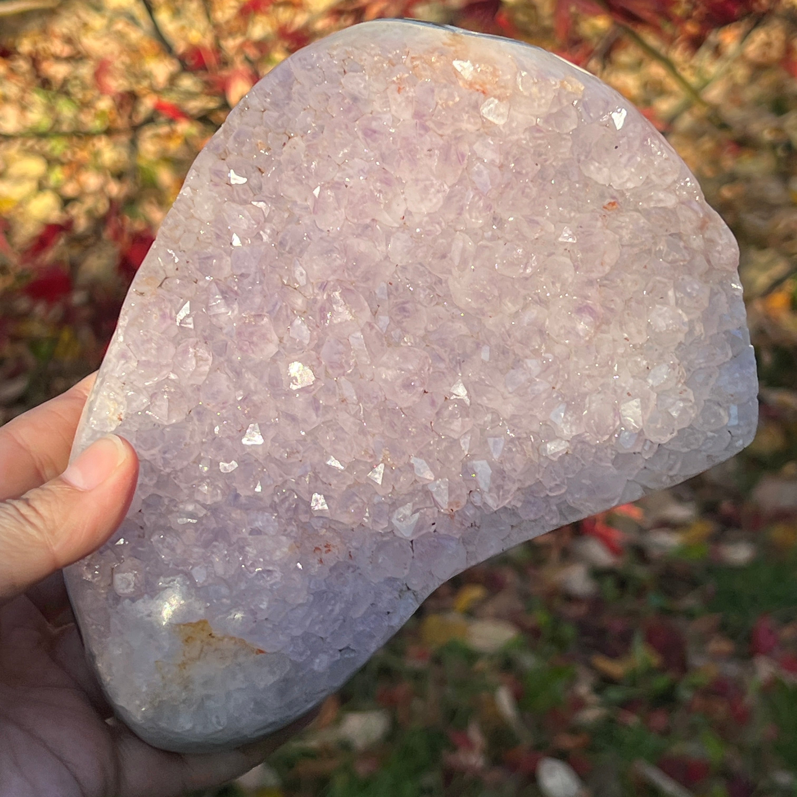 Това минно цвете от агат с аметистови кристали е рядка естествена находка, образувана в недрата на Земята, където меките линии на агата се срещат с мистичното блясък на аметиста.