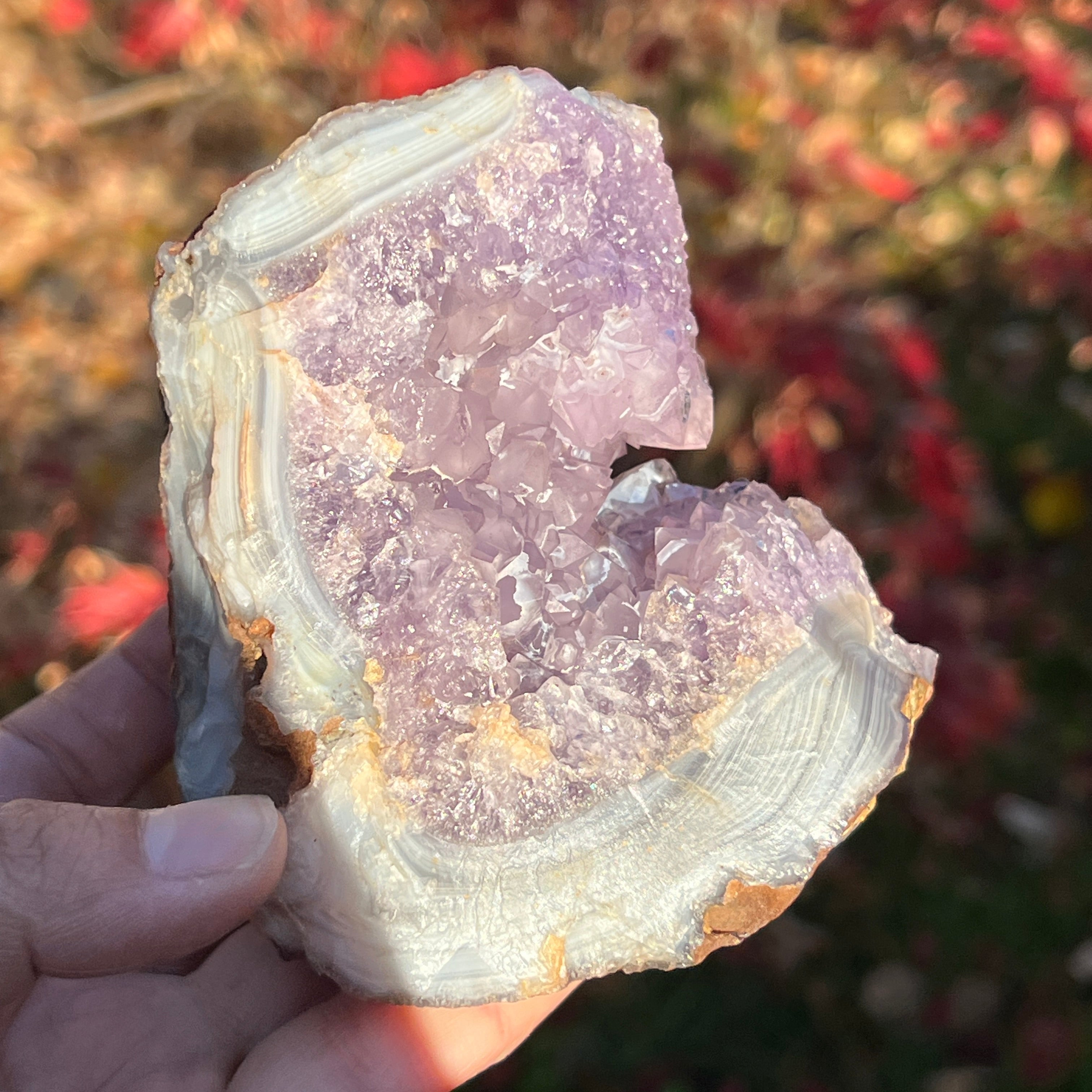 Агат с аметистови кристали – Уникален минен цвете | Модел 9