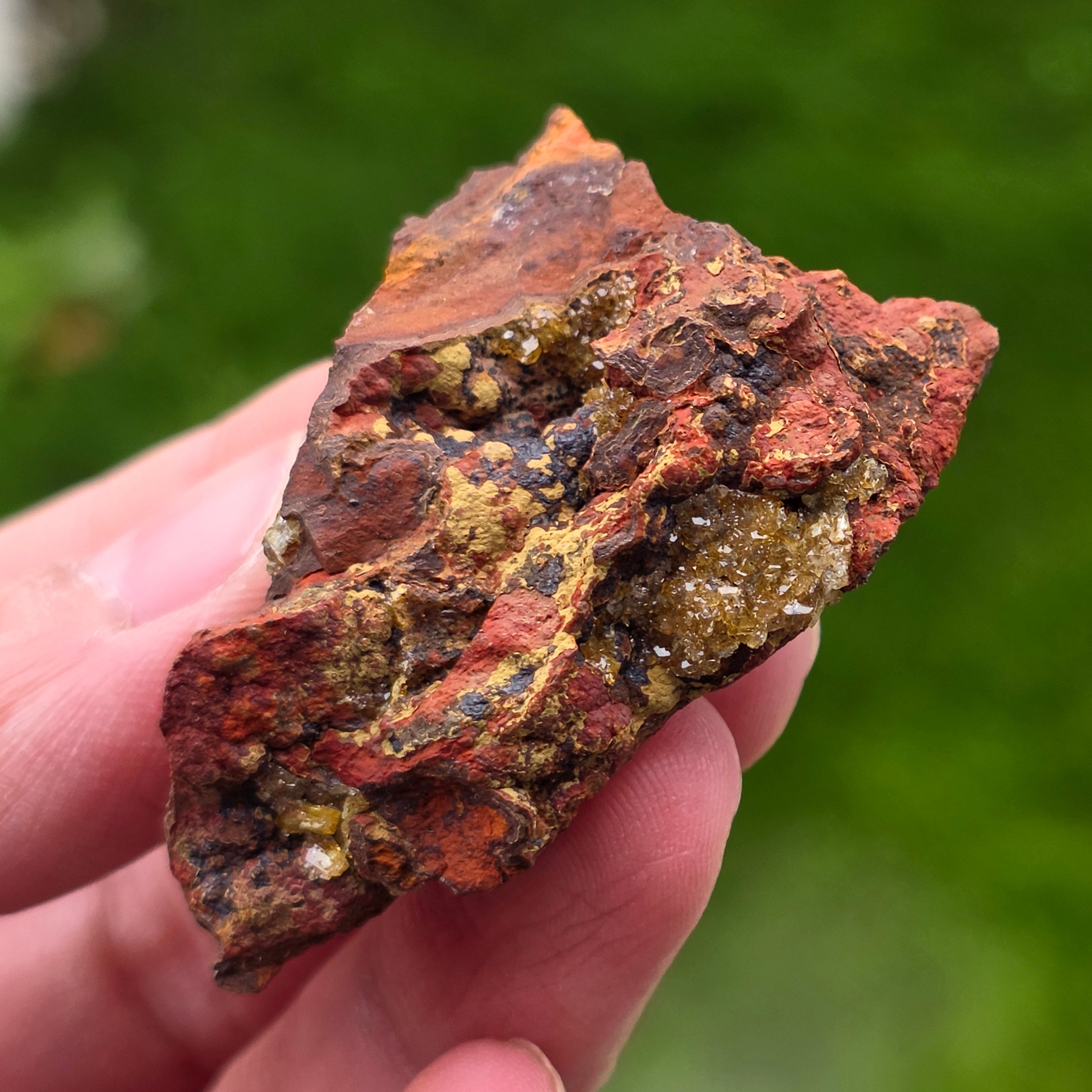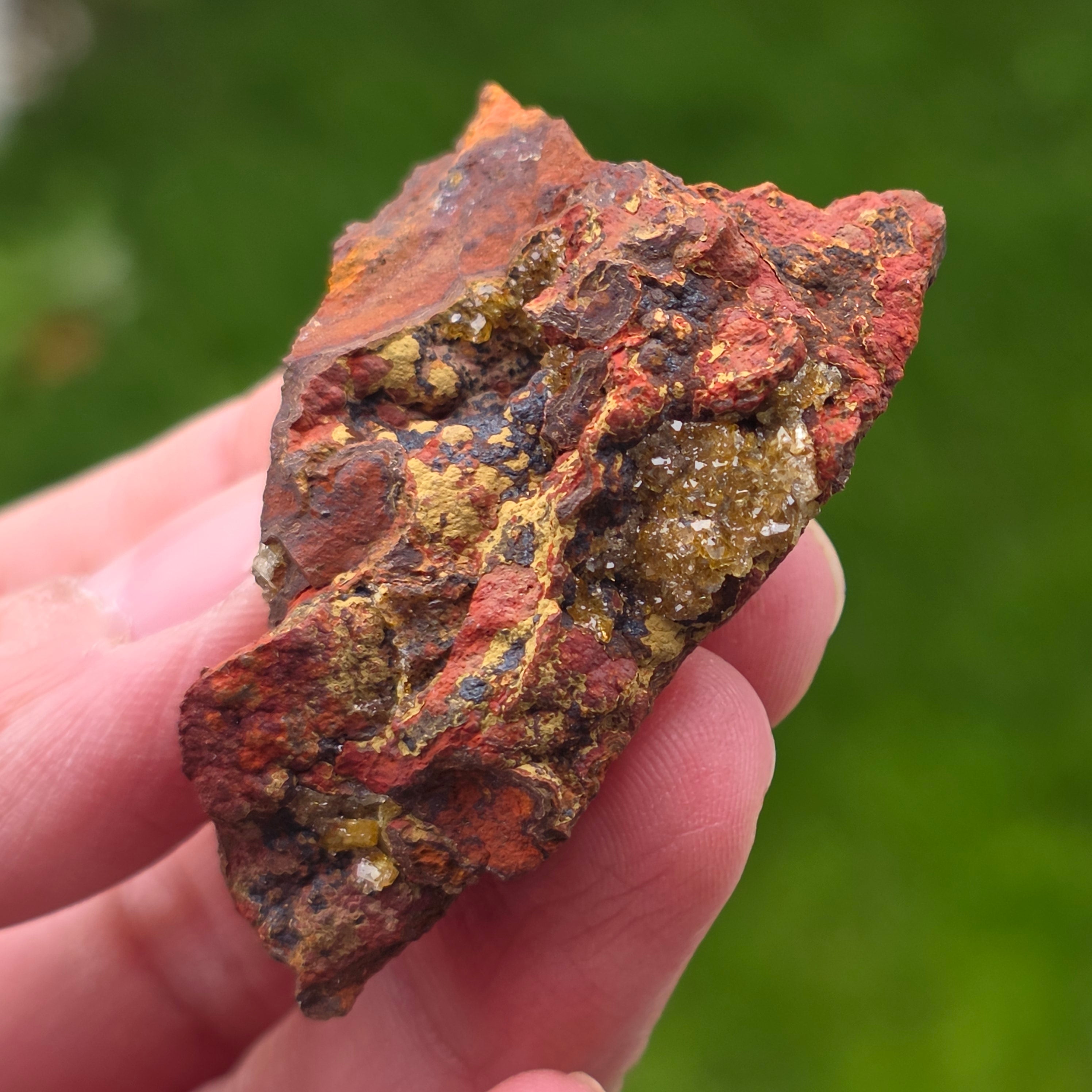 Този екземпляр от адамит от Мексико, идващ от известната мина Охуела, Мапими – Дуранго, е минералогически колекционерски образец, изключително ценен заради интензивния си жълто-зелен цвяти заради спектакуларната си флуоресценция под UV светлина. Мината Охуела се смята за едно от най-важните класически находища в света за адамит, а образците оттам са референтни за този минерал.