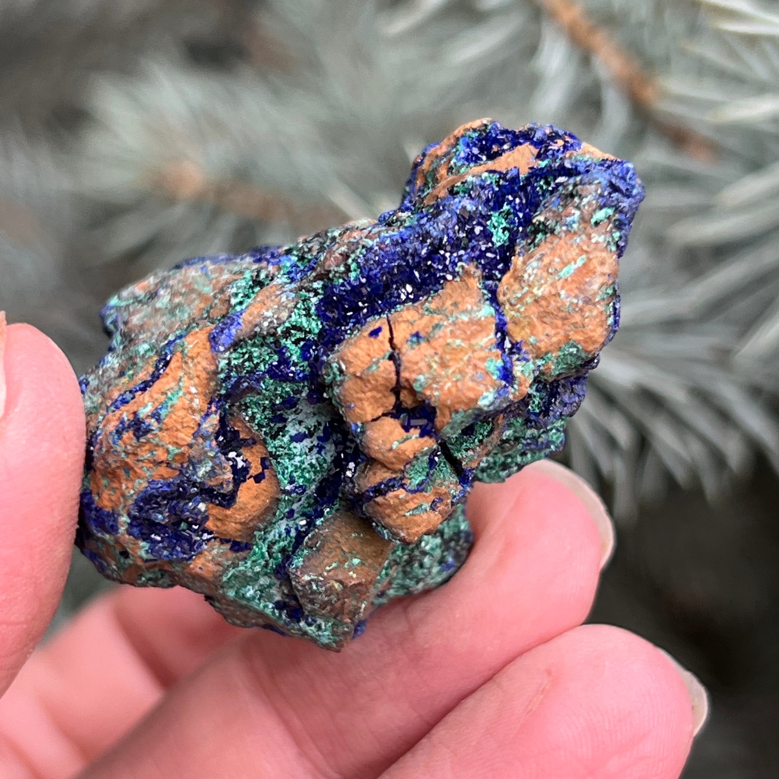Азорит & малахит суров камък модел 13, размер: 4.5 * 2.7 * 3 см
