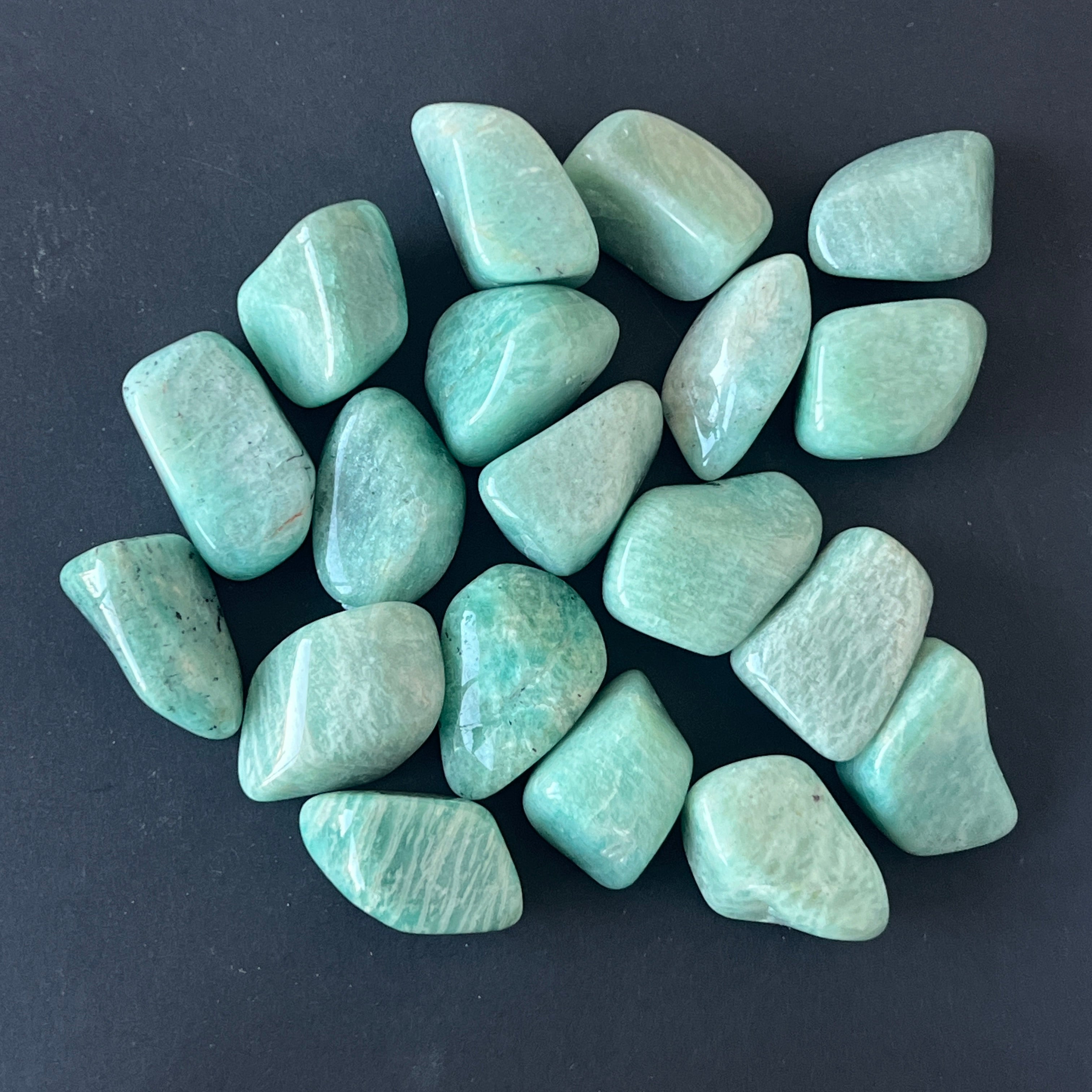 Амазонит мини валцуван камък с размери между 1.5см и 3см. Цената е различна в зависимост от размера на камъка, моля изберете желания размер.