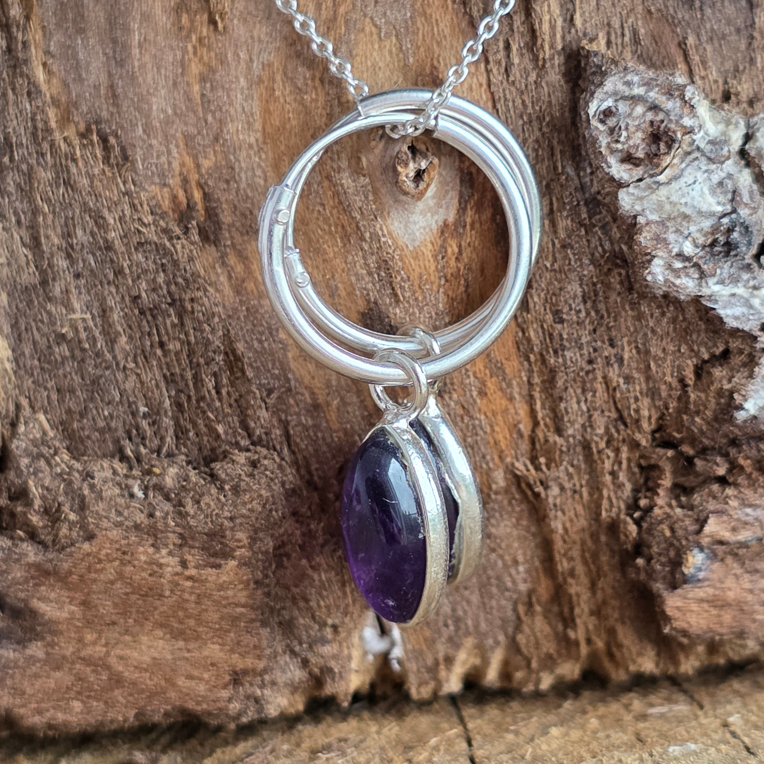 Тези обеци от Silver 925 внасят докосване на модерна изтънченост чрез съчетанието на простотата на фините кръгове и хипнотичната интензивност на Естествен аметист.