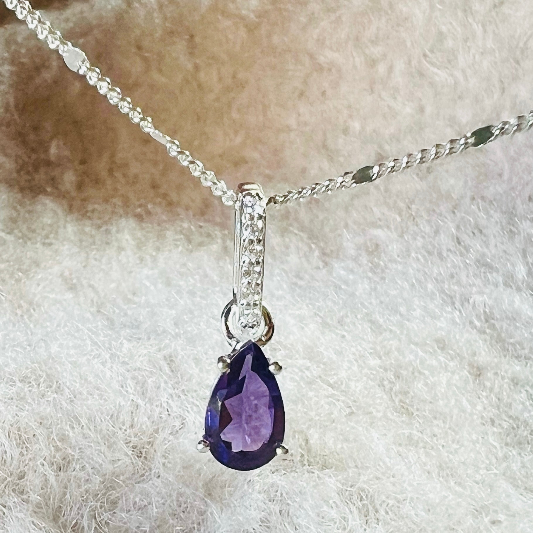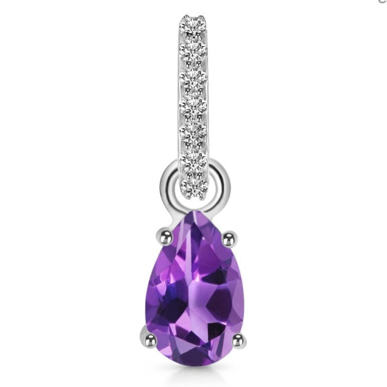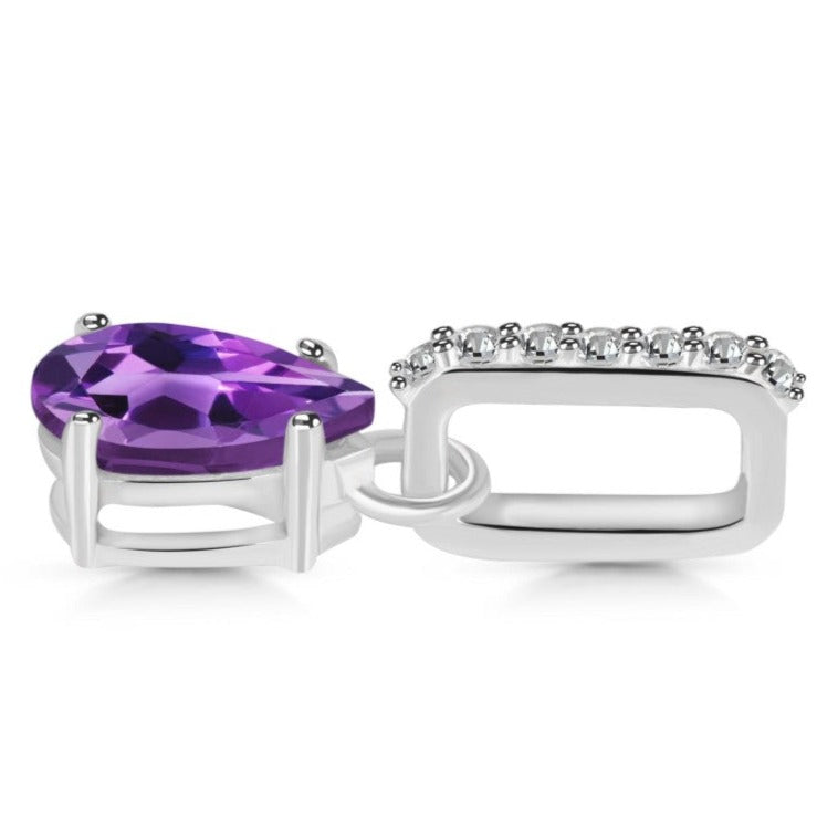 Аметистов медальон, бял топаз сребрист 8 мм круша