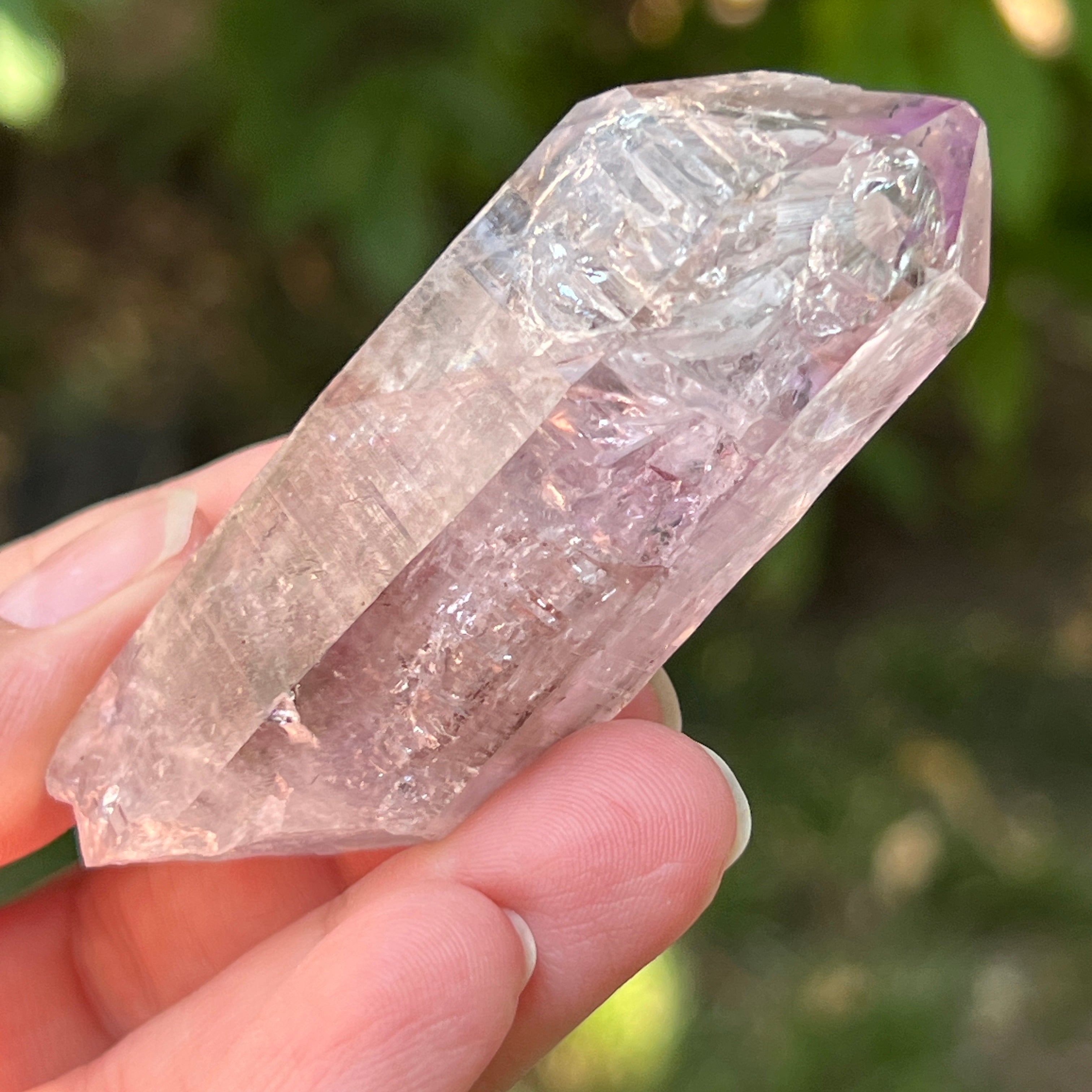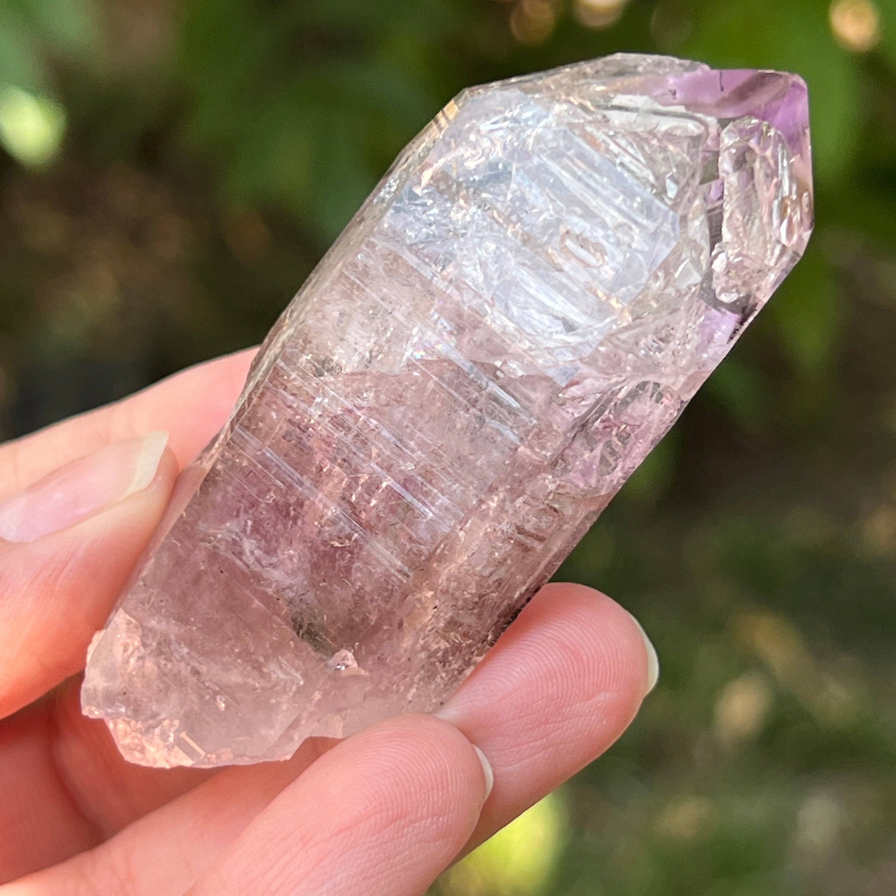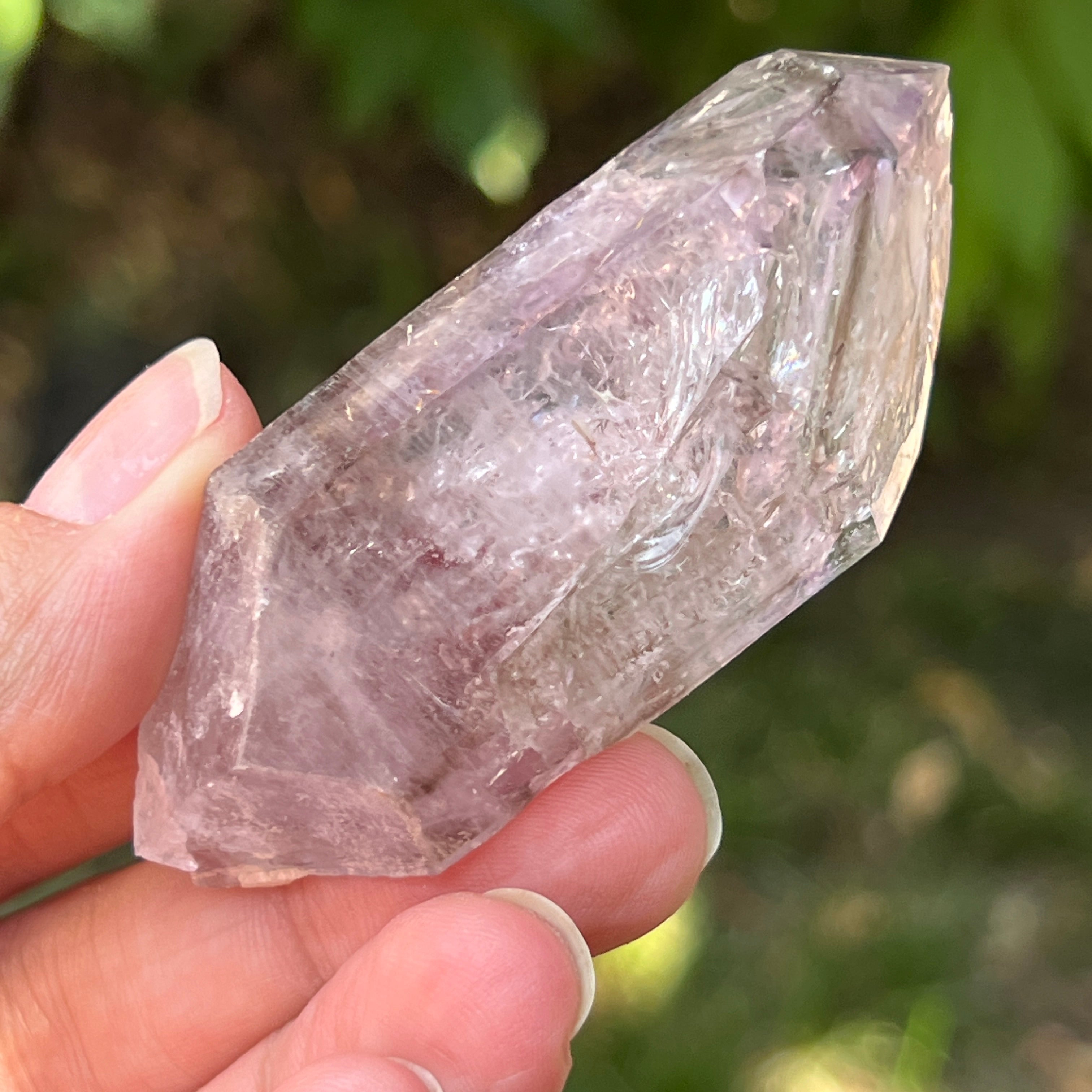 Освен красотата си, този тип аметист е известен в кристалотерапията с способността си да успокоява ума, да подкрепя духовната яснота и да носи деликатна защита в медитация или в свещени пространства.