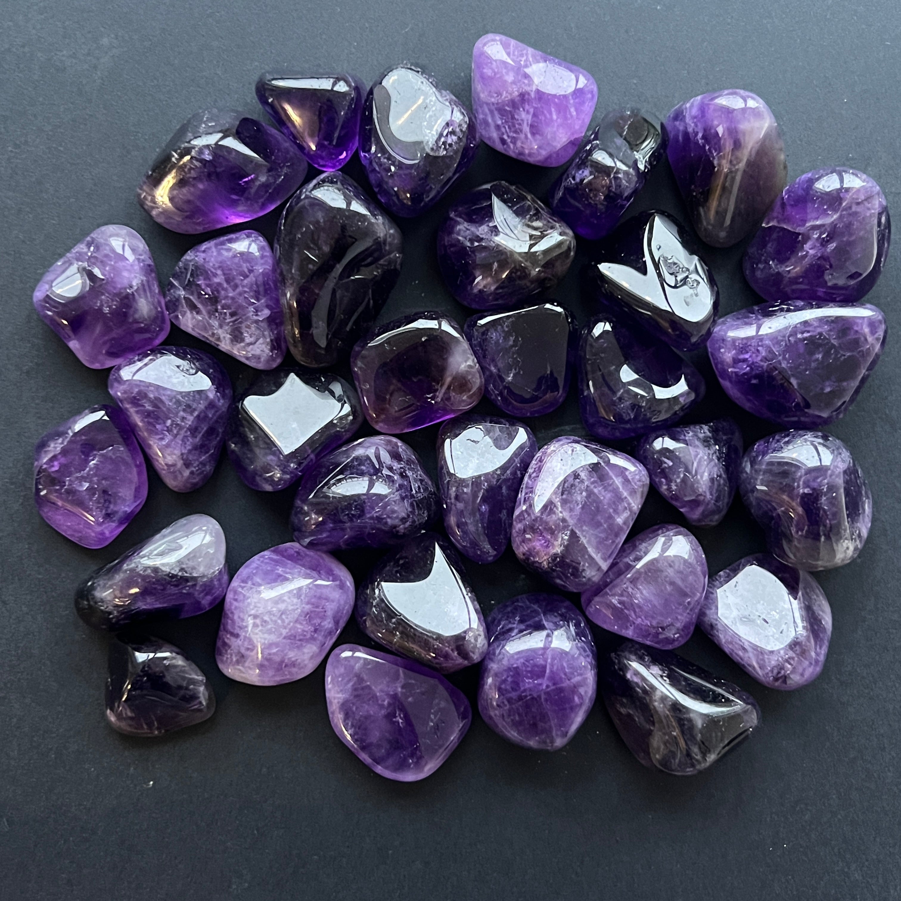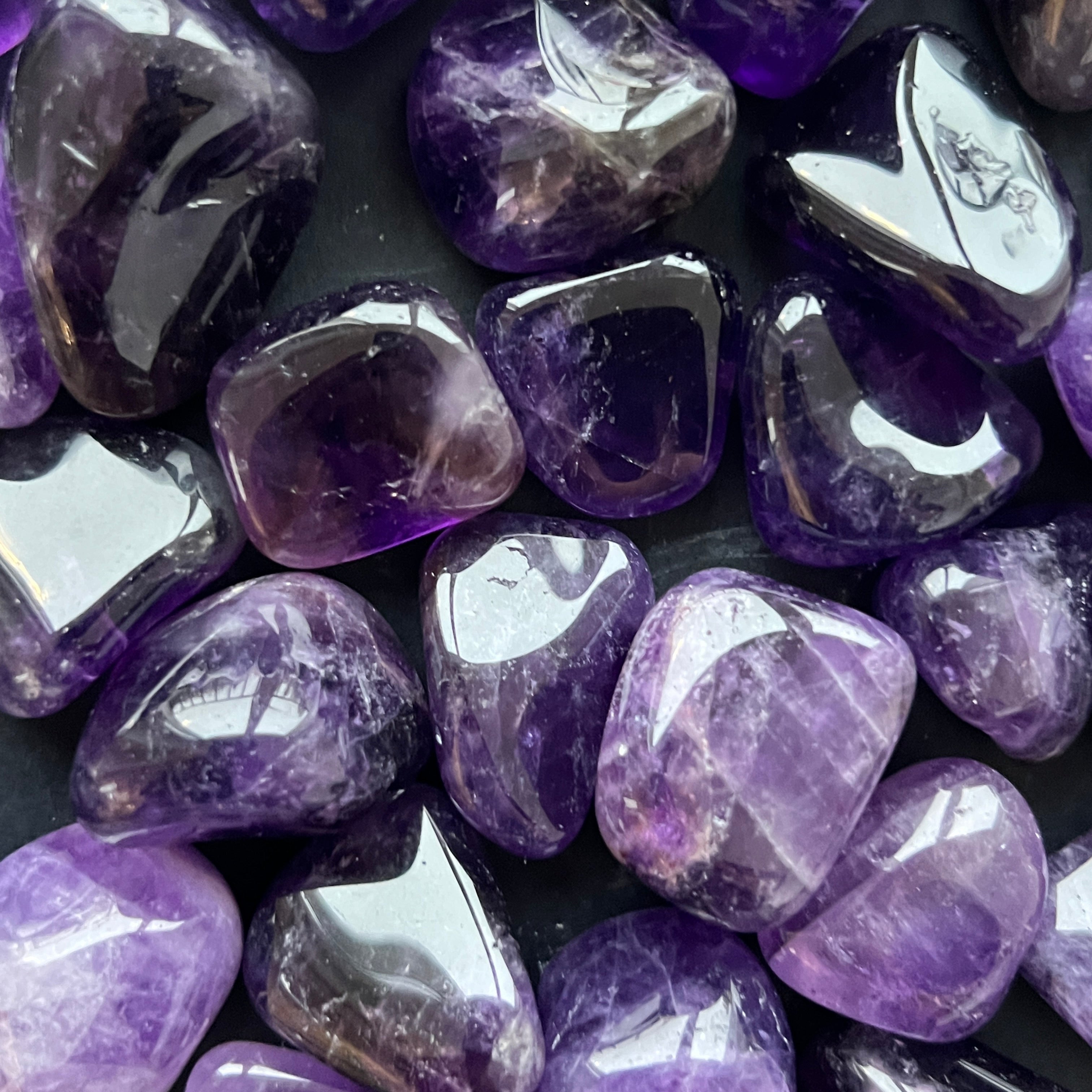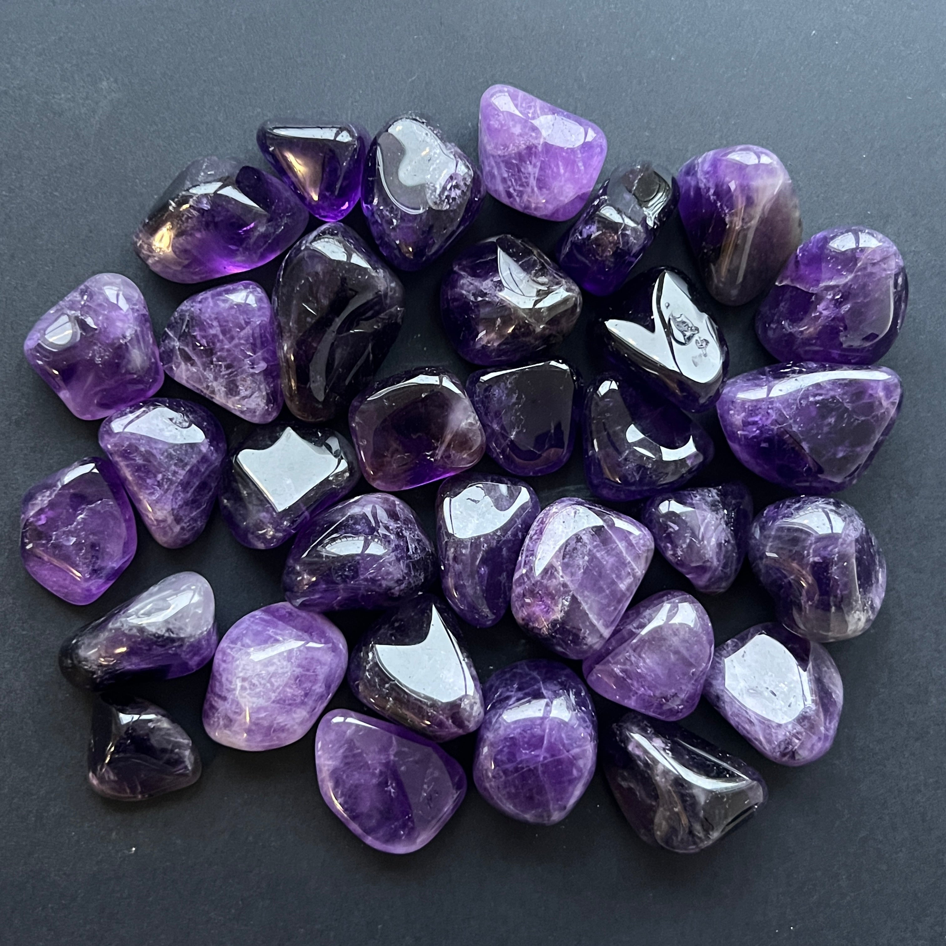Аметистът от Замбия е известен със своя наситен кралски виолетов нюанс, често пронизван от прозрачни отблясъци и деликатни иризации. Всяко полирано камъче е малко произведение на естественото изкуство, шлифовано, за да подчертае дълбочината на цвета и чистата му енергия.