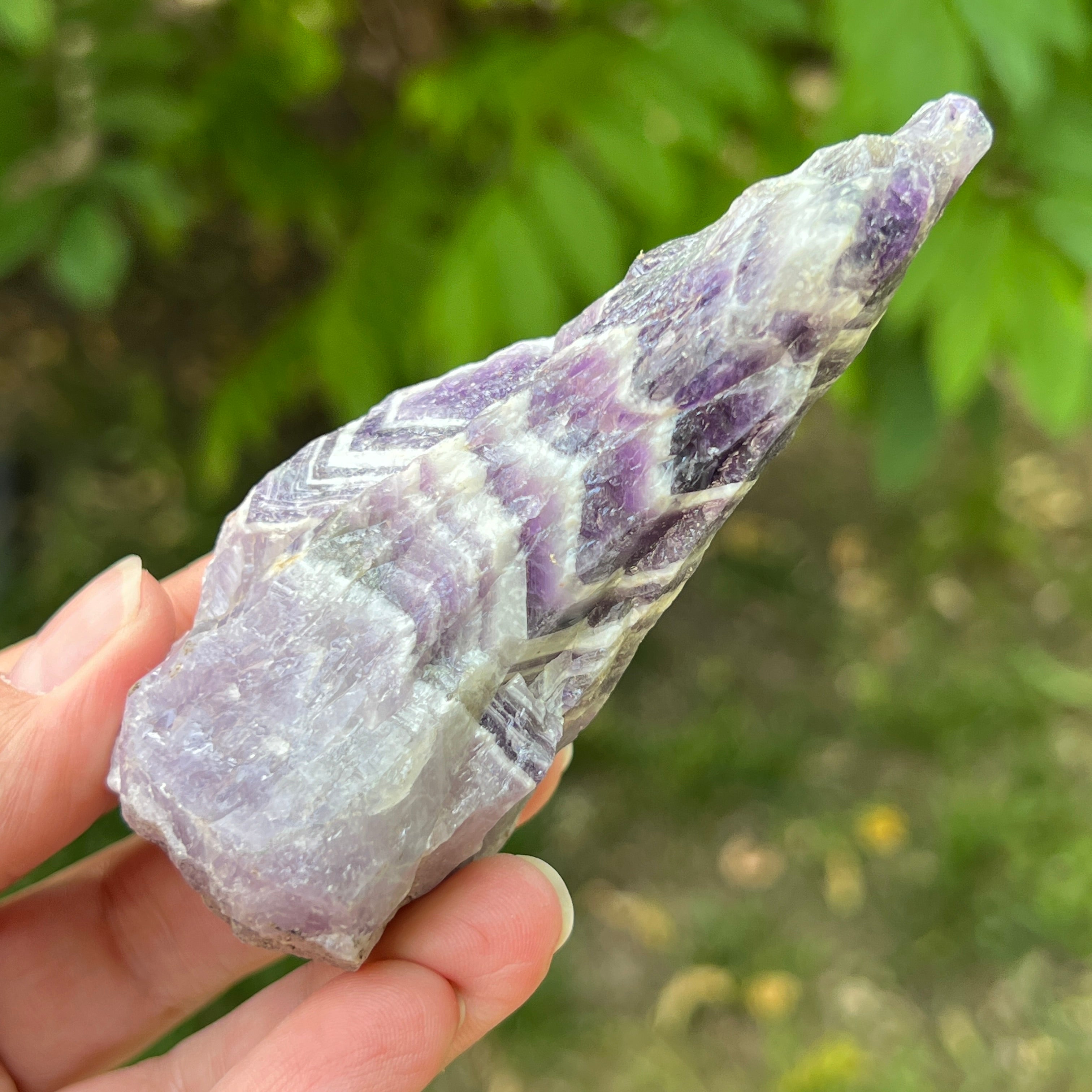 Chevron Amethyst може да се използва при медитация, като бижу или за добавяне на естествен и елегантен вид към вашия дом или офис.
