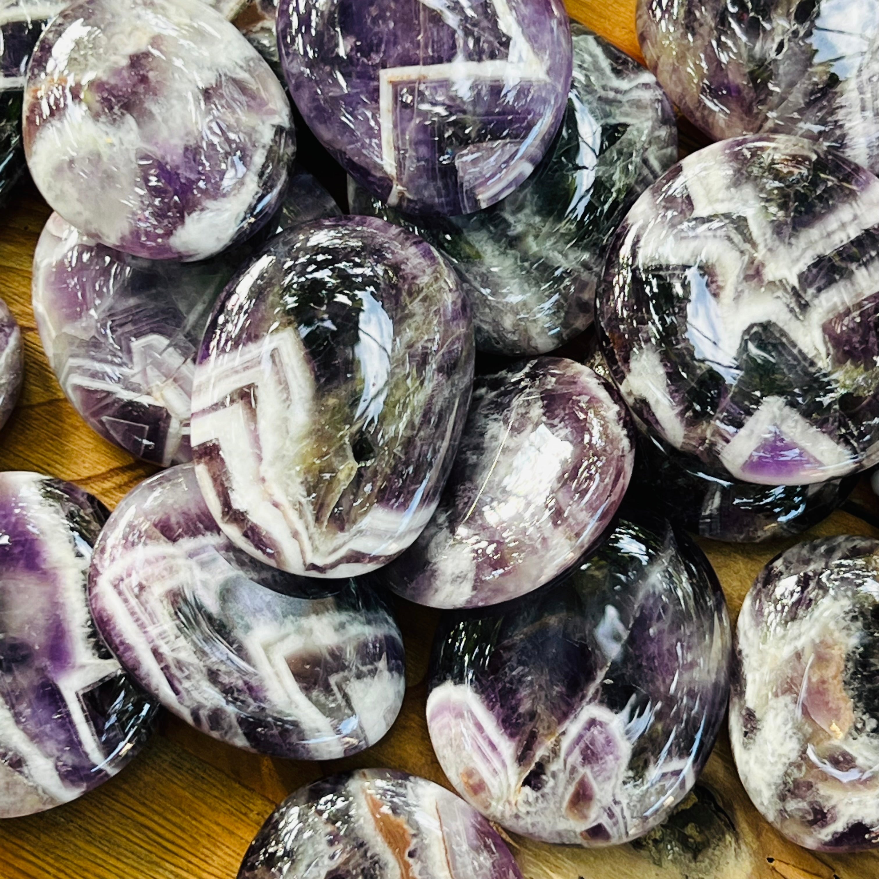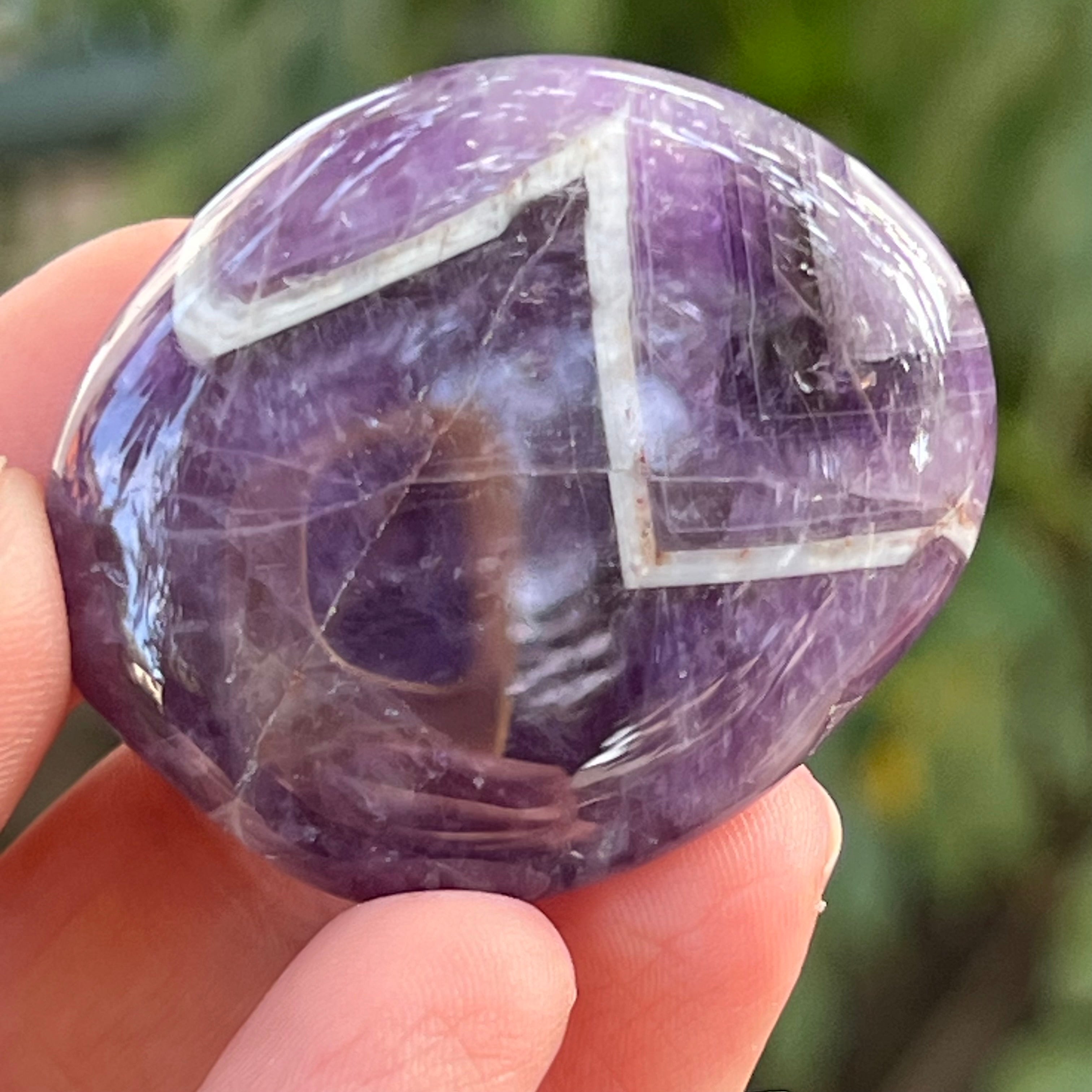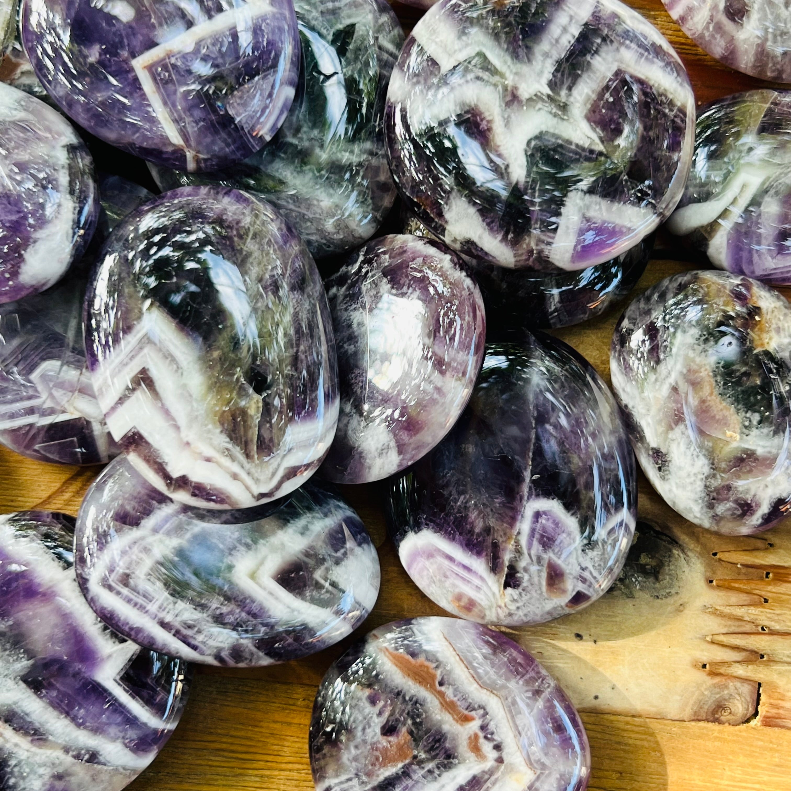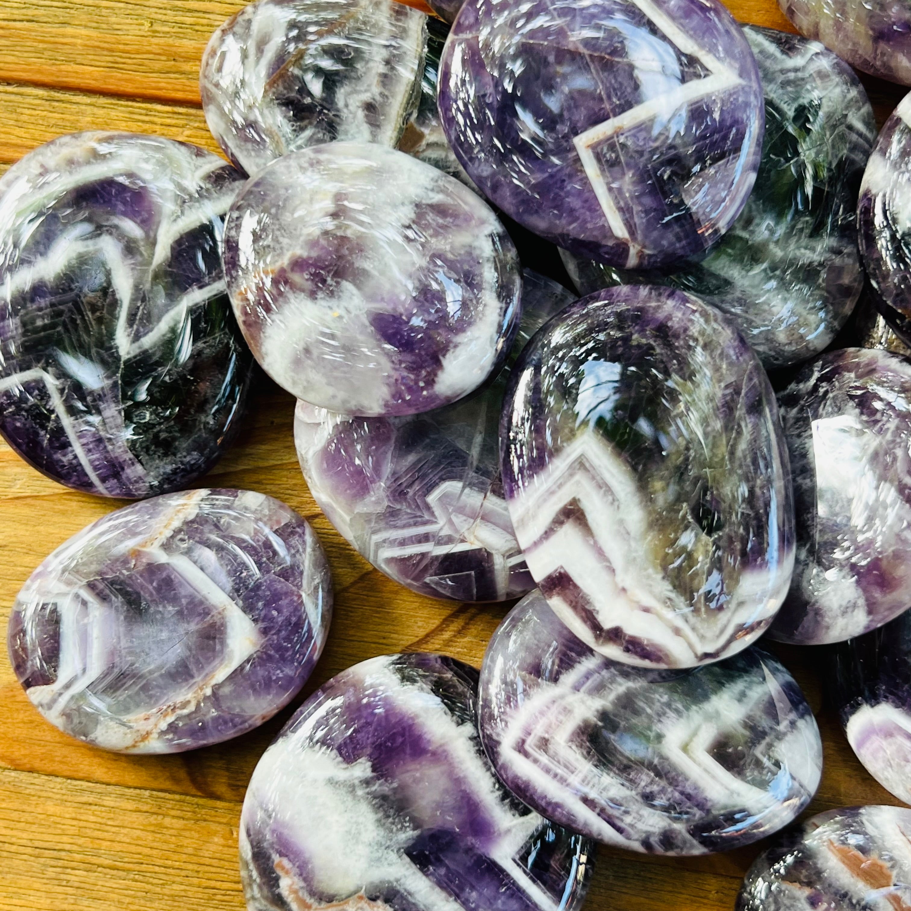 Аметистът Chevron е известен със свързаността си с коронната и третото око чакри, увеличавайки интуицията и способността за вземане на решения.