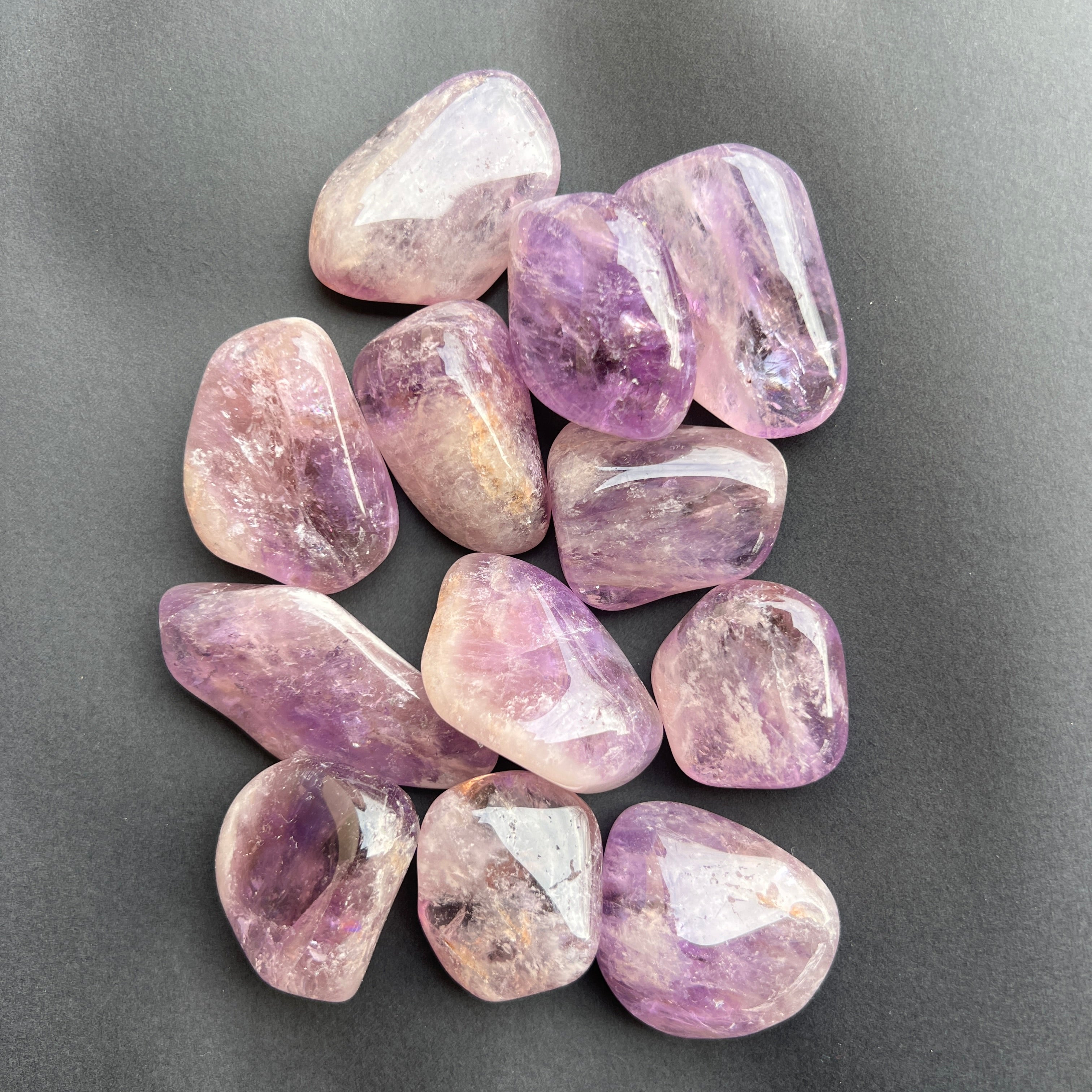 Аметрин аметист полирано камъче качество B размер L, размери между 3-6 см. Моля, изберете желания размер. Цената е за брой.