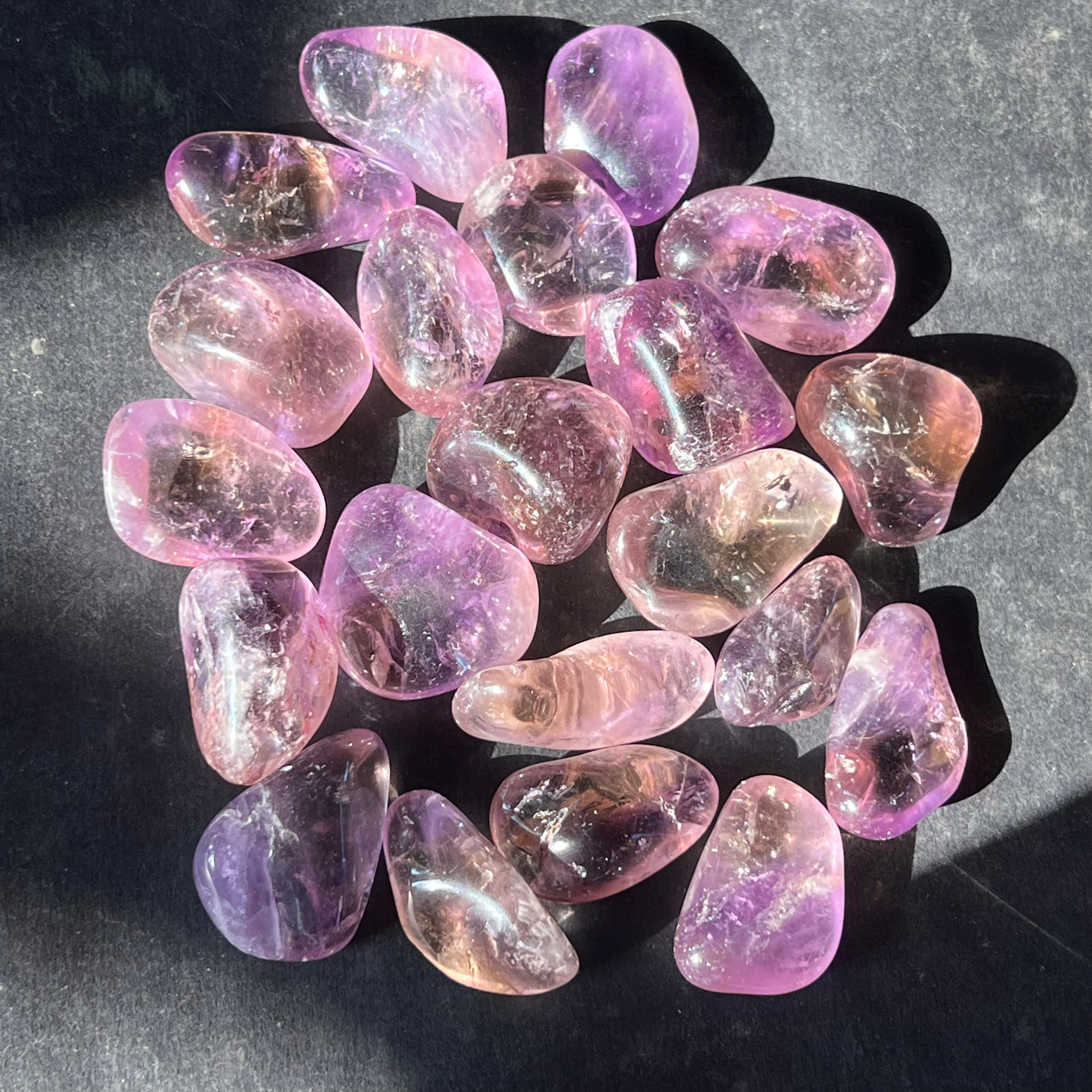 Малък полиран аметрин, с размери между 2.5-3.5 см. Цената варира в зависимост от размера на камъка, моля изберете желания размер. Цената е за едно парче.