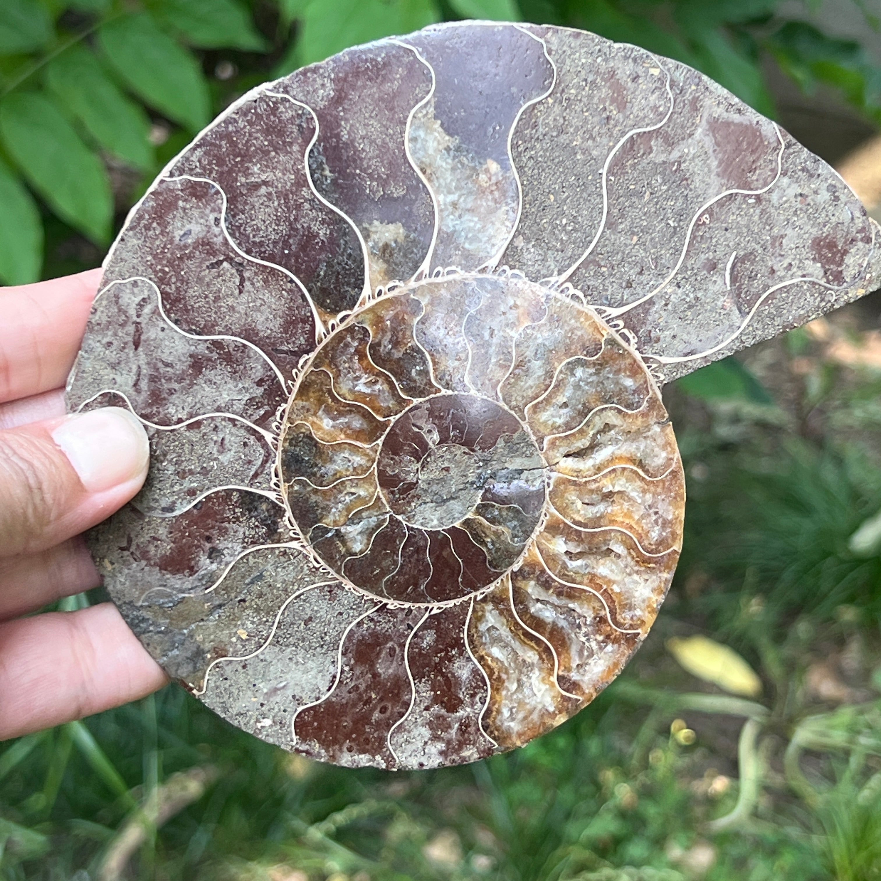 Фосилните кристали от аммонит са изработени от автентични аммонитови фосили. Тези фосили могат да имат различни размери и украшения в зависимост от вида и геоложкия период, в който са живели.