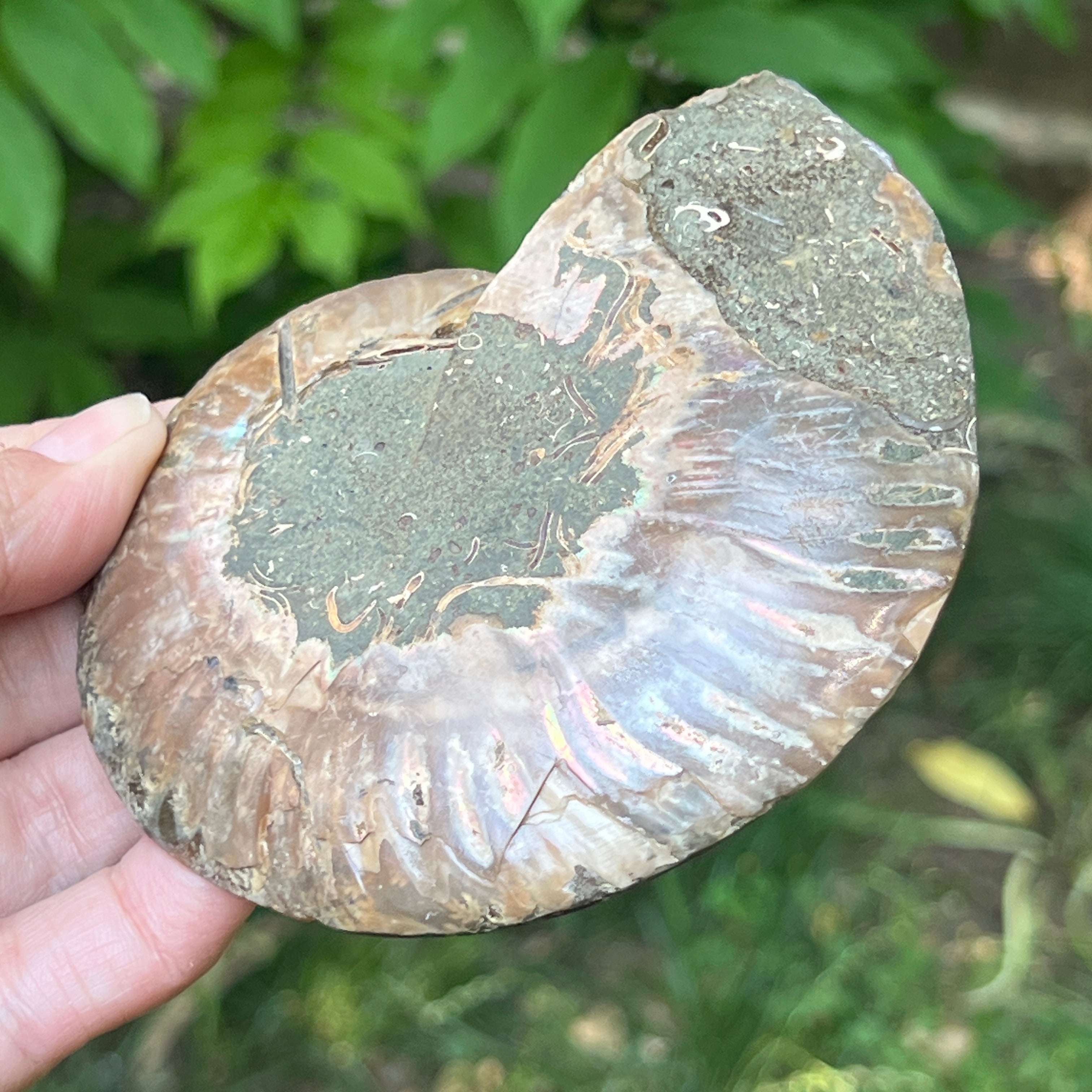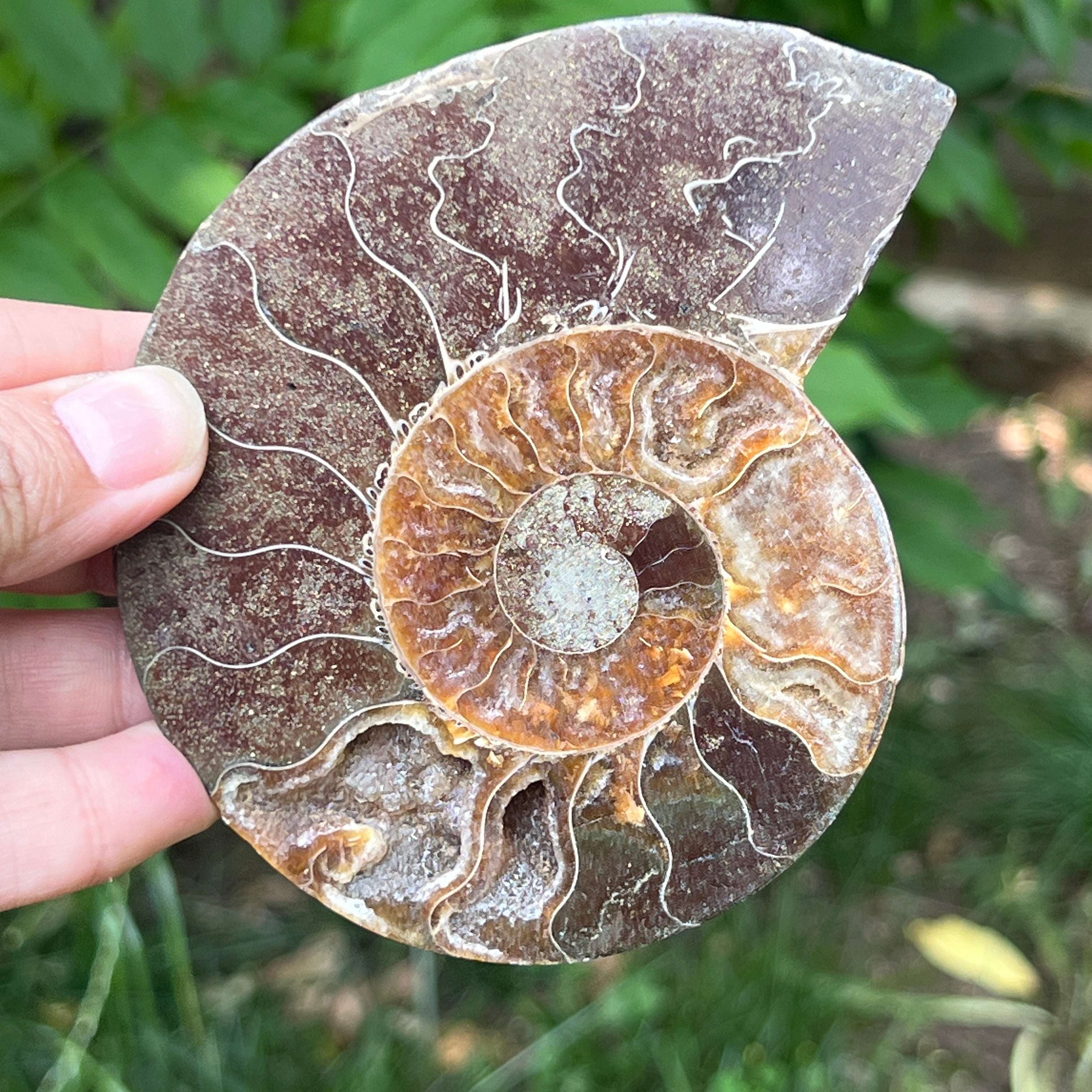 Фосилните кристали от амонит са изработени от автентични амонитови фосили. Тези фосили могат да имат различни размери и украшения в зависимост от вида и геоложкия период, в който са живели.
