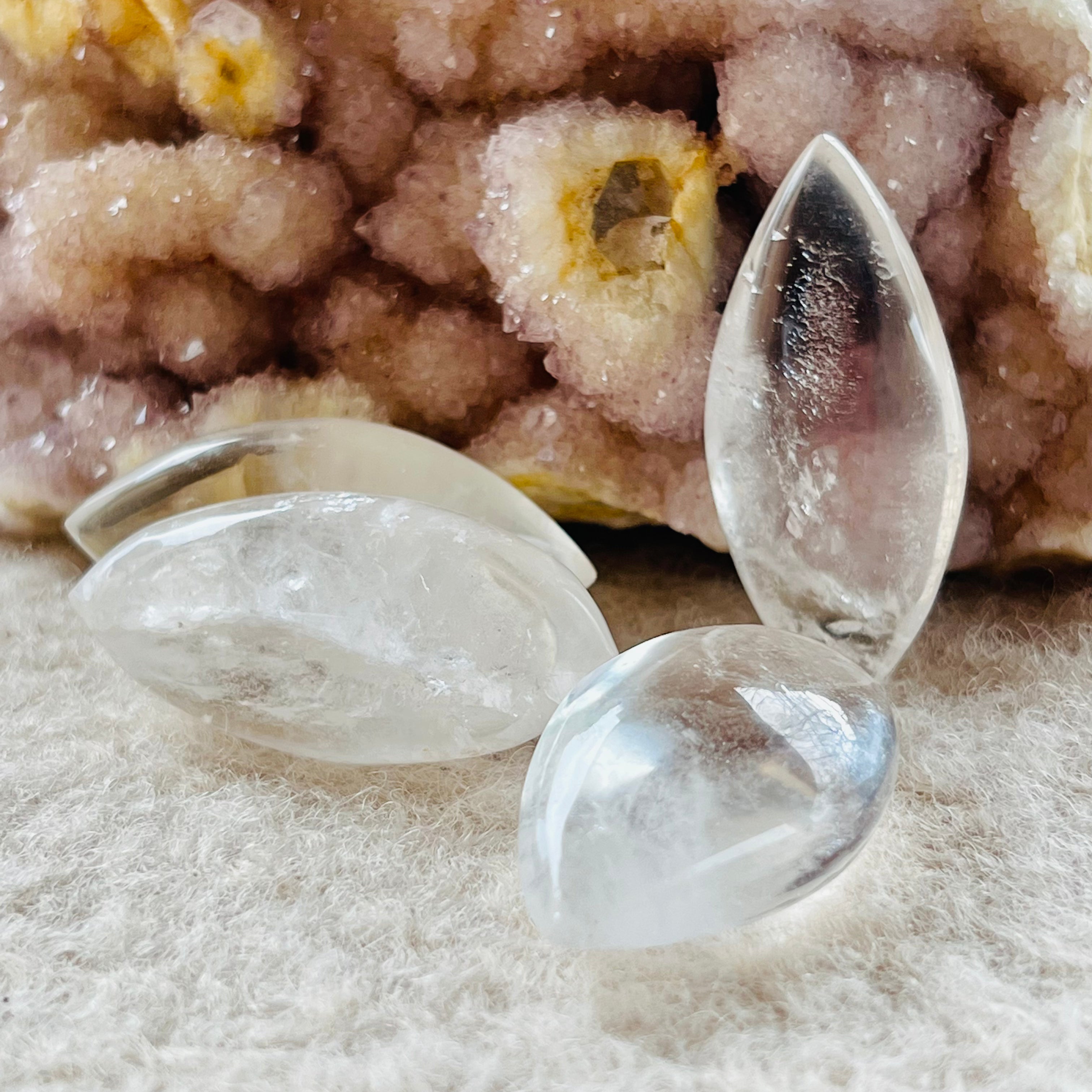Безцветният кварц е особено ценен заради пречистващото свойство, което носи в медитациите или в пространствата, където се поставя.