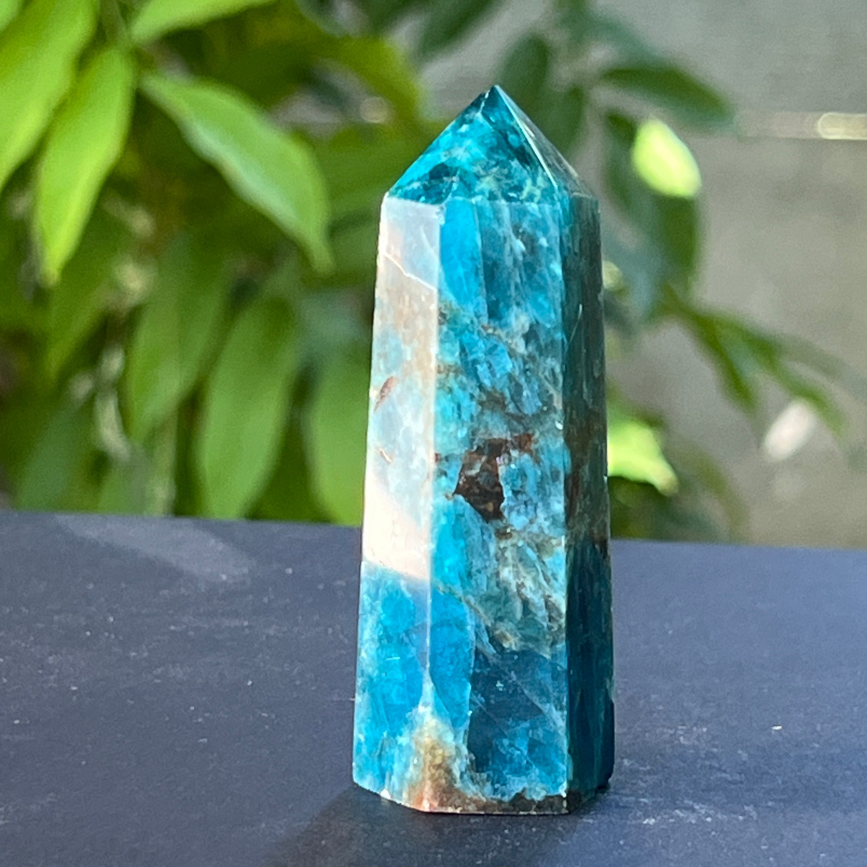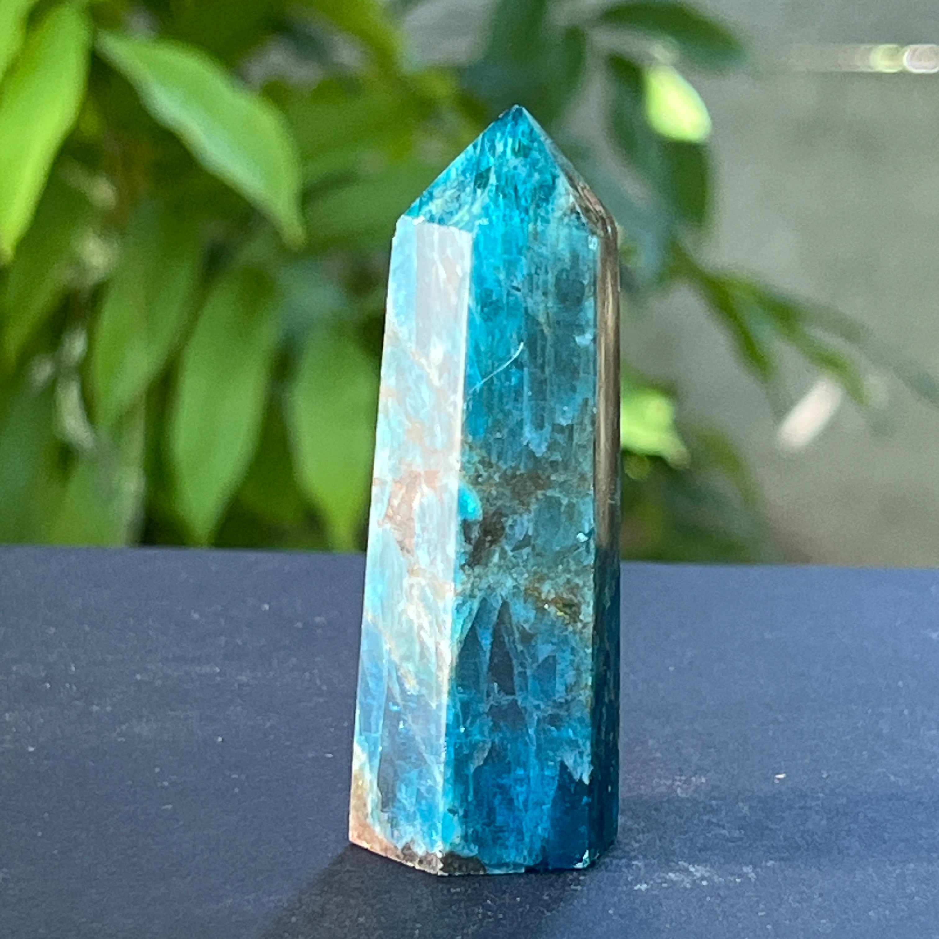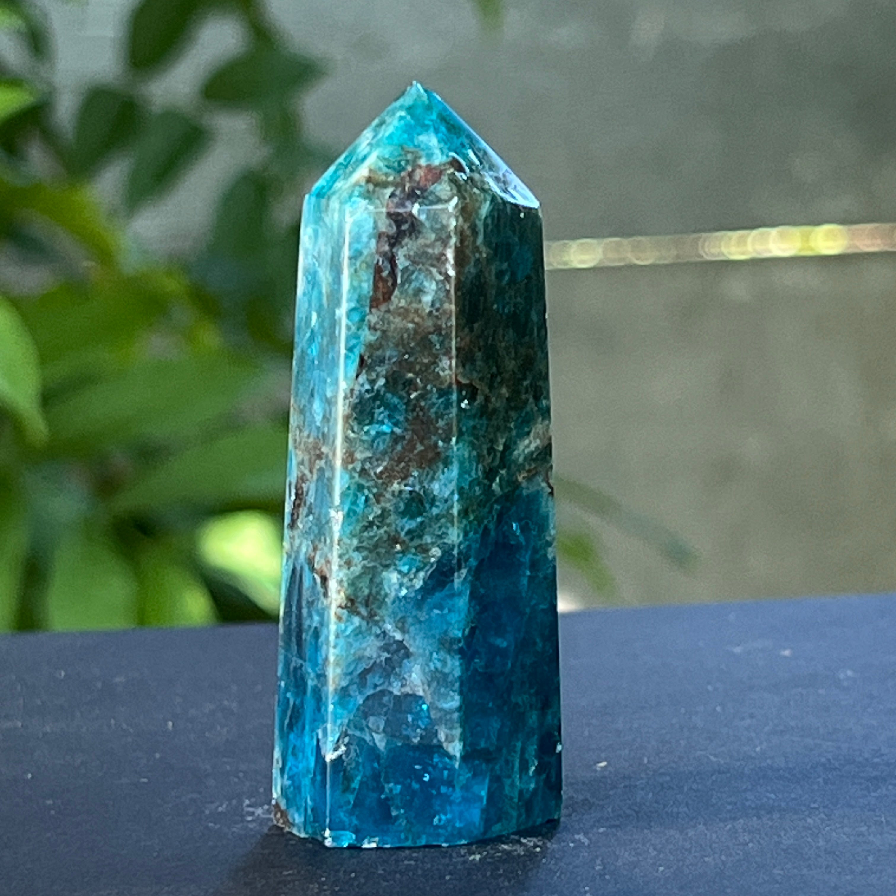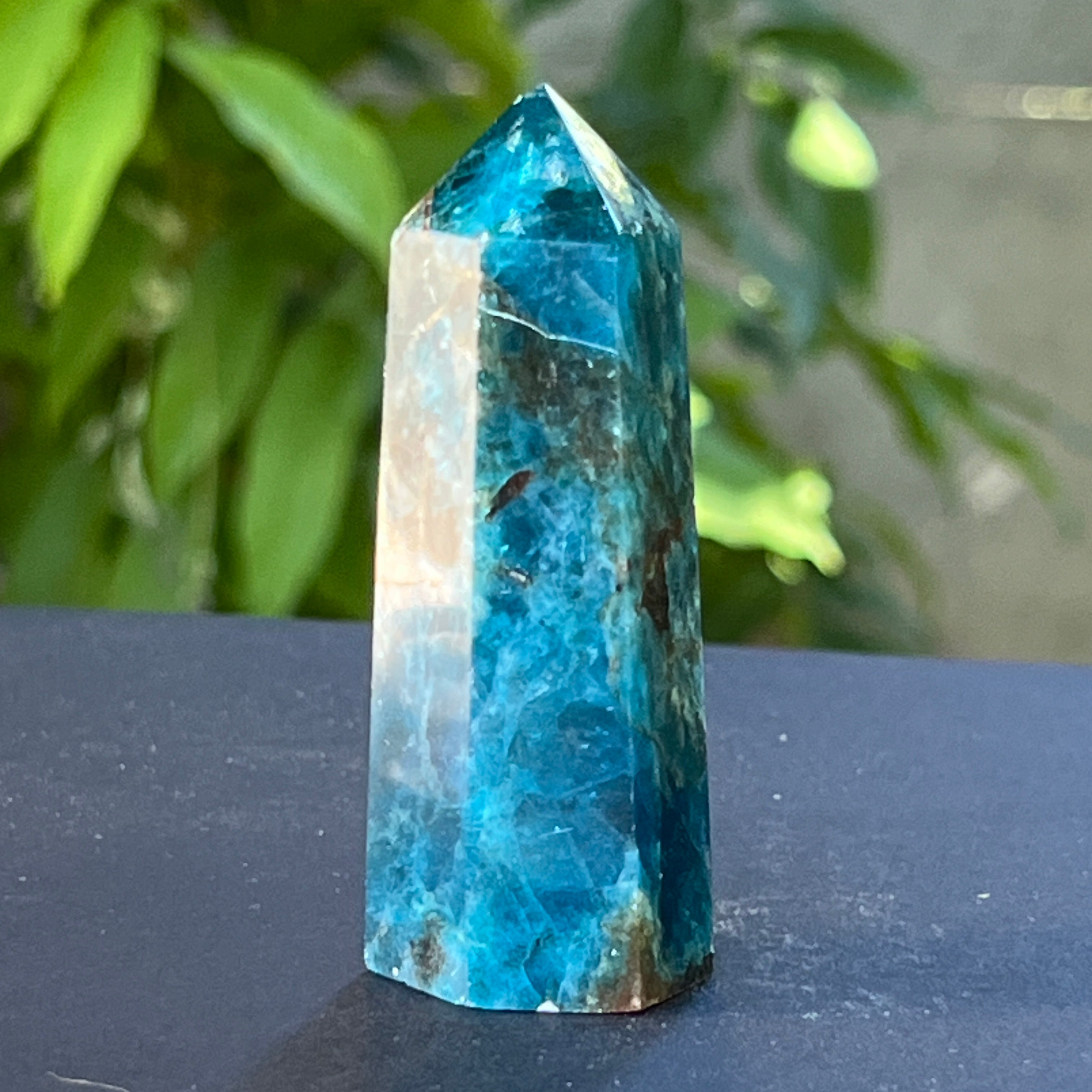 Blue apatite е признат за подобряване на комуникацията и изразяването, като е полезен за хора, страдащи от социална тревожност или страх от публични изяви. Смята се, че този камък също помага за повишаване на креативността и разбирането.