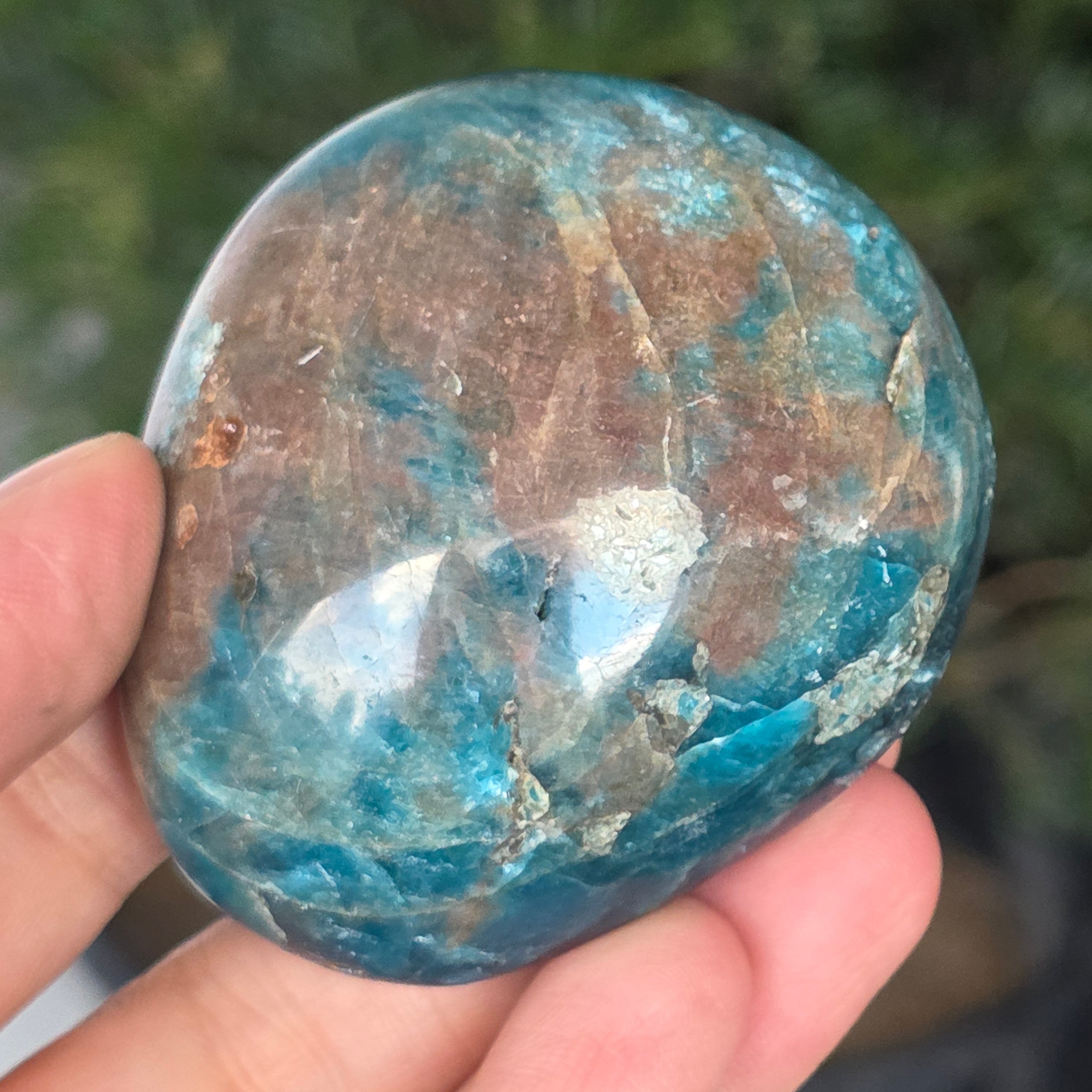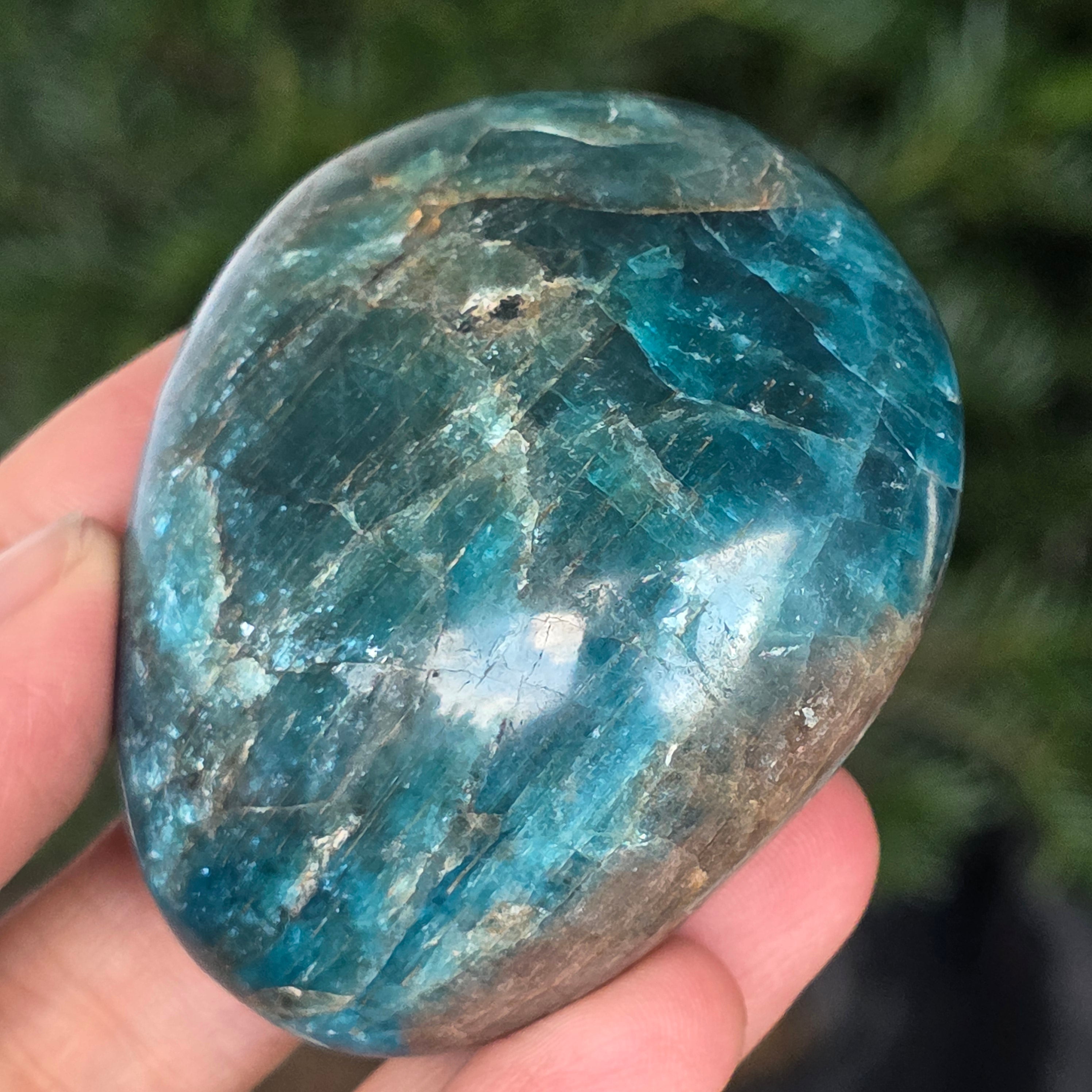 Blue apatite е признат за подобряване на комуникацията и изразяването, като е полезен за хора, страдащи от социална тревожност или страх от публични изяви. Смята се, че този камък също помага за повишаване на креативността и разбирането.