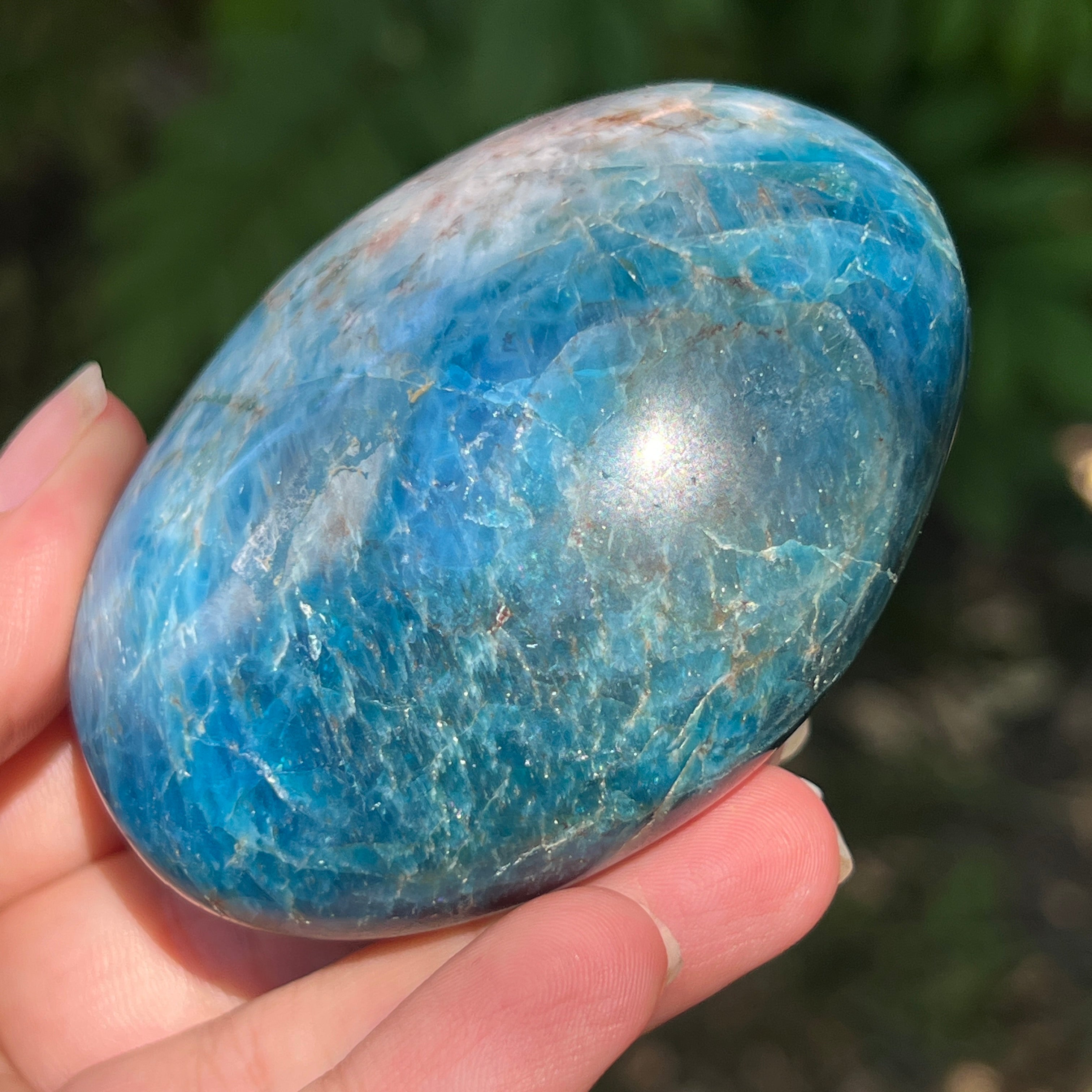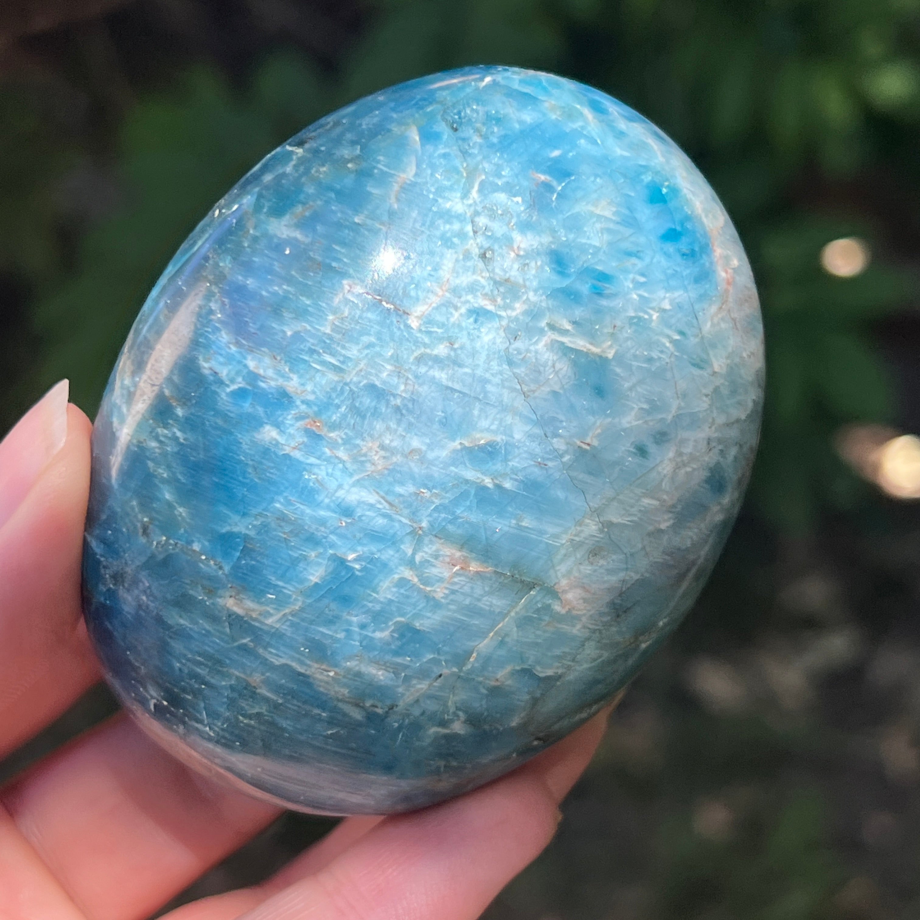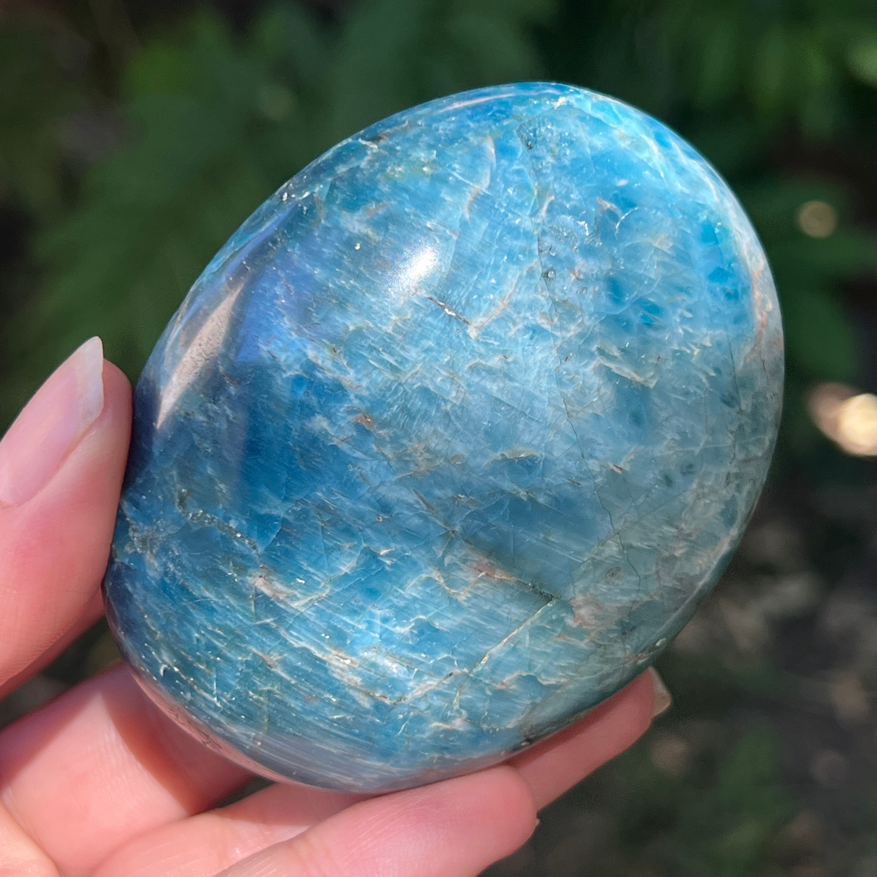 Blue apatite е признат за подобряване на комуникацията и изразяването, като е полезен за хора, страдащи от социална тревожност или страх от публични изяви. Смята се, че този камък също помага за повишаване на креативността и разбирането.