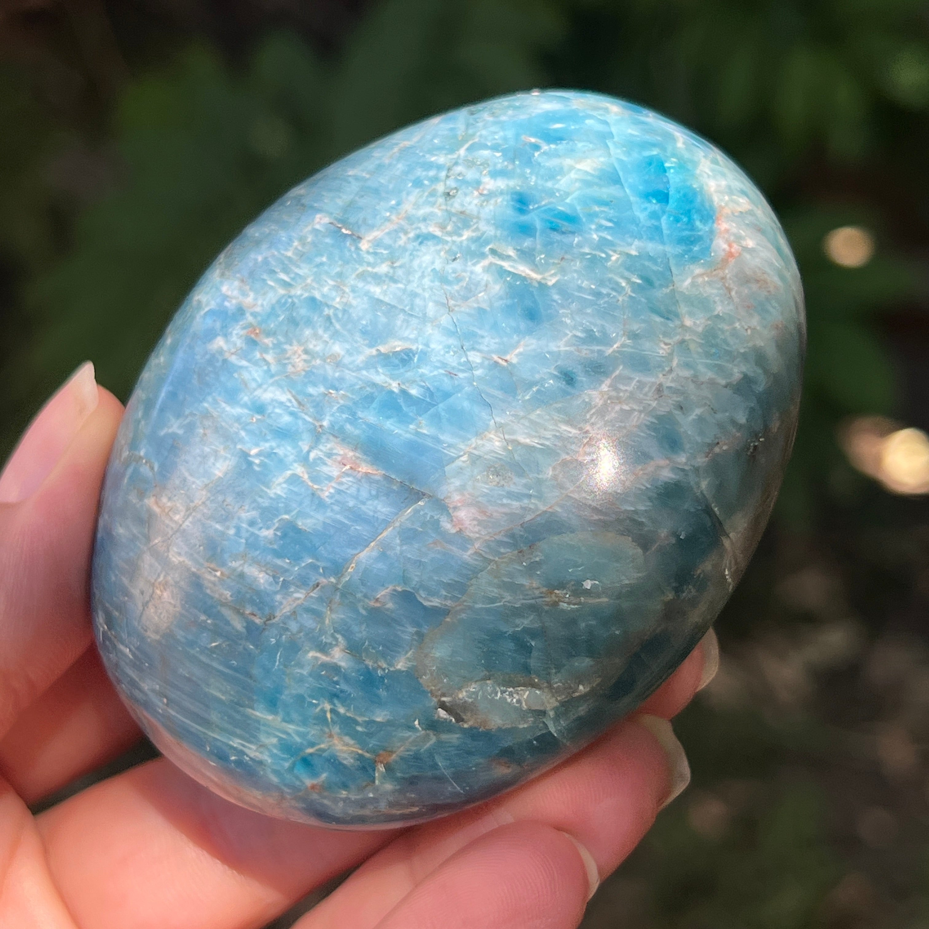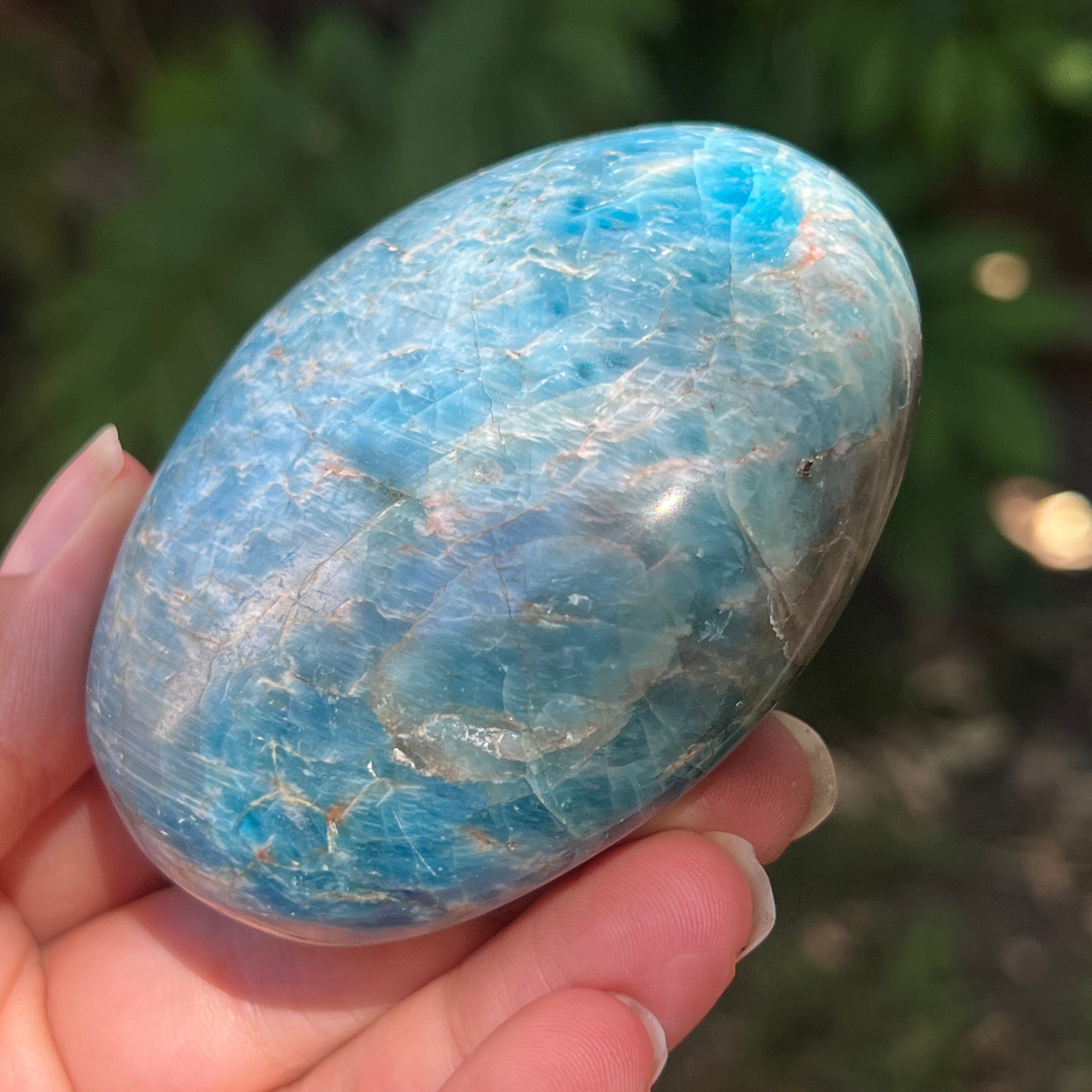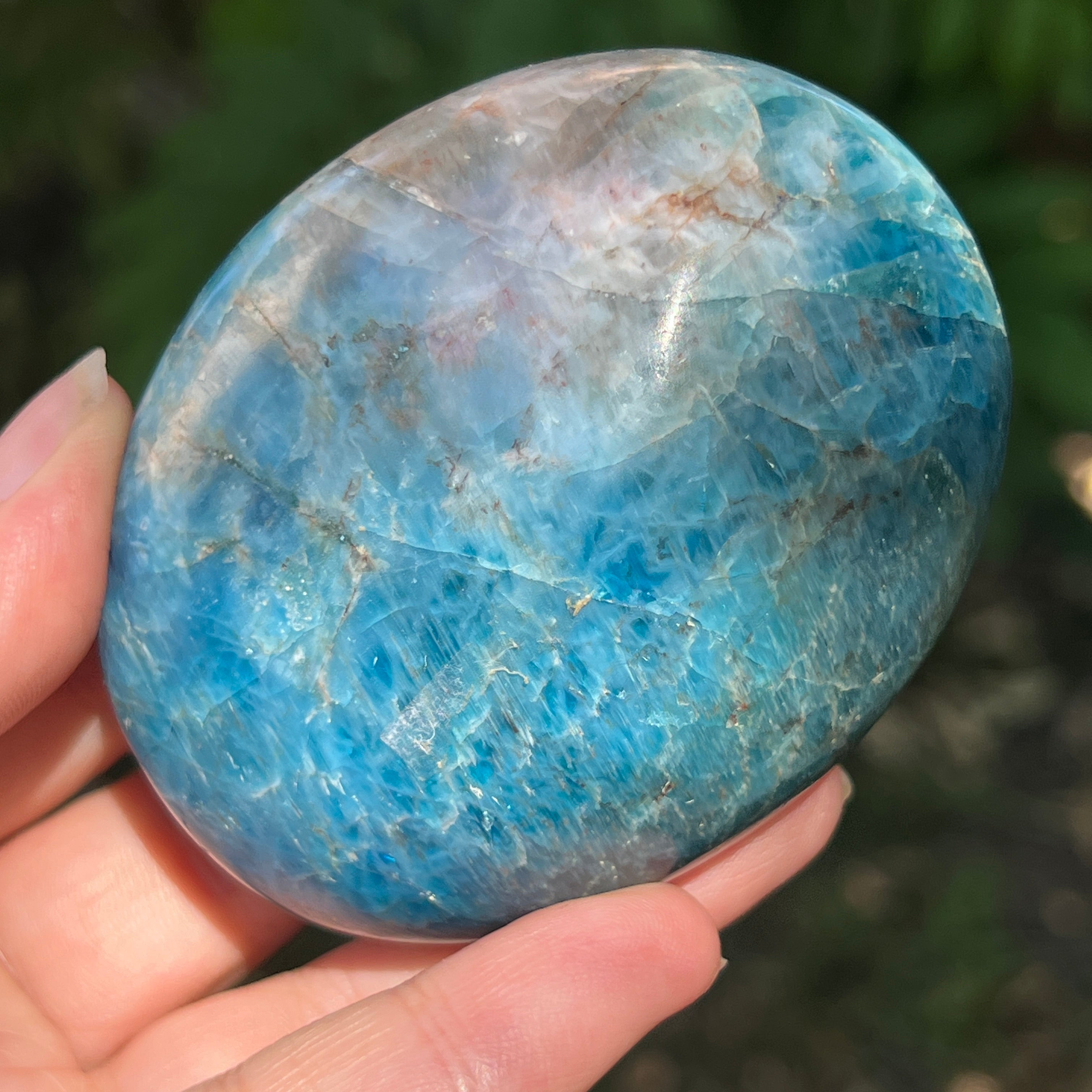 Blue apatite е признат за подобряване на комуникацията и изразяването, като е полезен за хора, страдащи от социална тревожност или страх от публични изяви. Смята се, че този камък също помага за повишаване на креативността и разбирането.