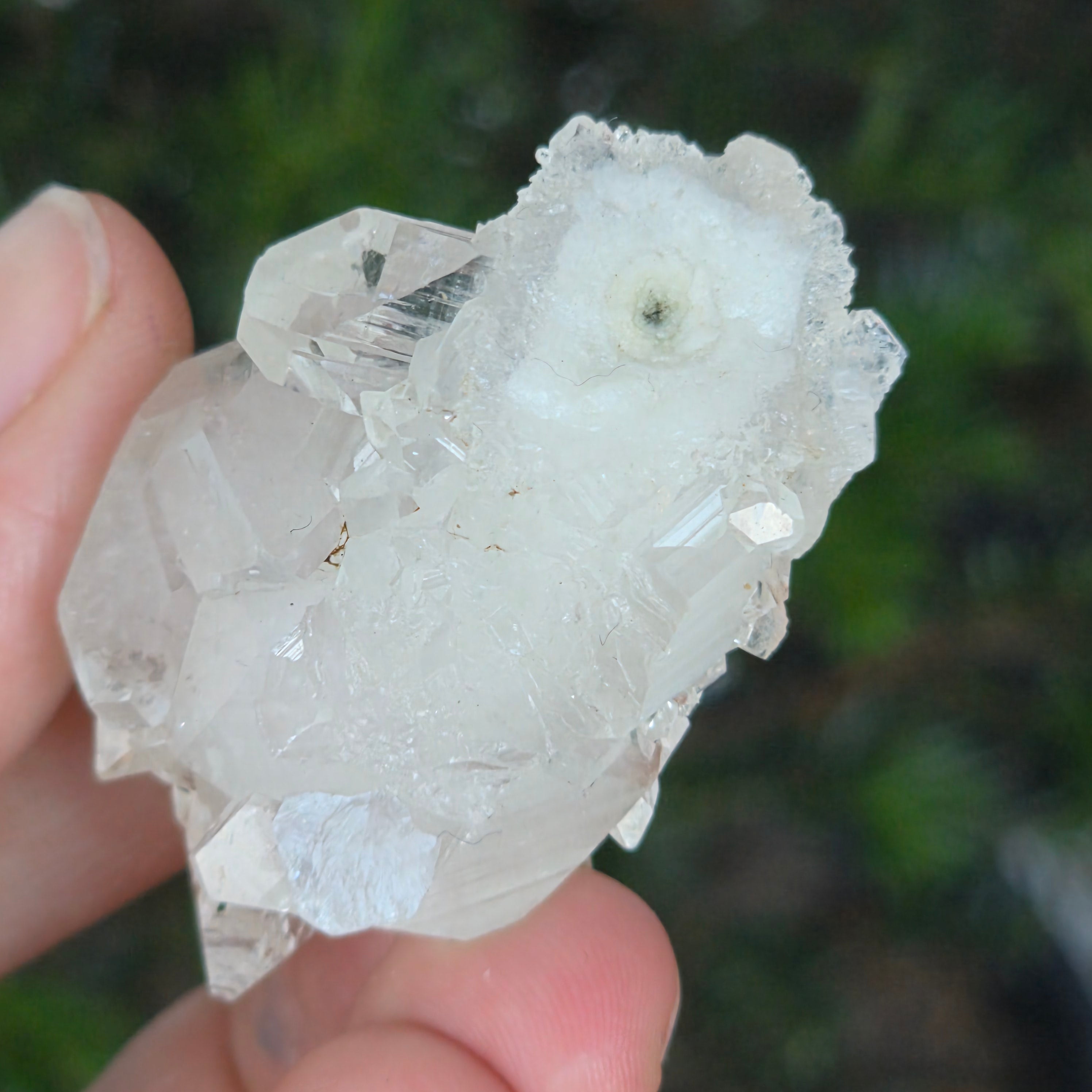 Роден в дълбините на базалтовите скали, където природата тихо извайва своите перфектни форми, този клъстер апофилит носи в себе си яснота и спокойствие на чистите кристали.