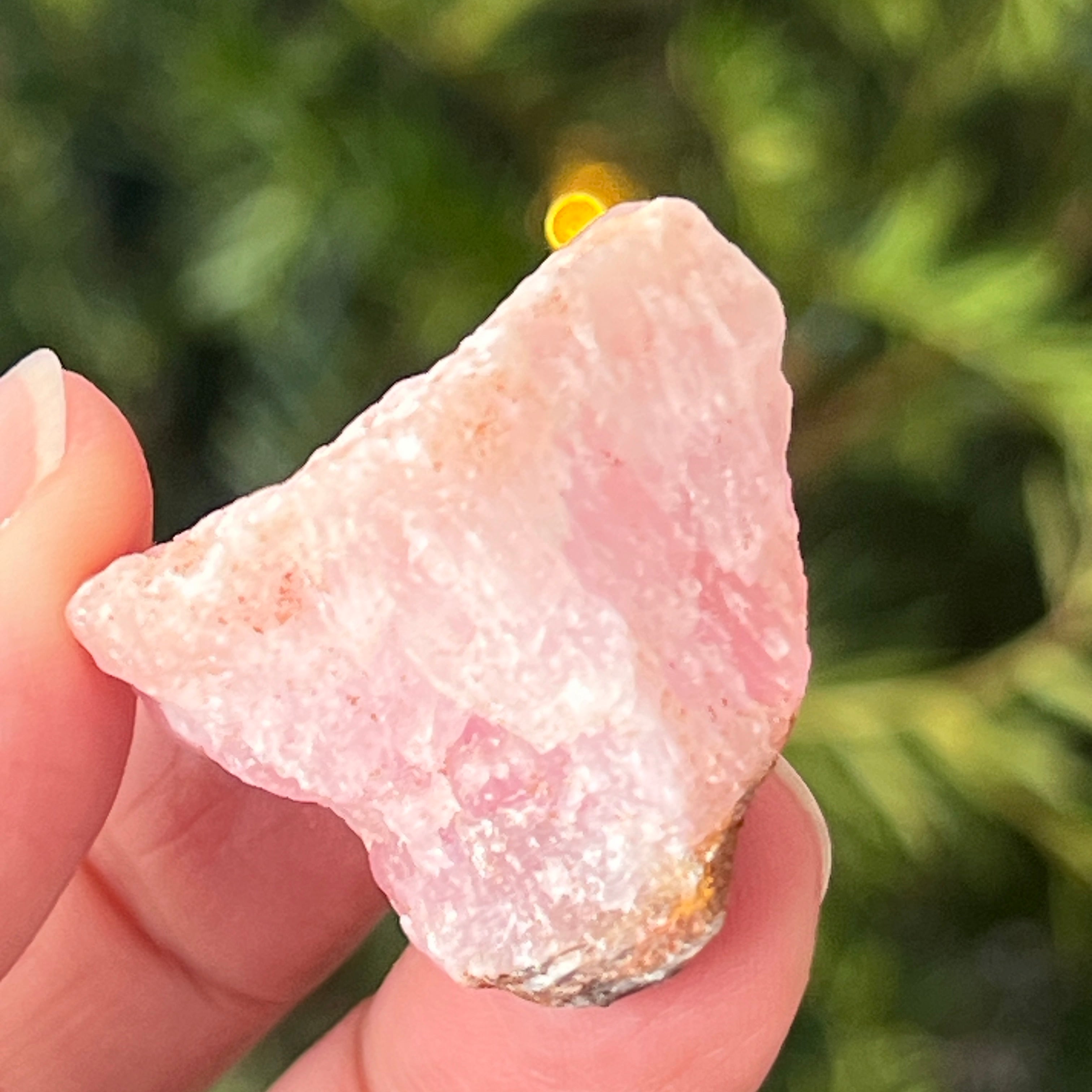 Розовият арагонит е по-рядко срещан полускъпоценен камък. Съставен е от калциев карбонат и има розово-оранжев цвят поради примеси на желязо.