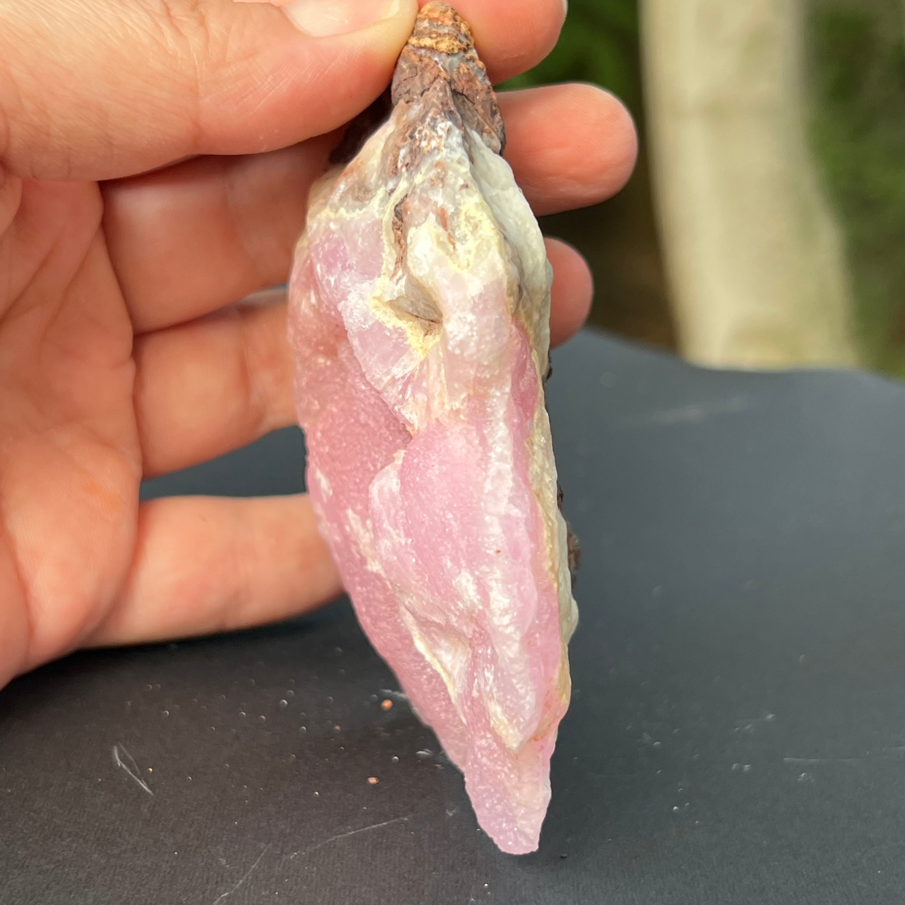Розовият арагонит е по-рядко срещан полускъпоценен камък. Съставен е от калциев карбонат и има розово-оранжев цвят поради примеси на желязо.