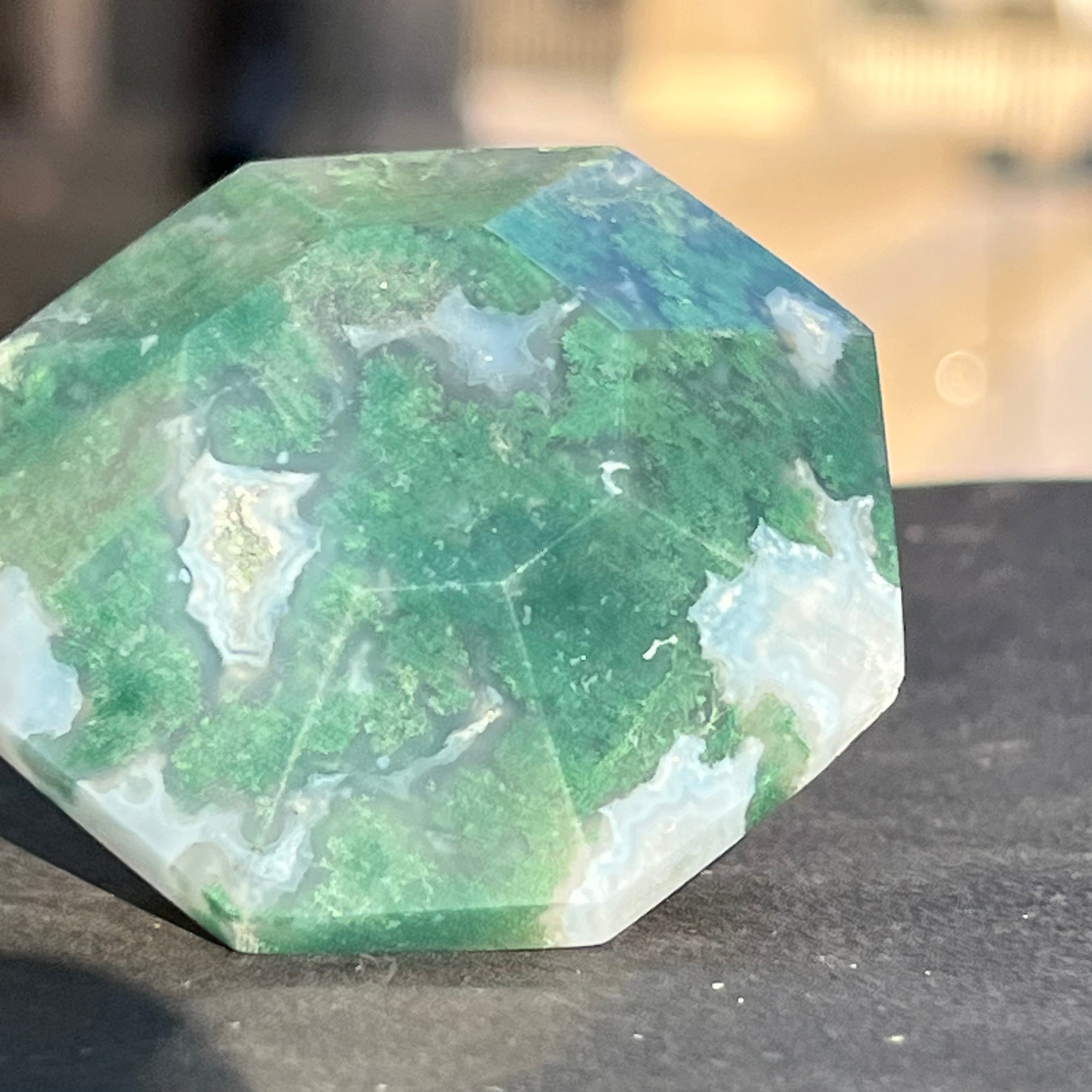 Мъховият/дървесният ахат може успешно да се интегрира в декорацията на къщата, като излъчваната енергия е на стабилност.