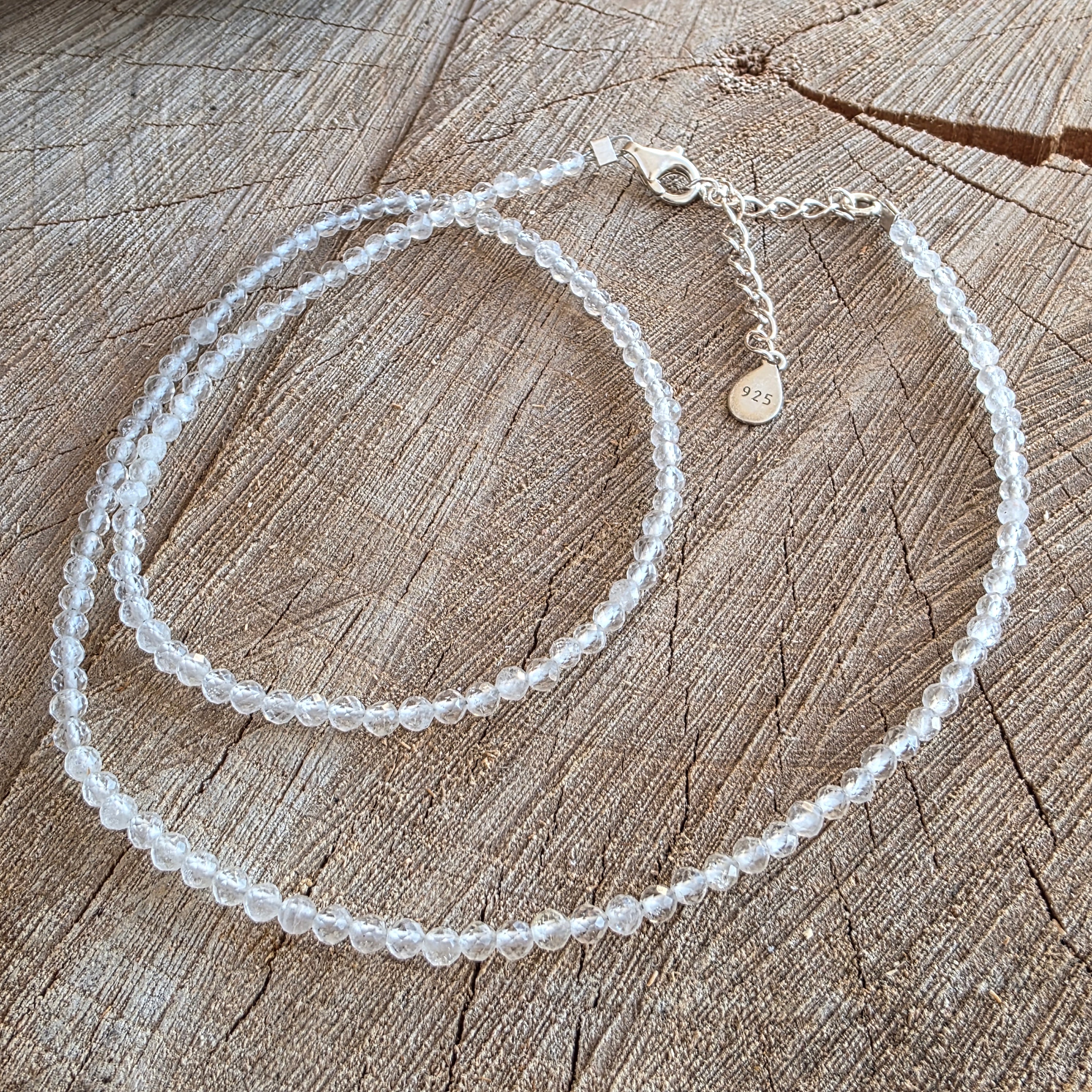 Безцветно огърлица от фасетиран кварц Silent Light #84