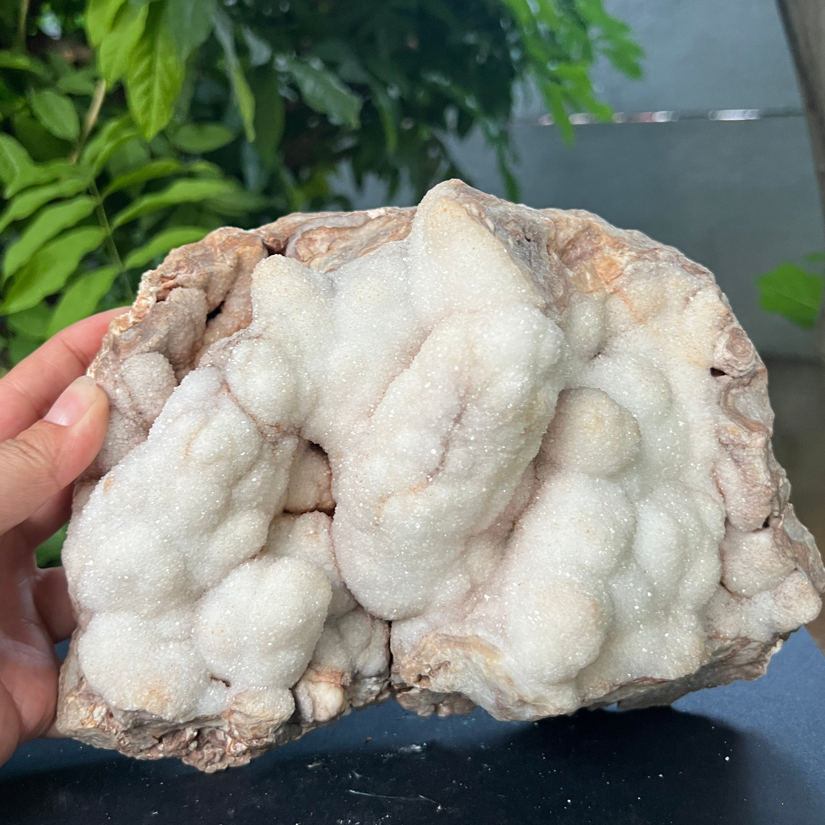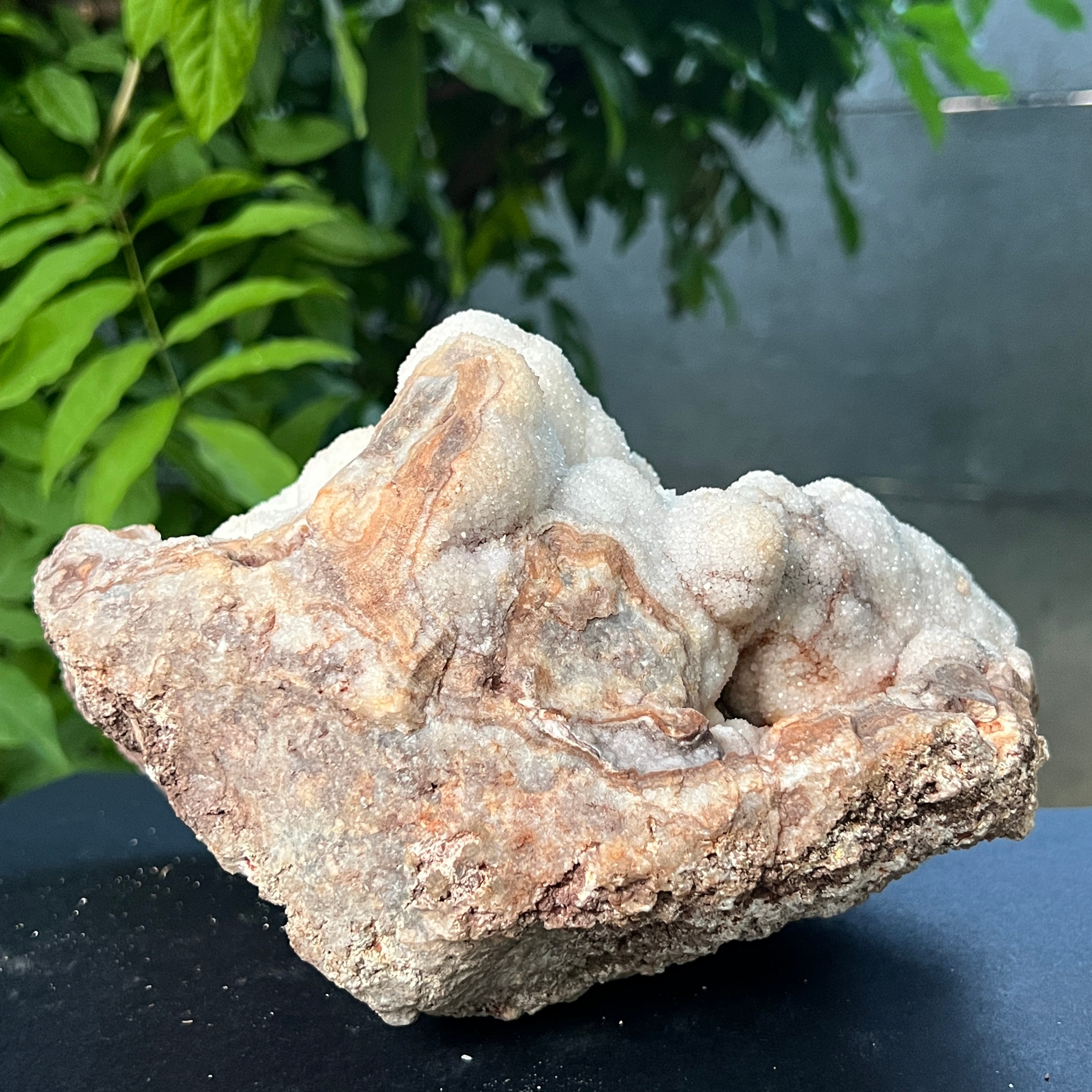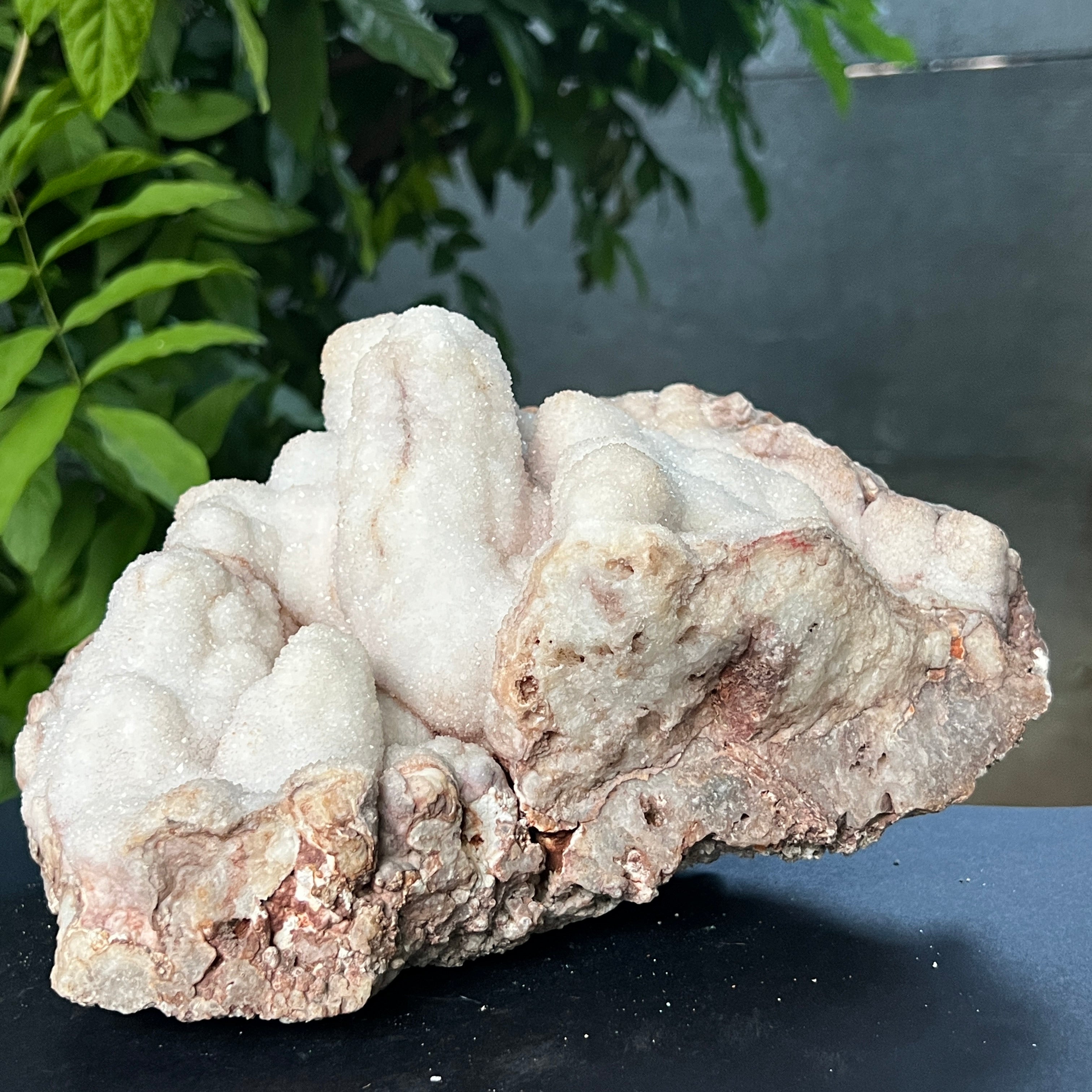 Ботриоидната структура – наподобяваща сляти клъстери или минерални облаци – е рядко изразяване на това как кварцът може да се прояви, когато расте свободно, в кухини, бавно запълвани със силиций. Това не е просто камък, а геоложка творба, която съчетава суровата енергия на Земята с ефирна красота.