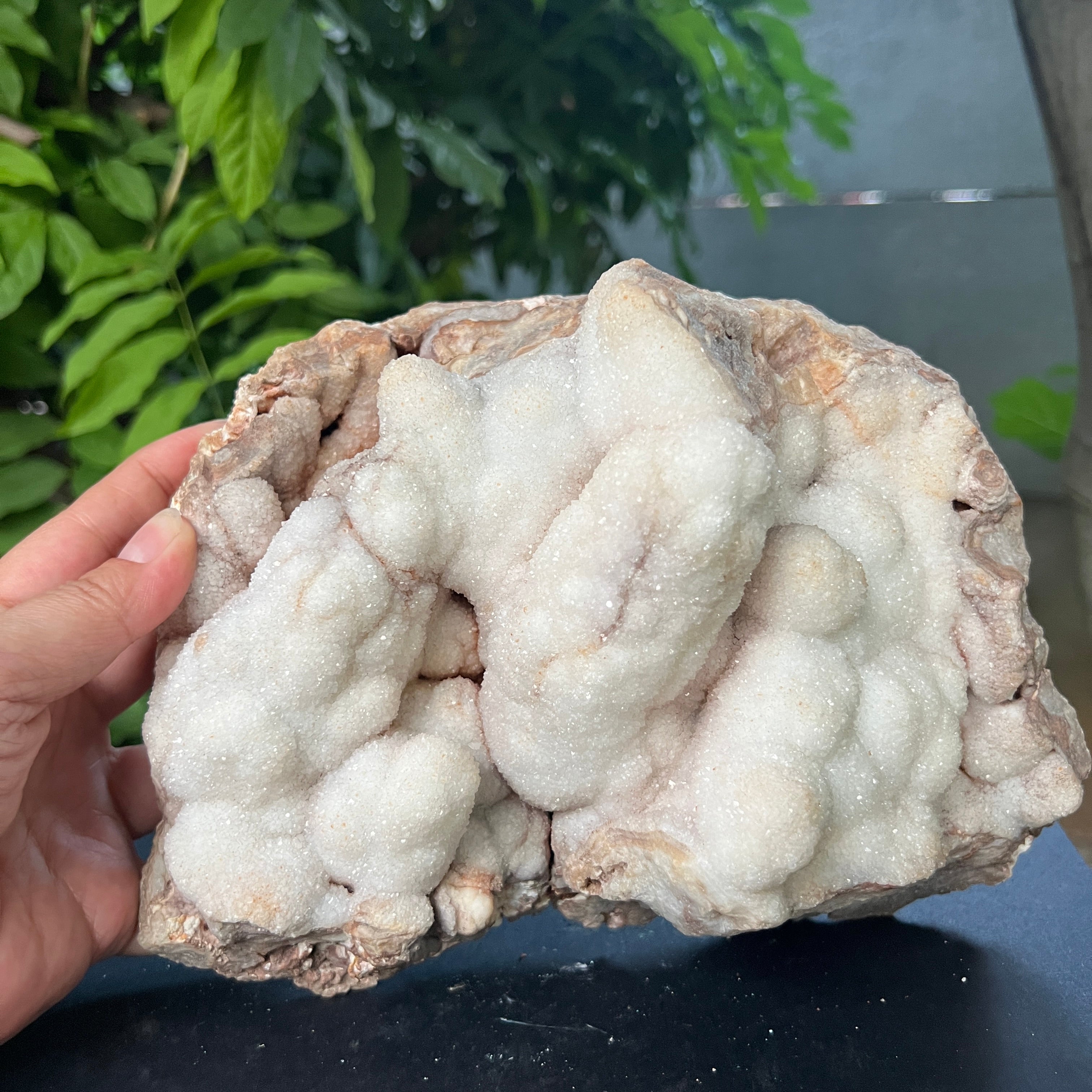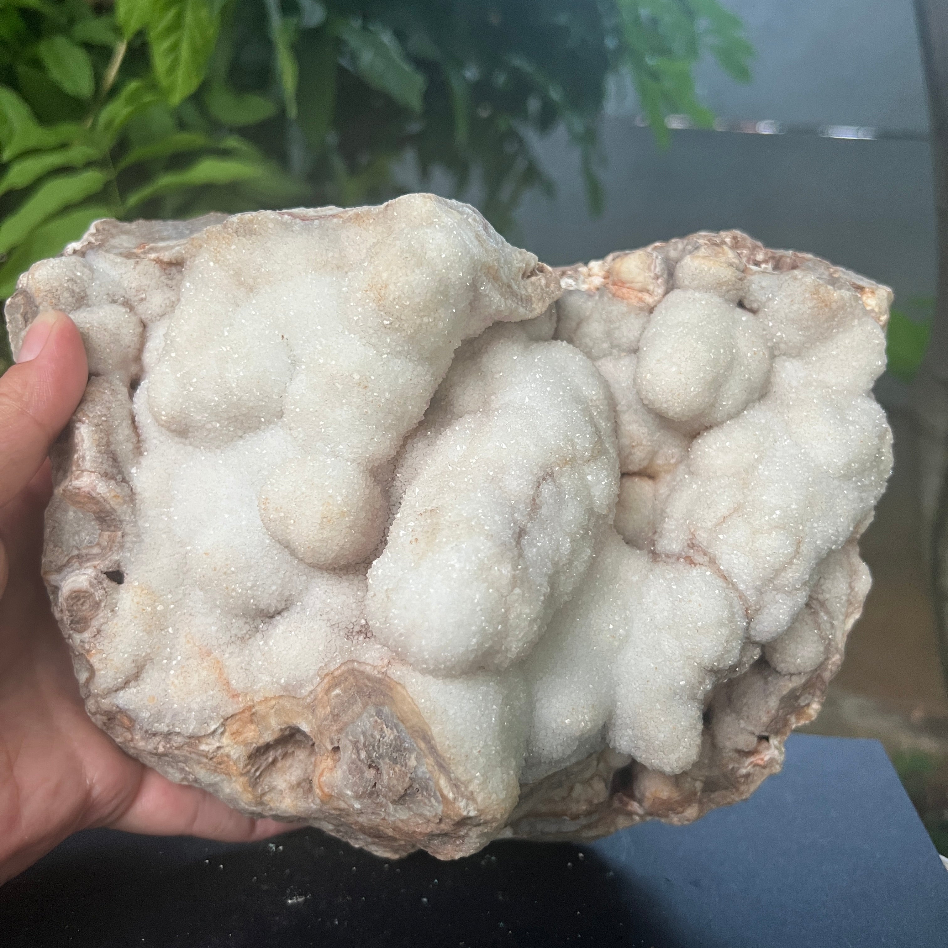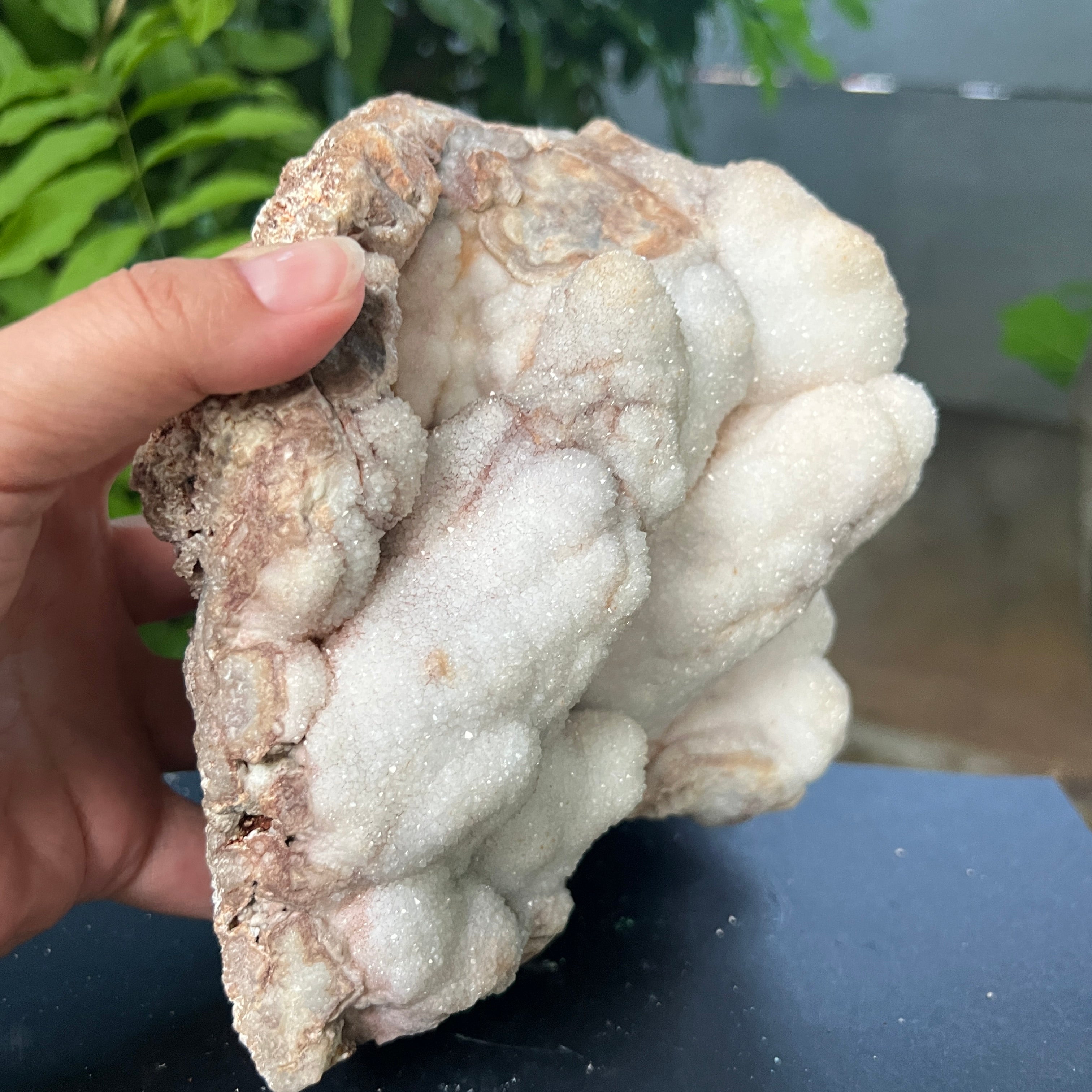 Ботриоидната структура – наподобяваща сляти клъстери или минерални облаци – е рядко изразяване на това как кварцът може да се прояви, когато расте свободно, в кухини, бавно запълвани със силиций. Това не е просто камък, а геоложка творба, която съчетава суровата енергия на Земята с ефирна красота.