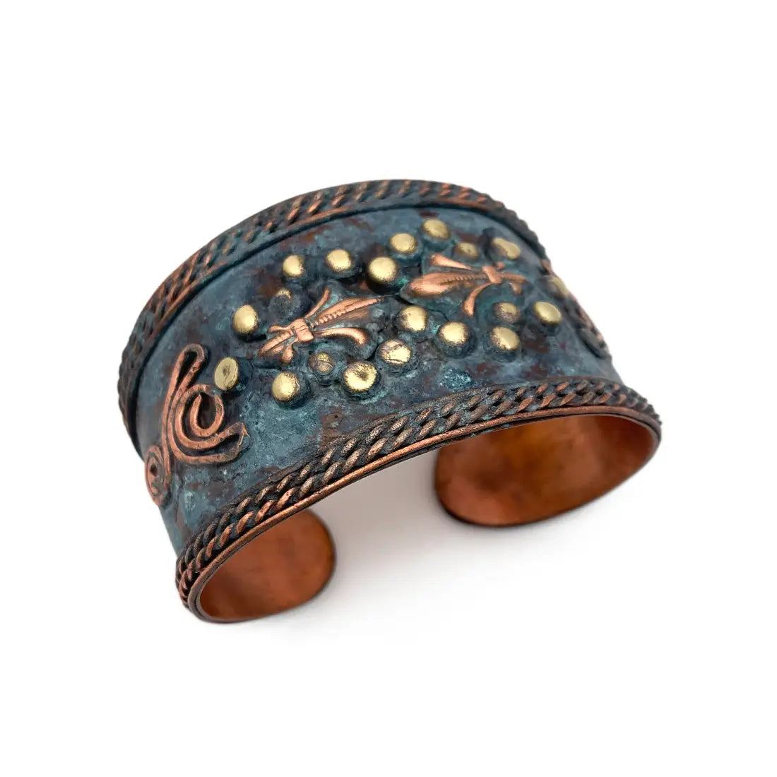 Бронзова гривна с патина в цвят тюркоаз