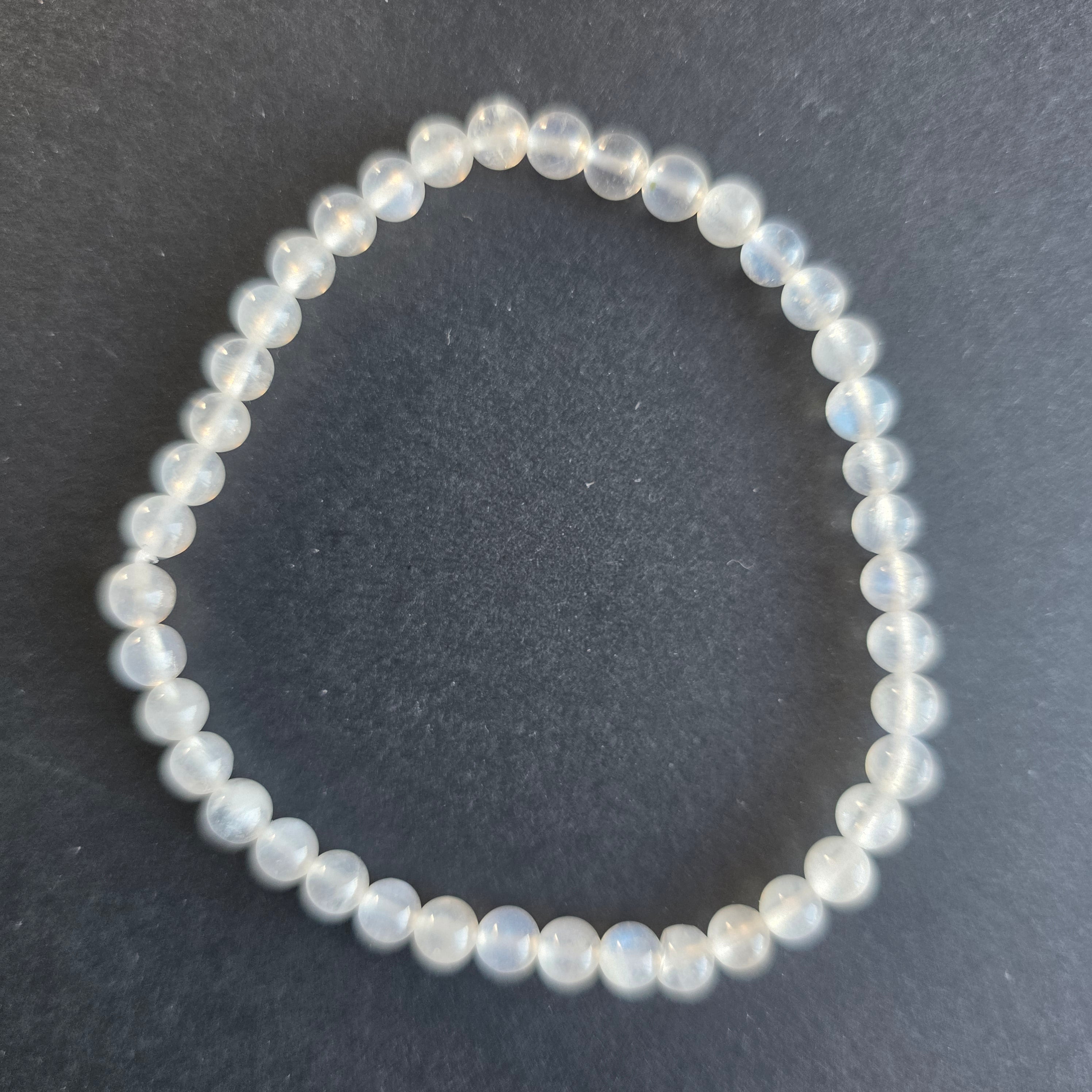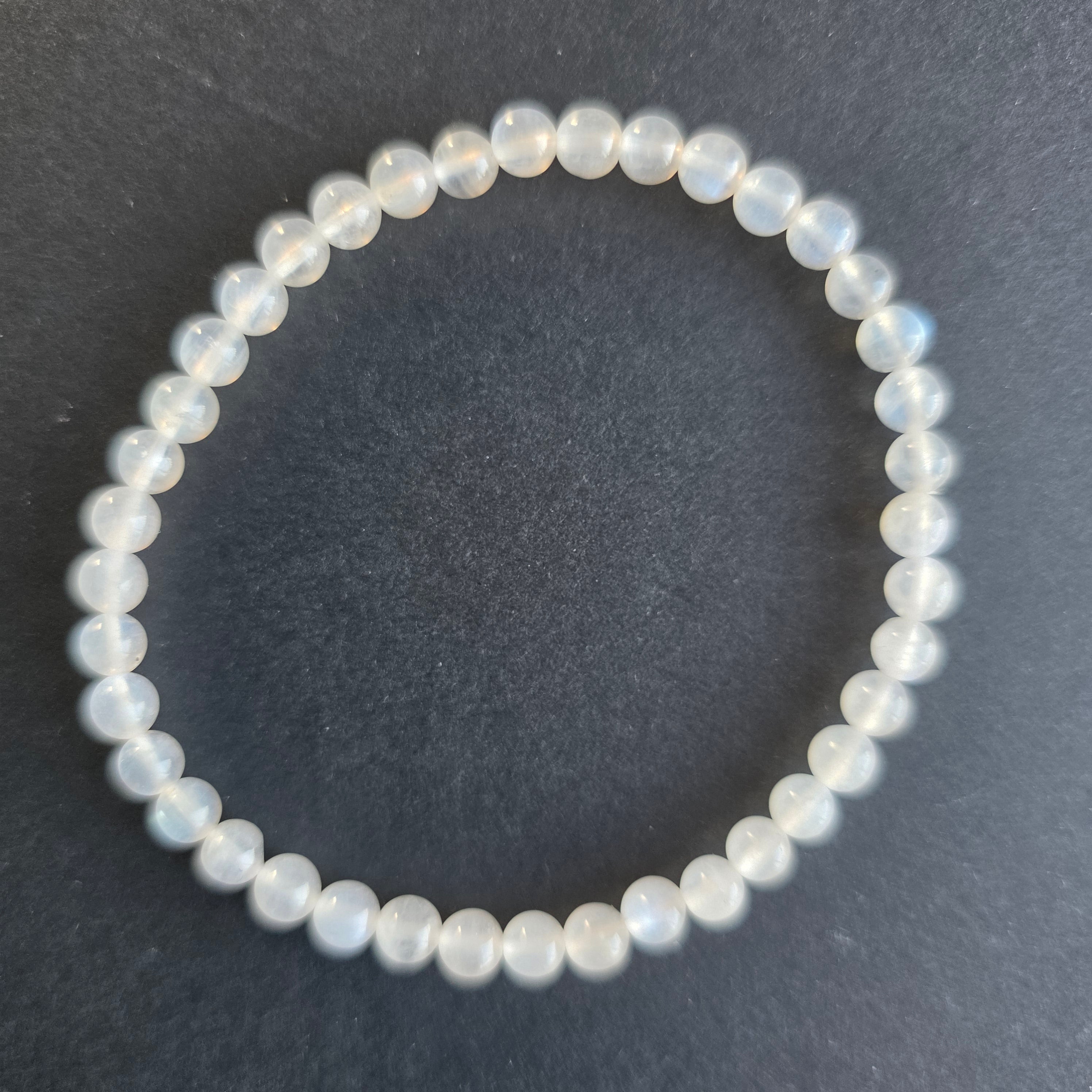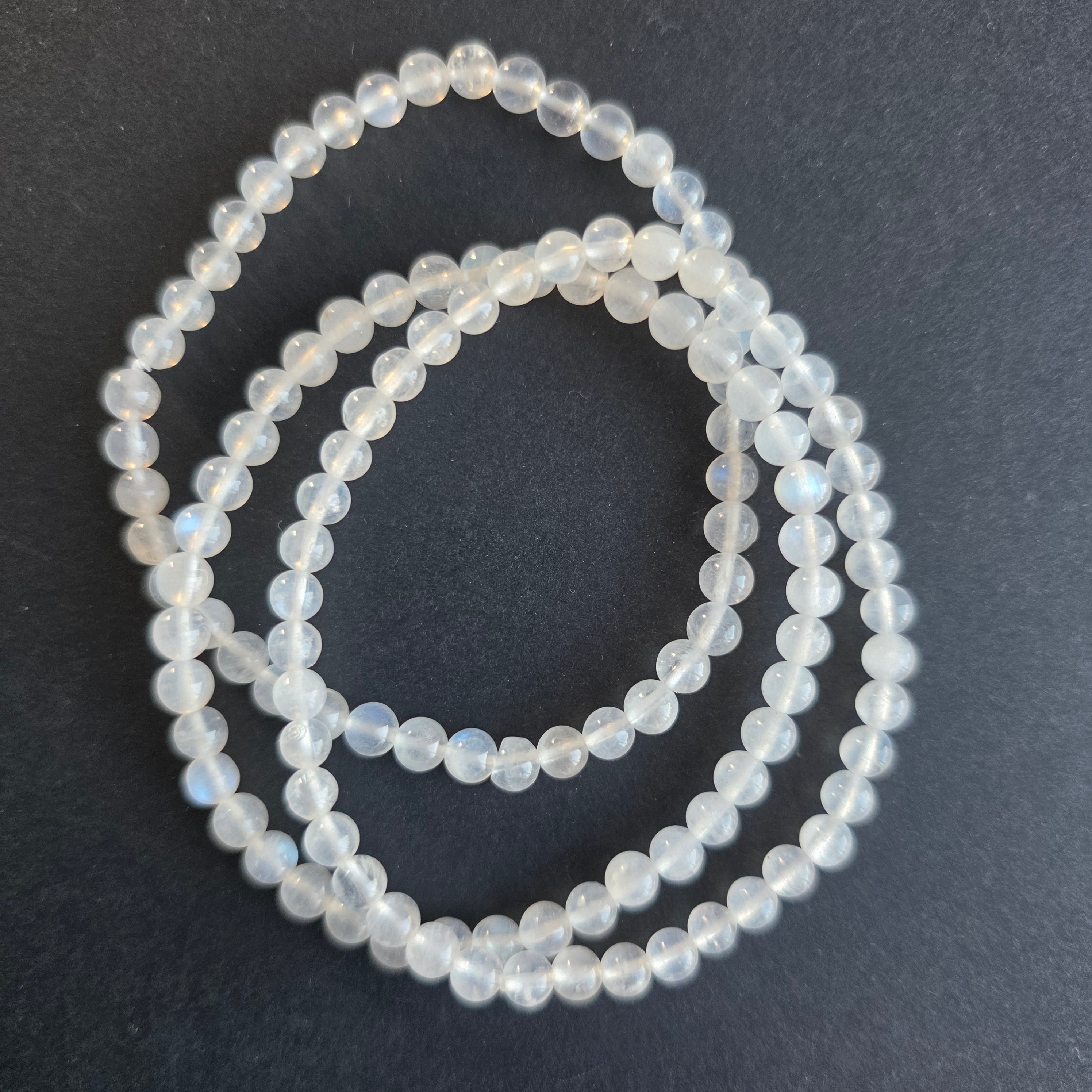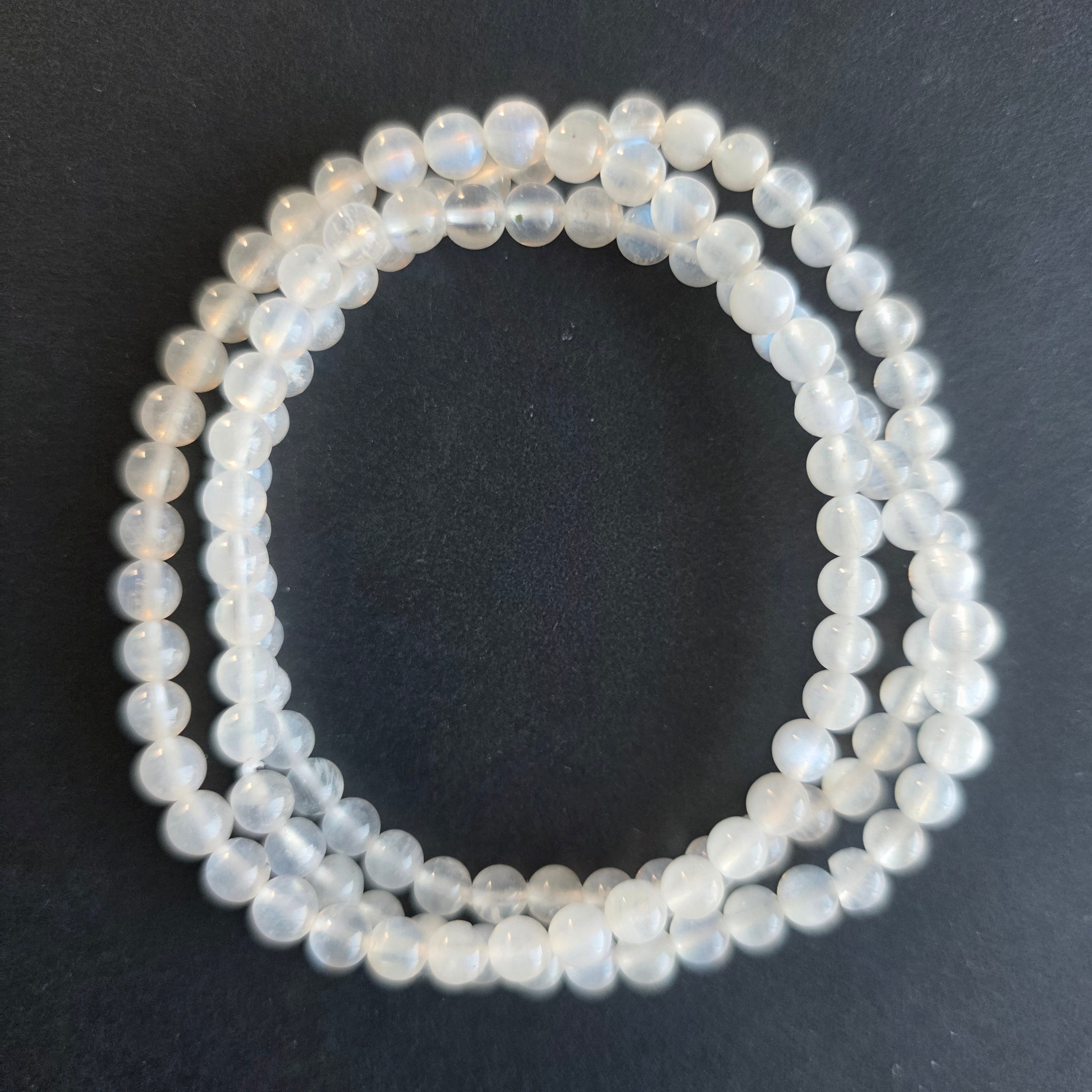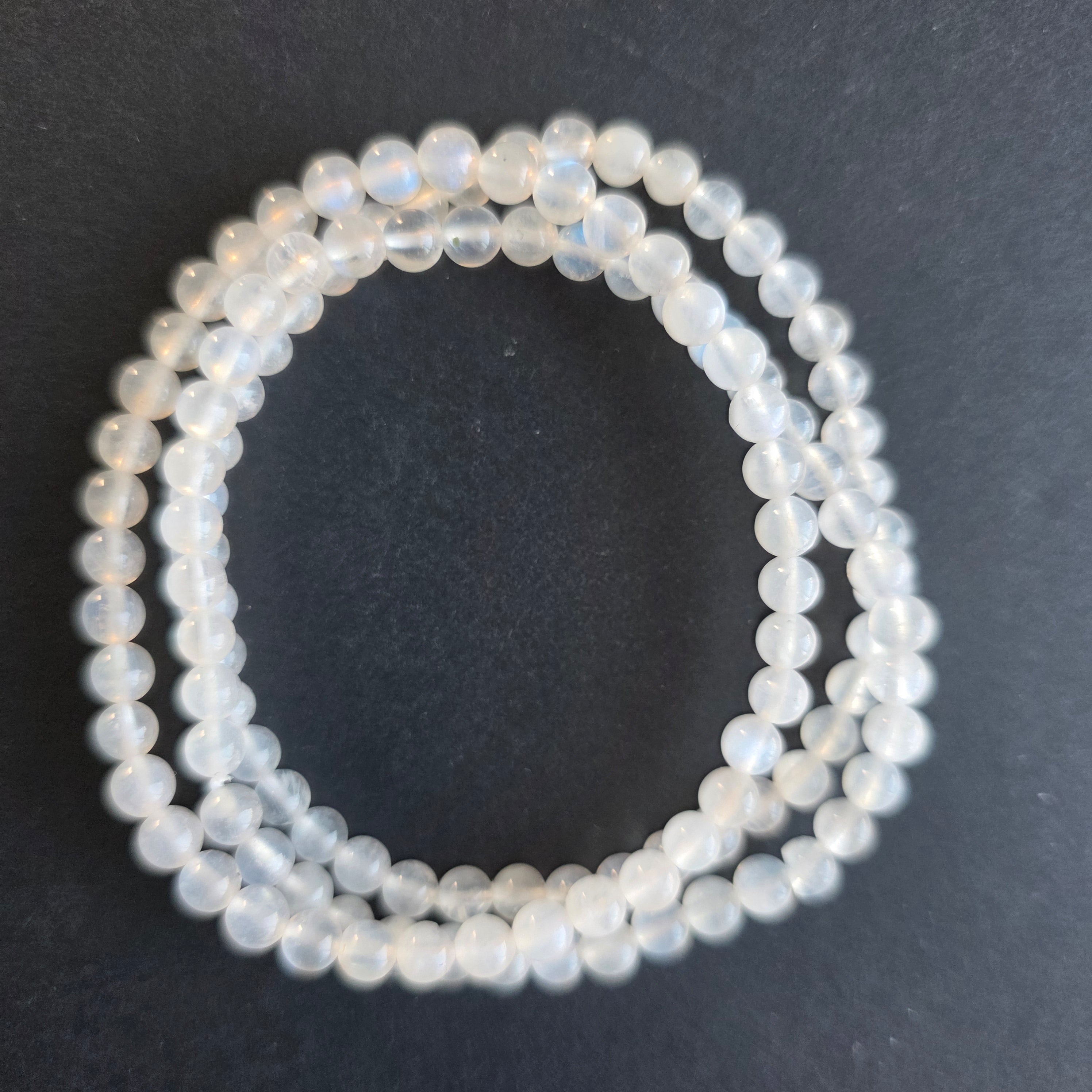 Бяла гривна с бял дъгов лунен камък 4 mm