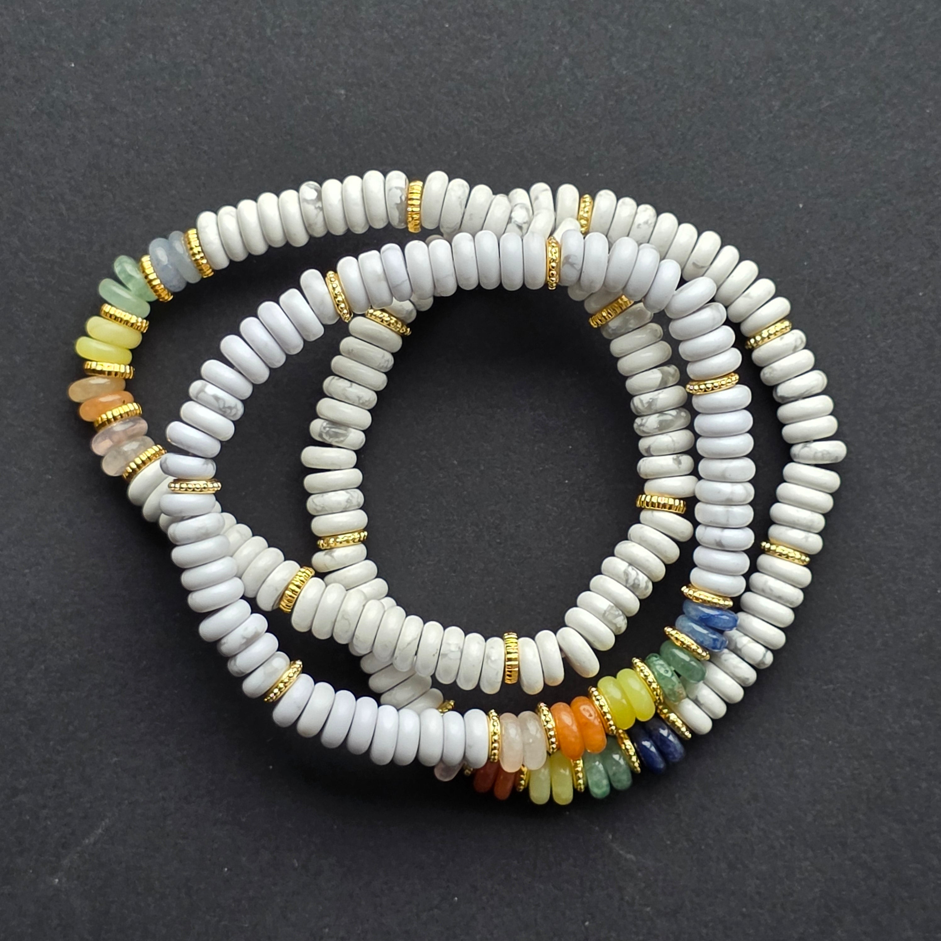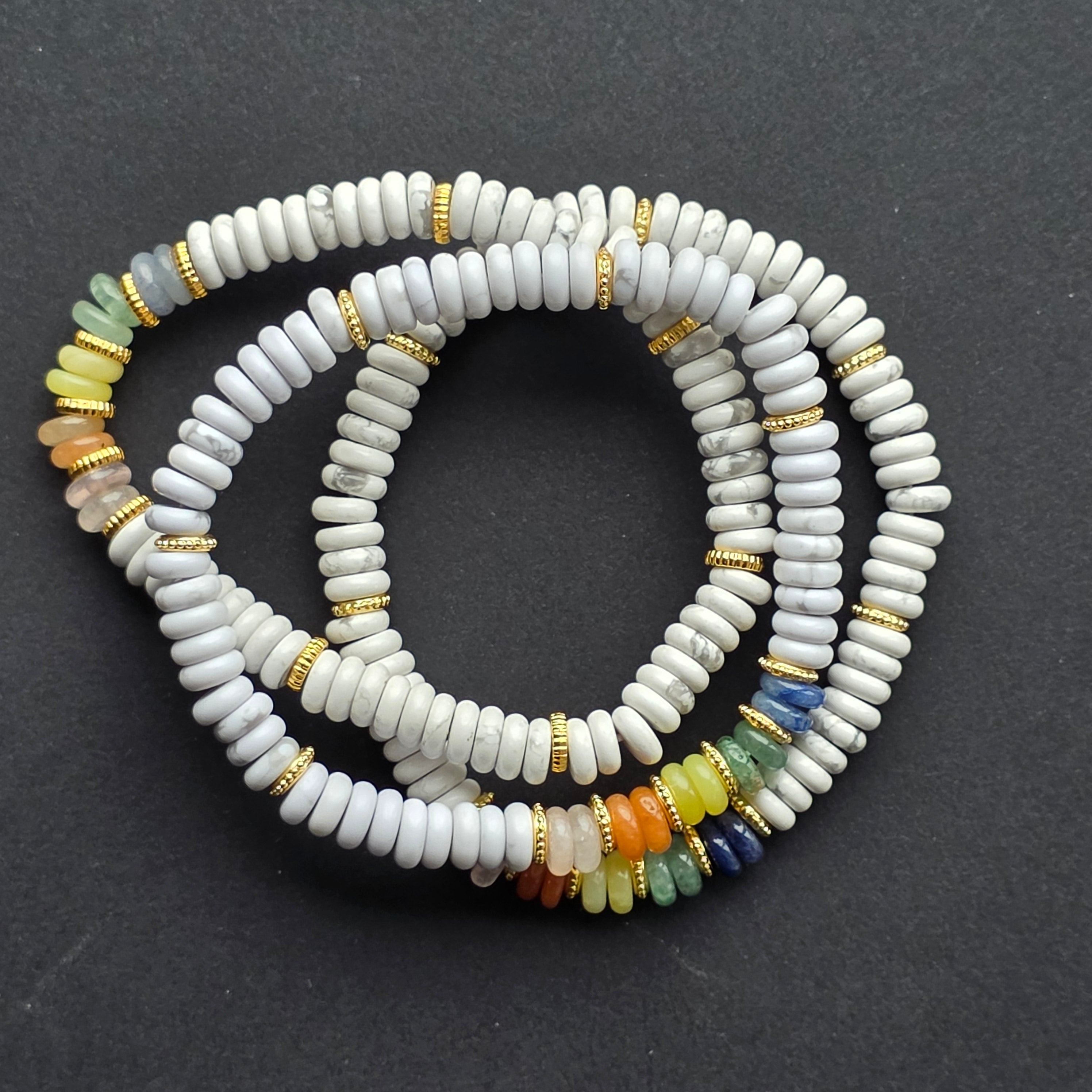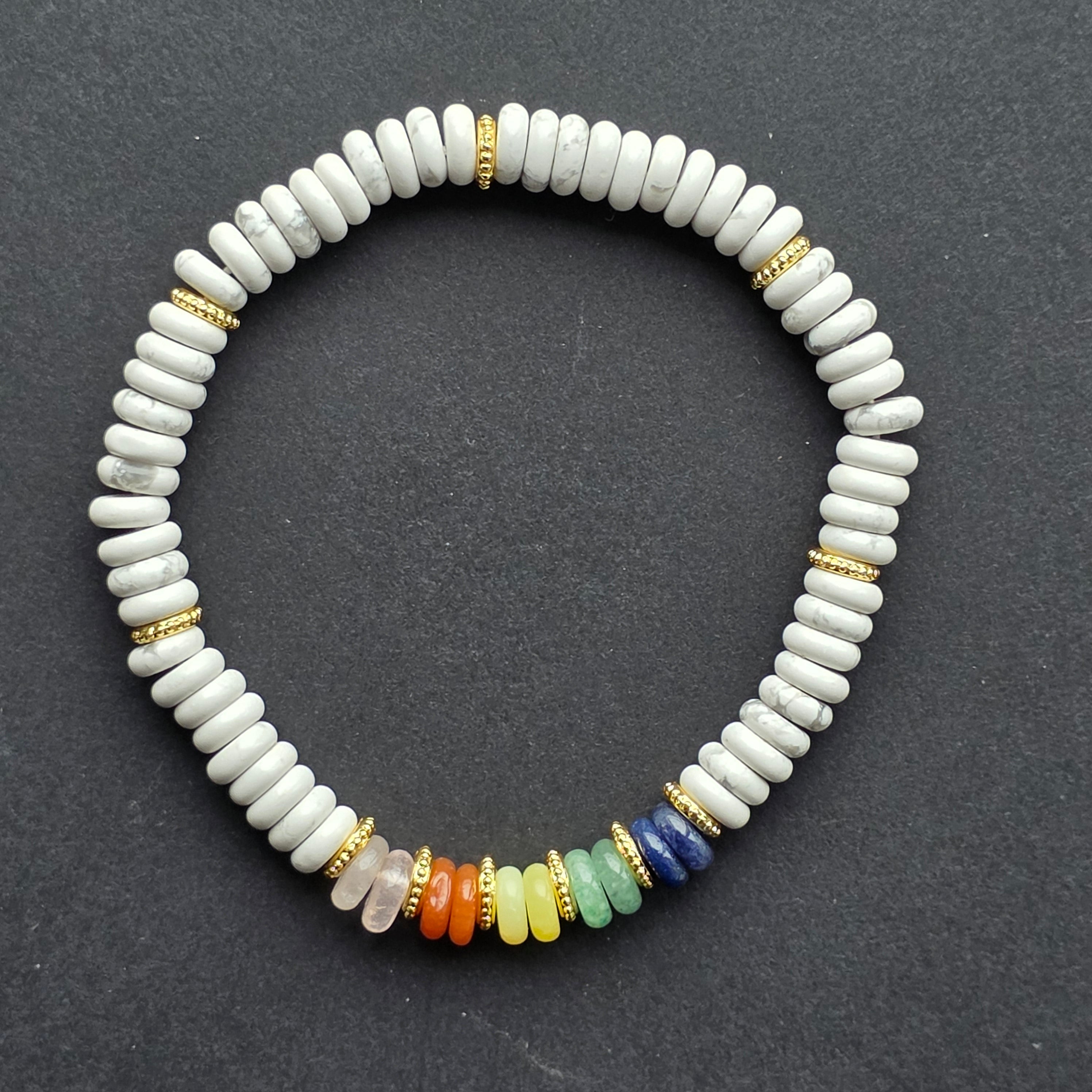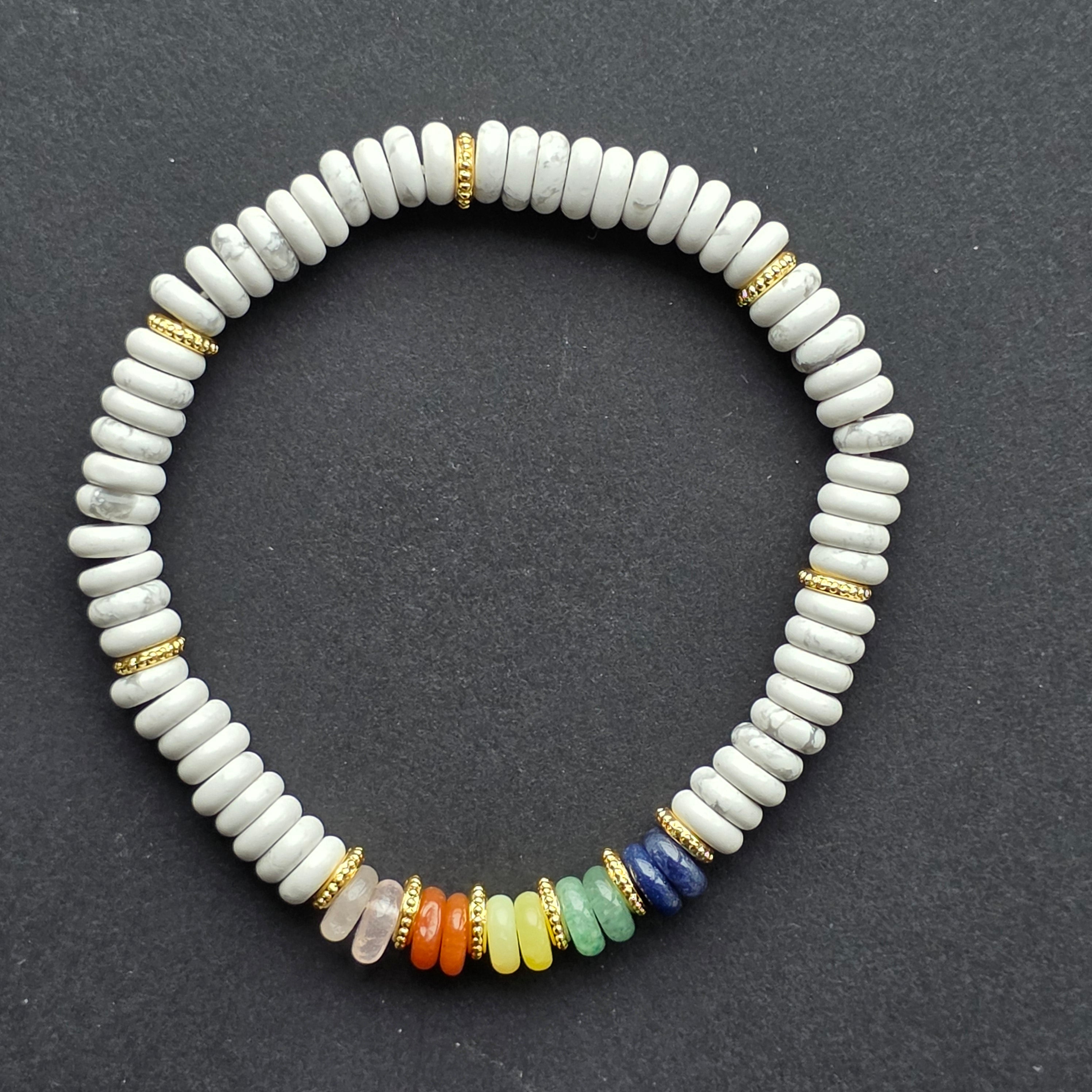 Descriere - Бяла дискова гривна от хаулит | 7 чакри