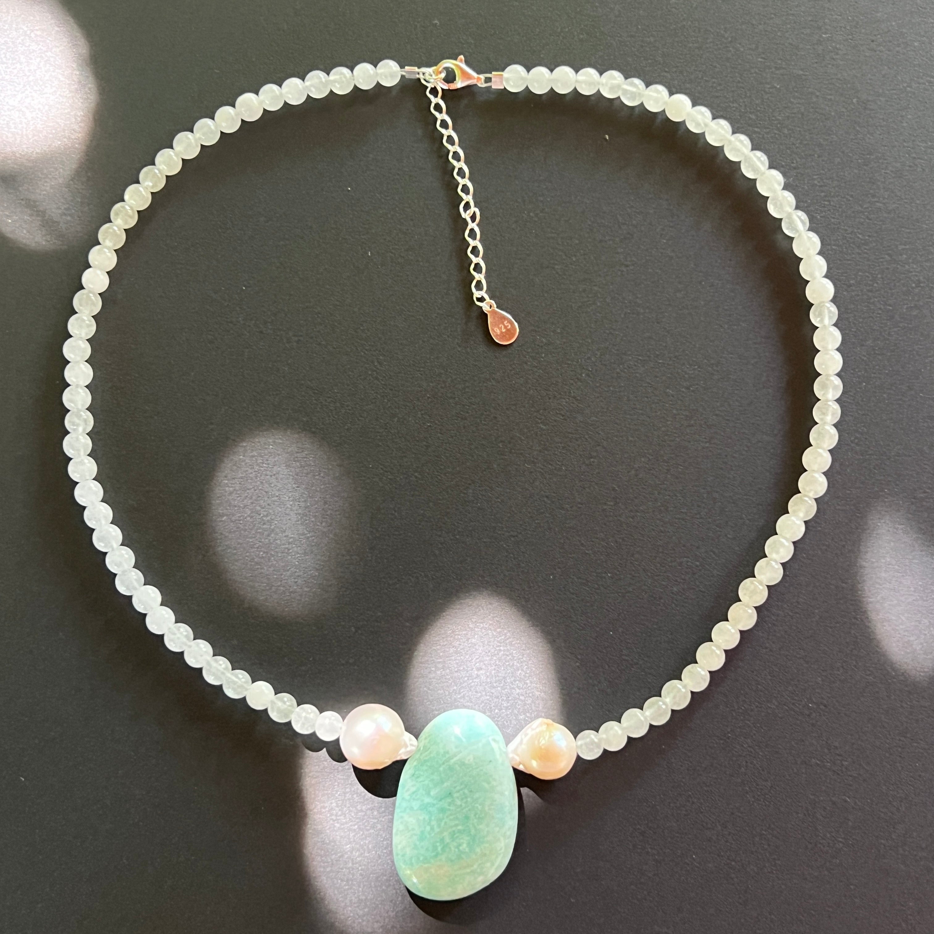 Бял нефритен гердан с амазонит и перли Inner Peace #65