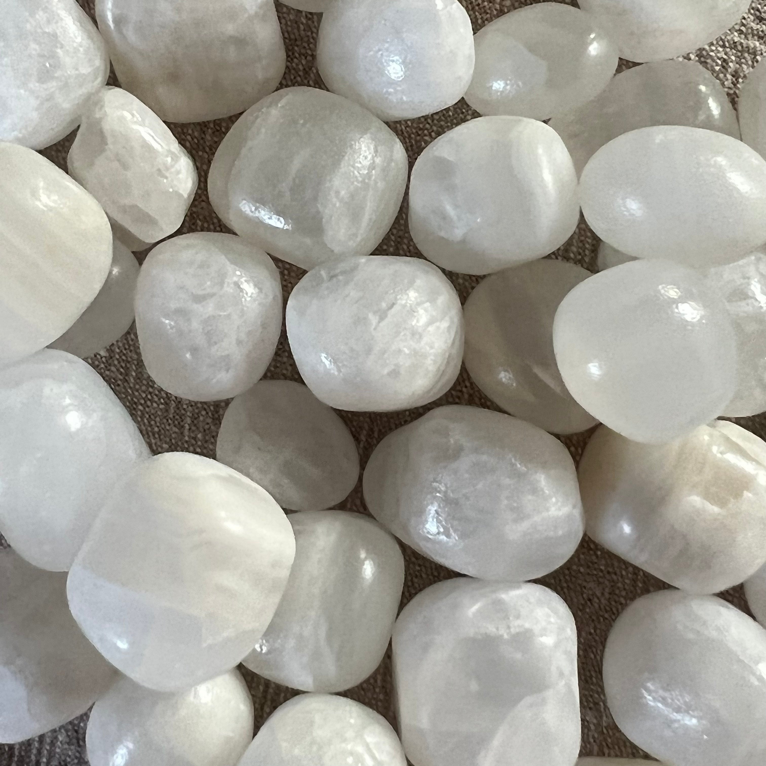 Бял оникс, полирани камъни, с размери между 2-3 см. Цената варира в зависимост от размера на камъка, моля изберете желаната големина.