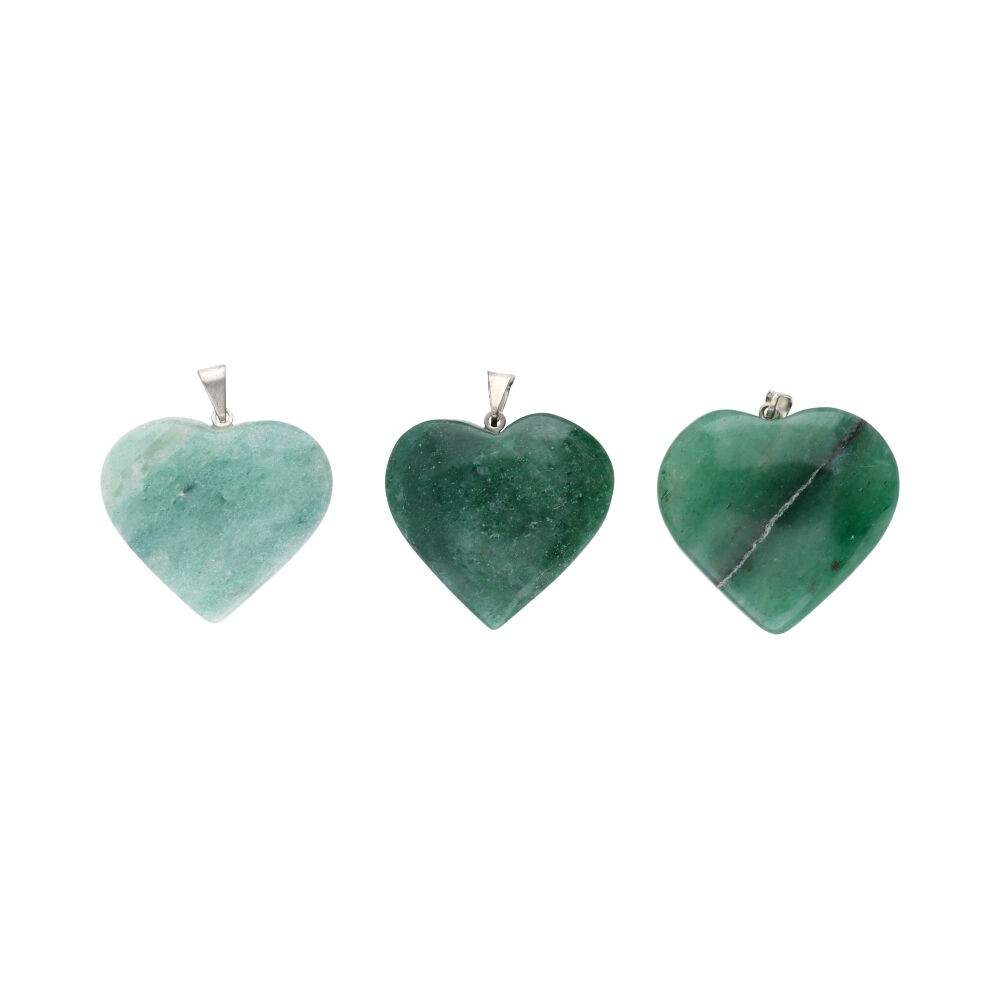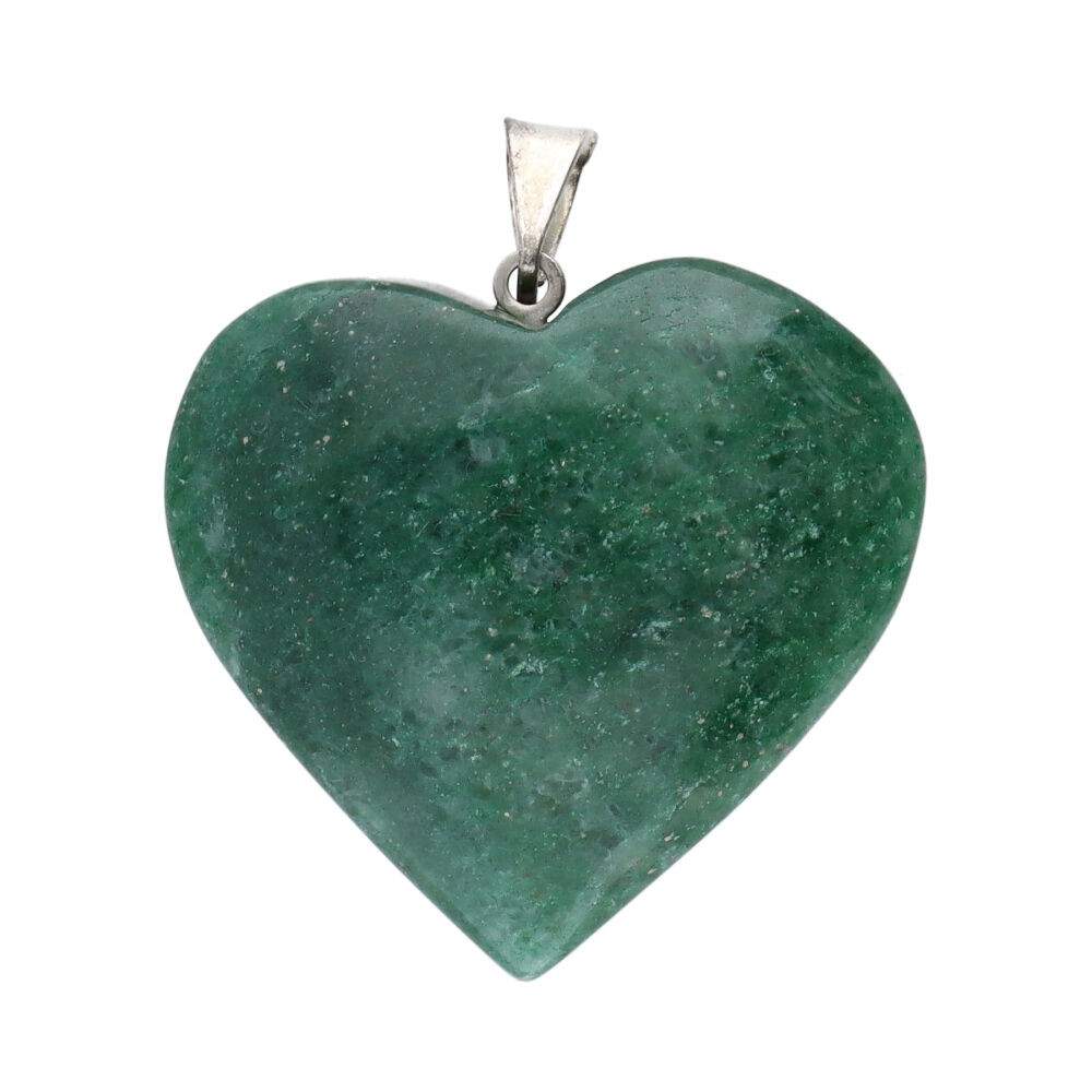 Медальонът във формата на сърце от зелен авантюрин излъчва свежест и хармония, като е символ на любов и късмет.