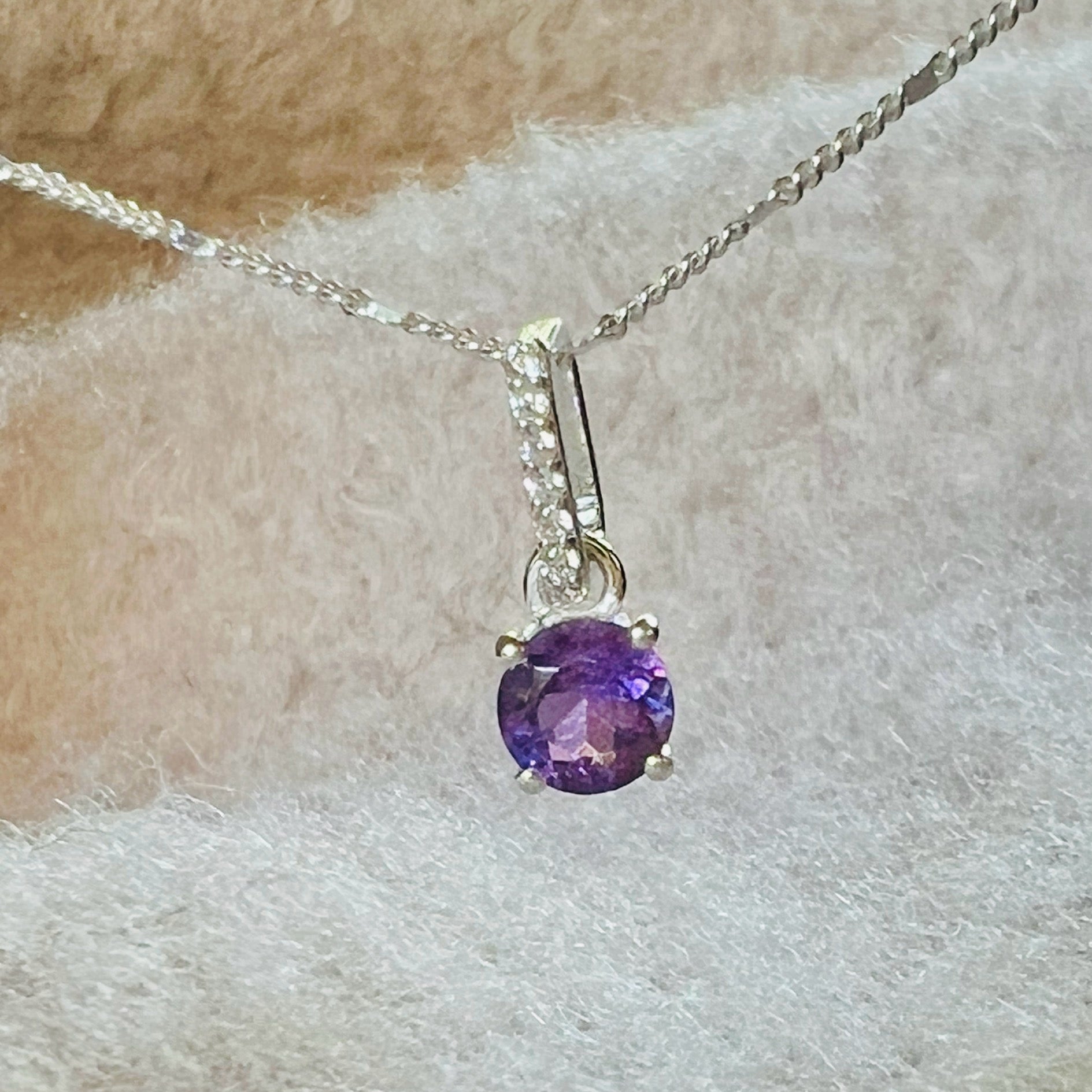 Ревюта – Висулка с аметист, бял топаз, сребро 6 мм кръгъл