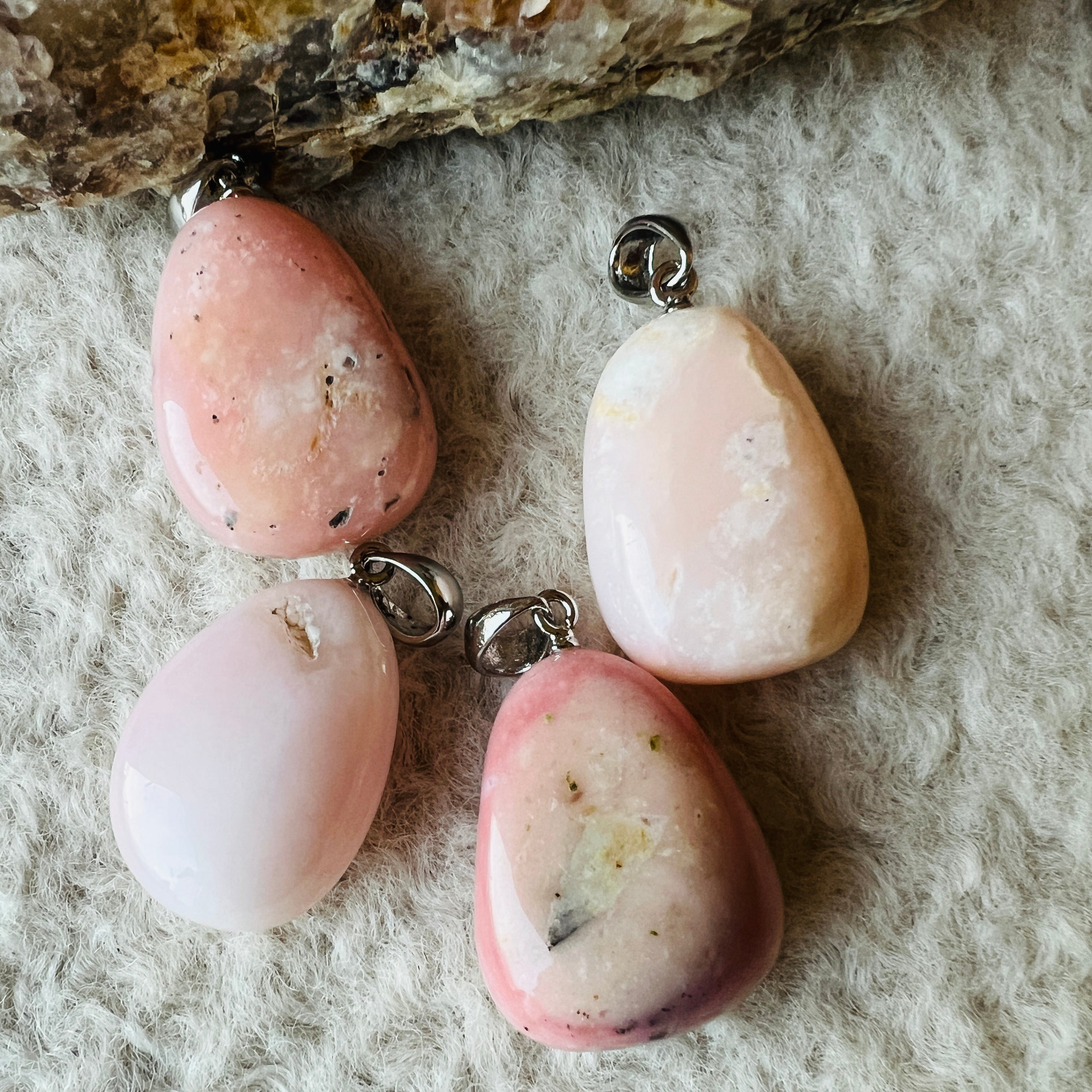 Розовият опал е разновидност на опала, ценена за своите деликатни пастелнорозови нюанси. Този тип опал идва главно от Перу, една от малкото източници на розов опал в света. Характерният му цвят варира от светлорозово до по-наситени тонове на сьомгово розово, понякога с деликатни жилки или полупрозрачна непрозрачност.
