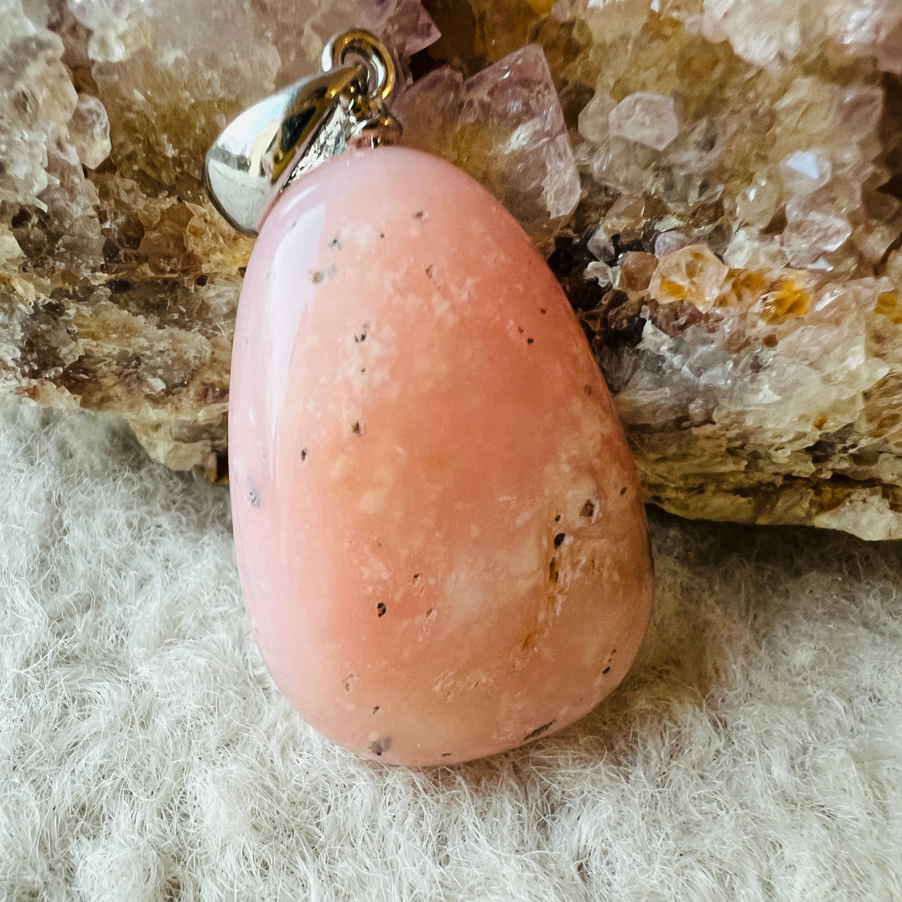 Перуанският розов опал често се свързва с успокояване и емоционално изцеление, считан за камък, който носи вътрешен мир и баланс.