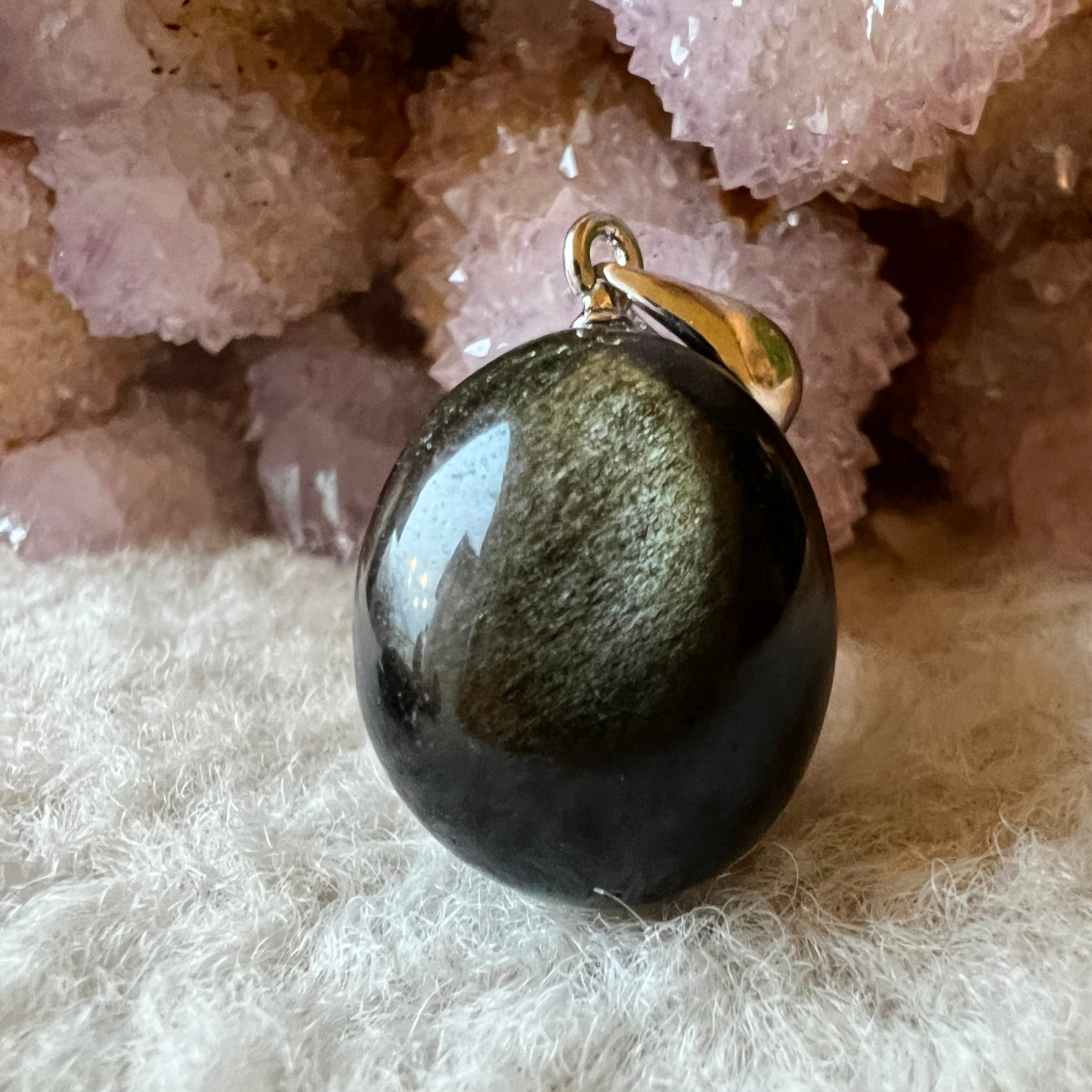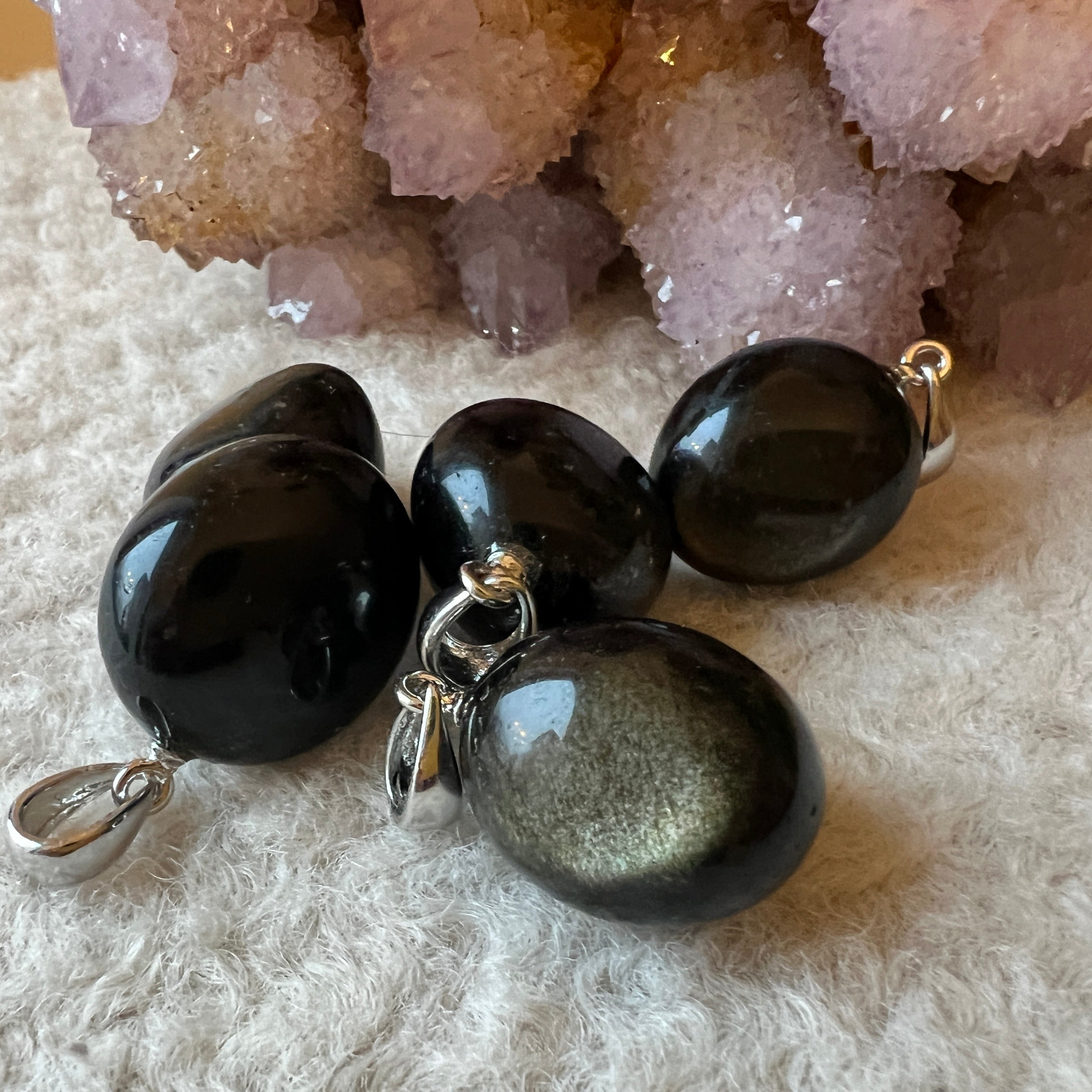 Descriere - Висулка с сребърен обсидиан, тъмбъл