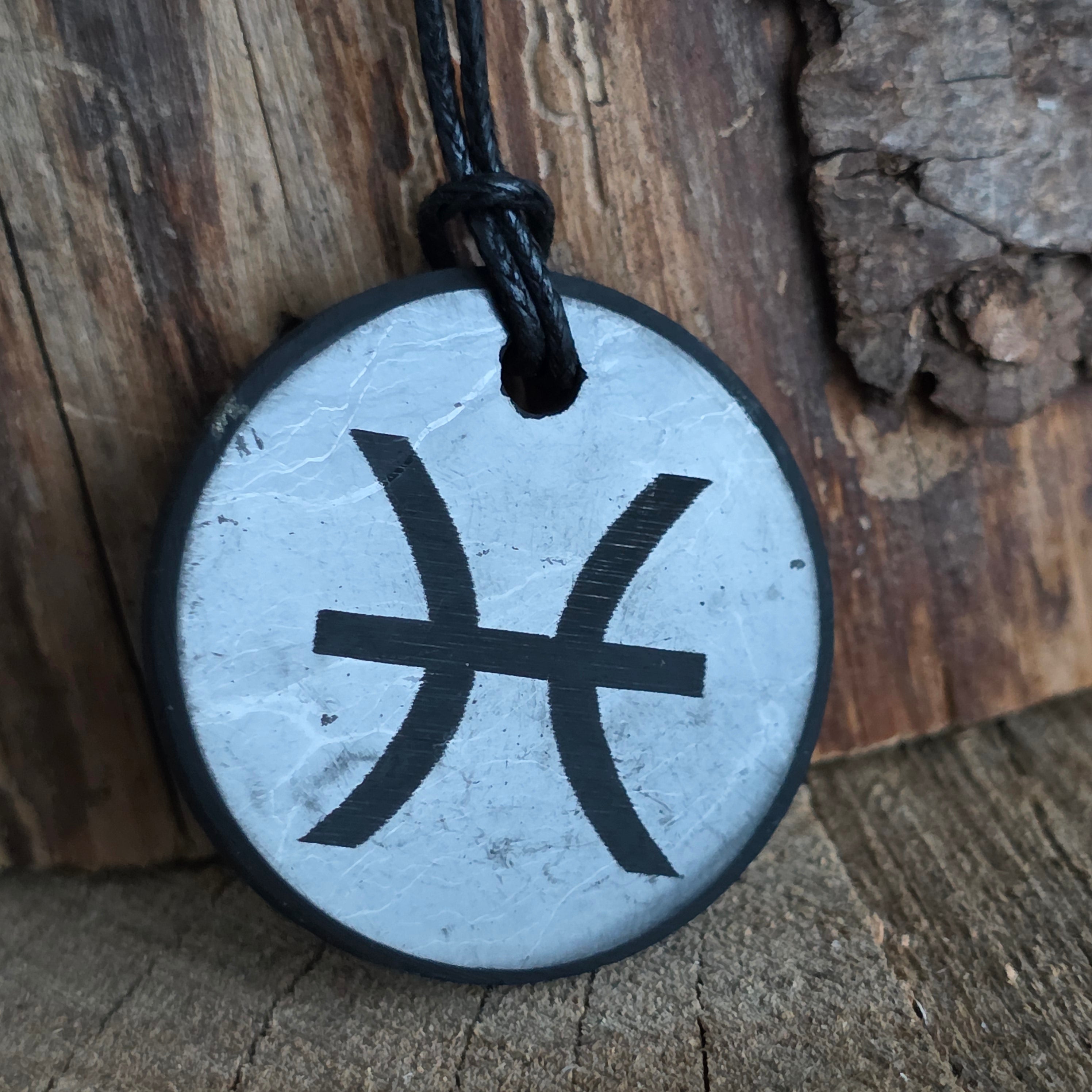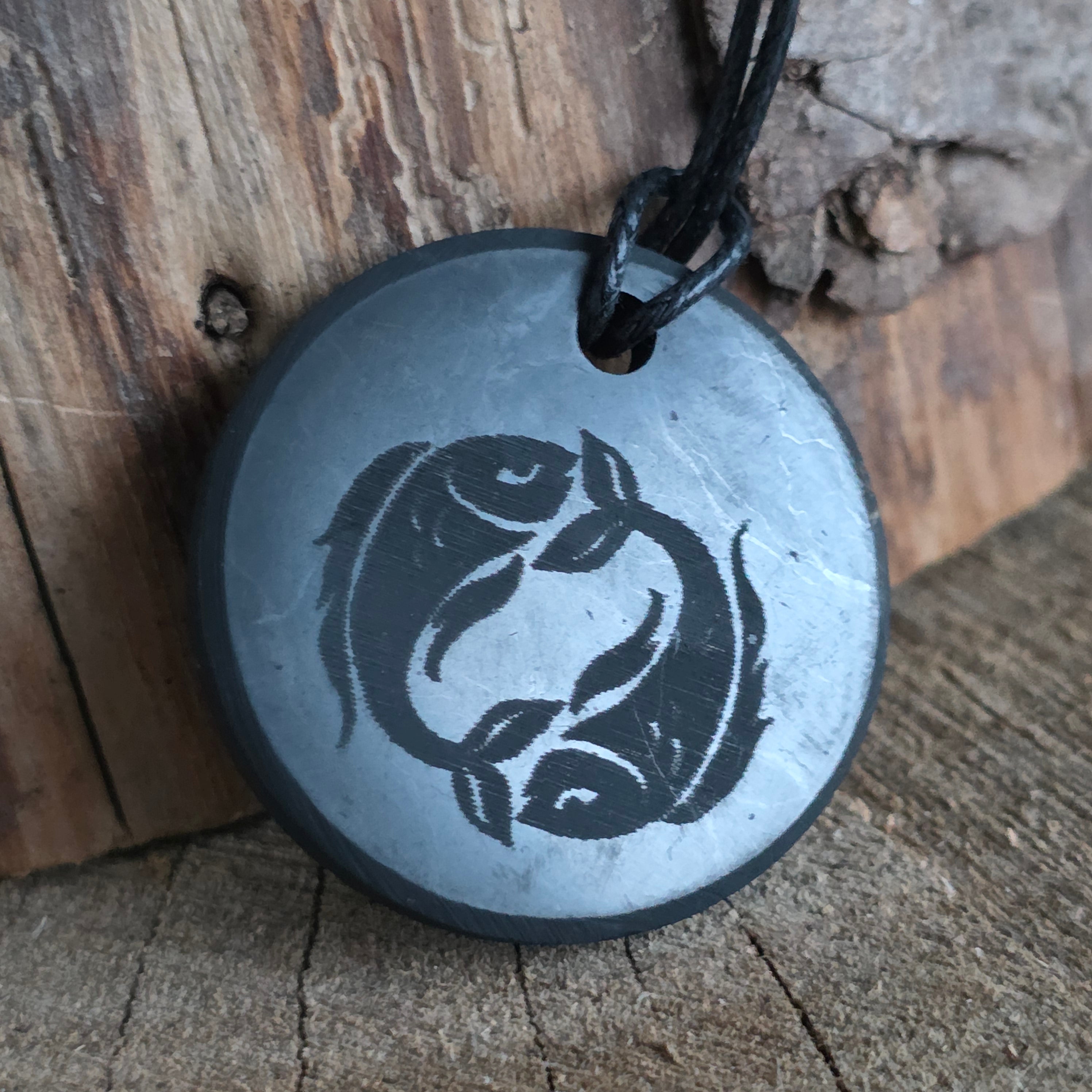 - Форма на висулката: кръгла, гравирана със символа на зодия Риби от двете страни