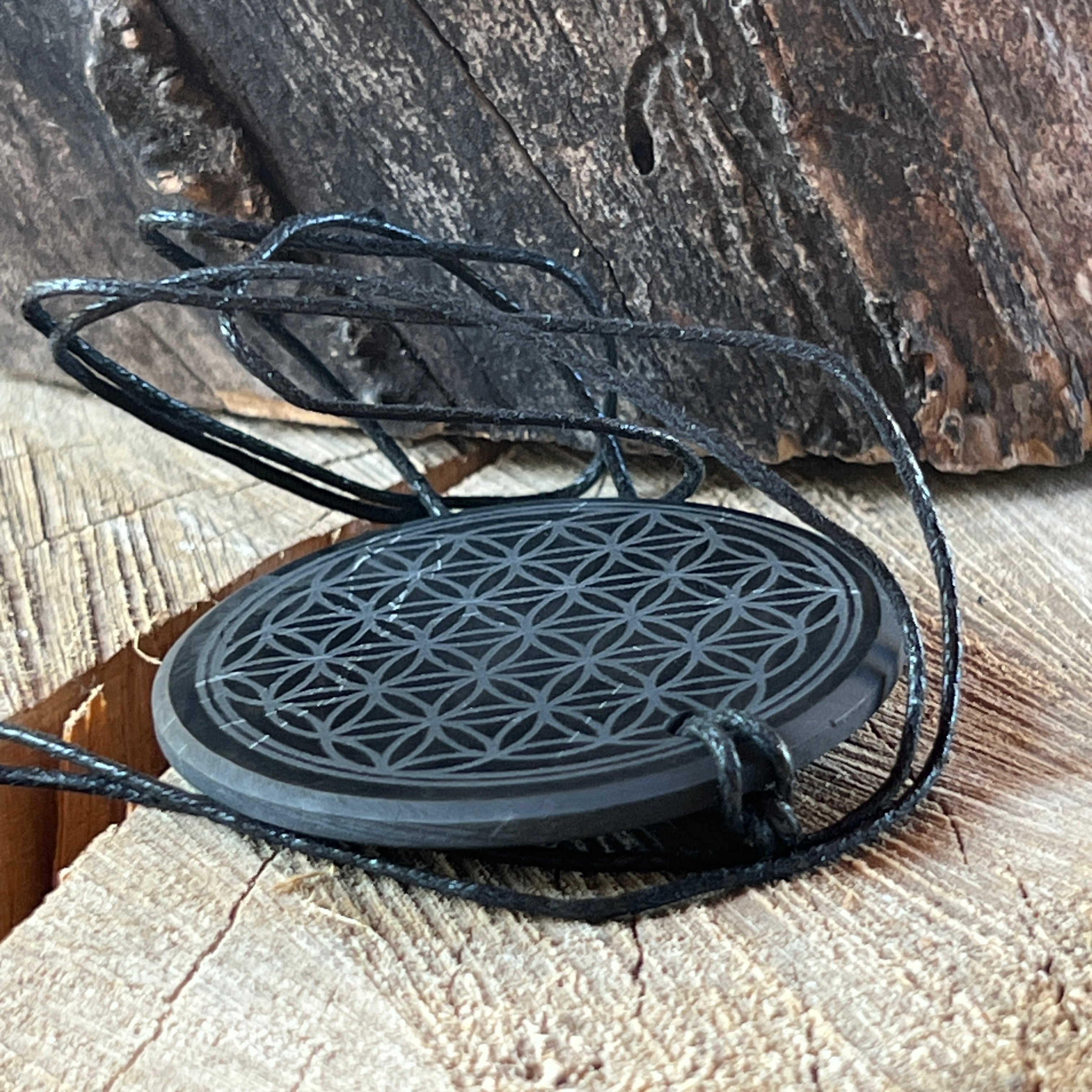 Носете този шунгитов медальон Цветето на Живота като кръг от светлина, който ви обгръща и защитава.