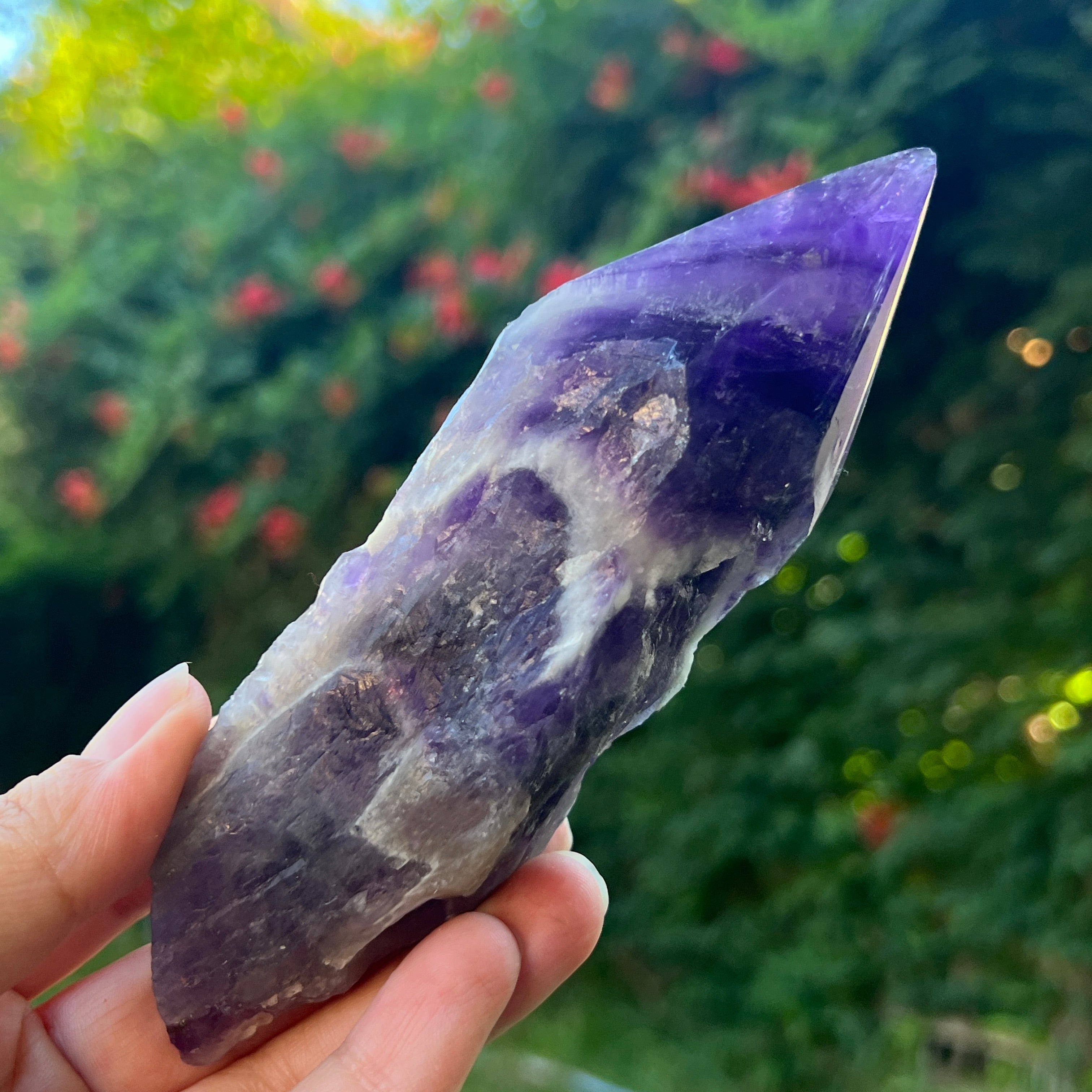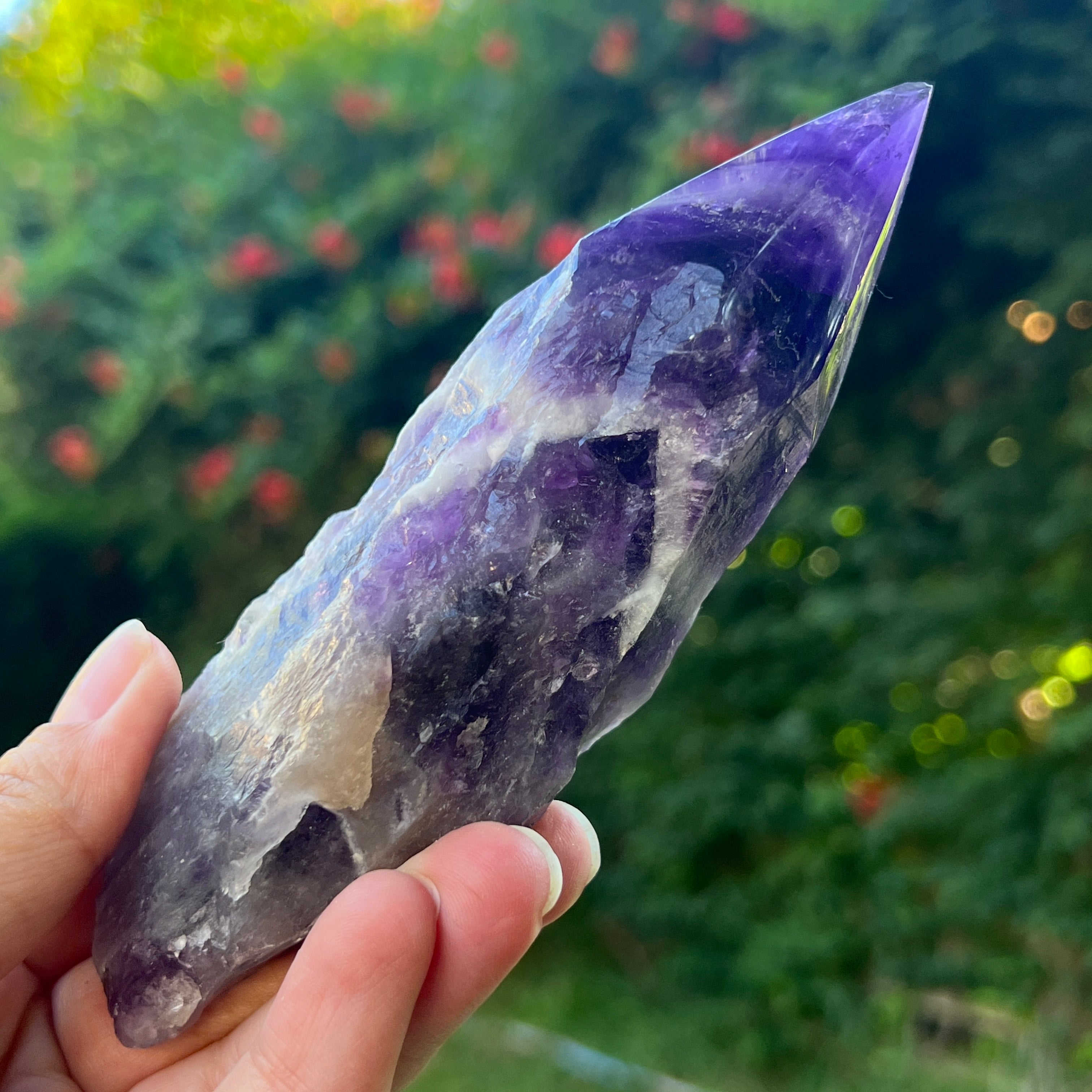 Аметистът шеврон може да се използва за медитация, като бижу или за да добави естествен и елегантен акцент в дома или офиса.