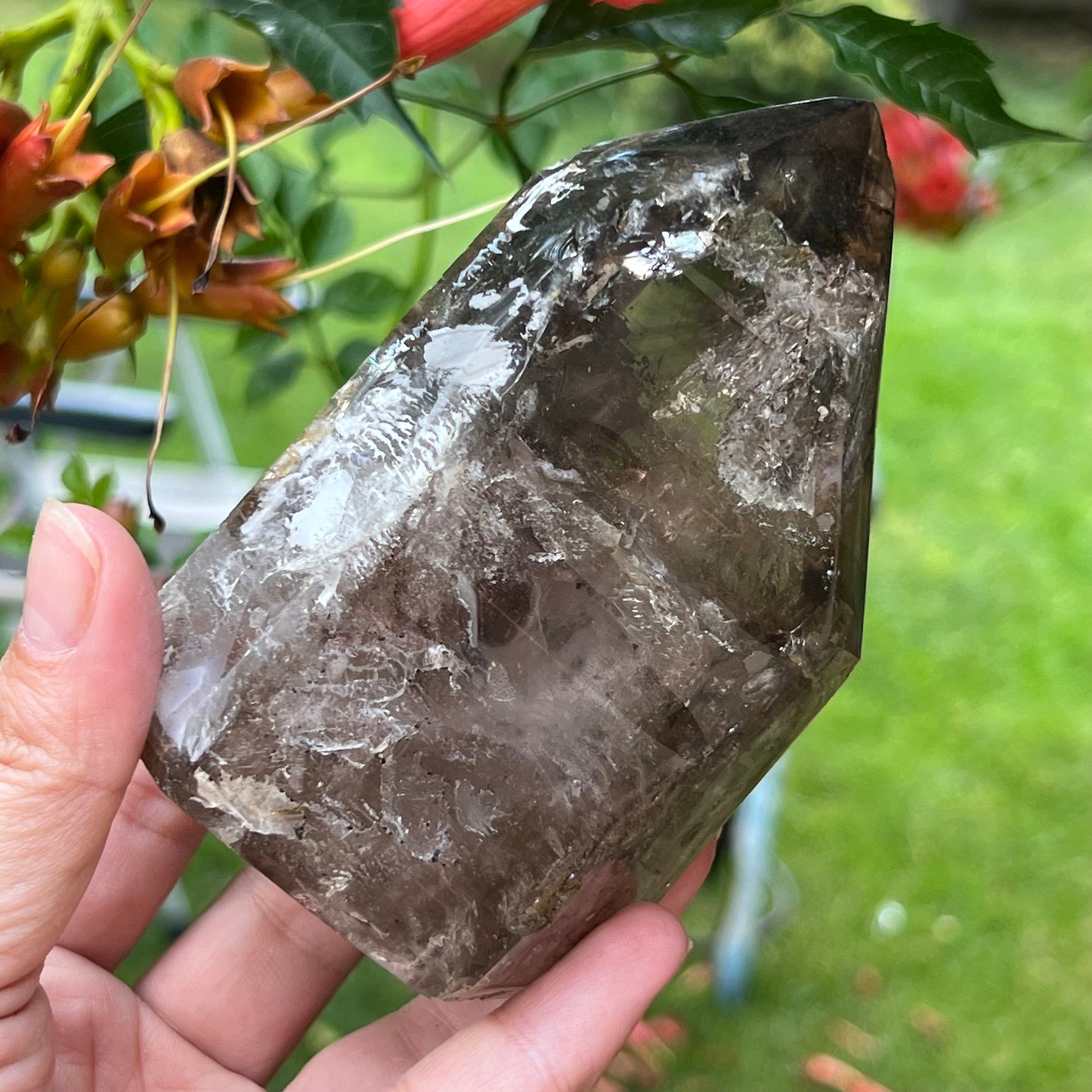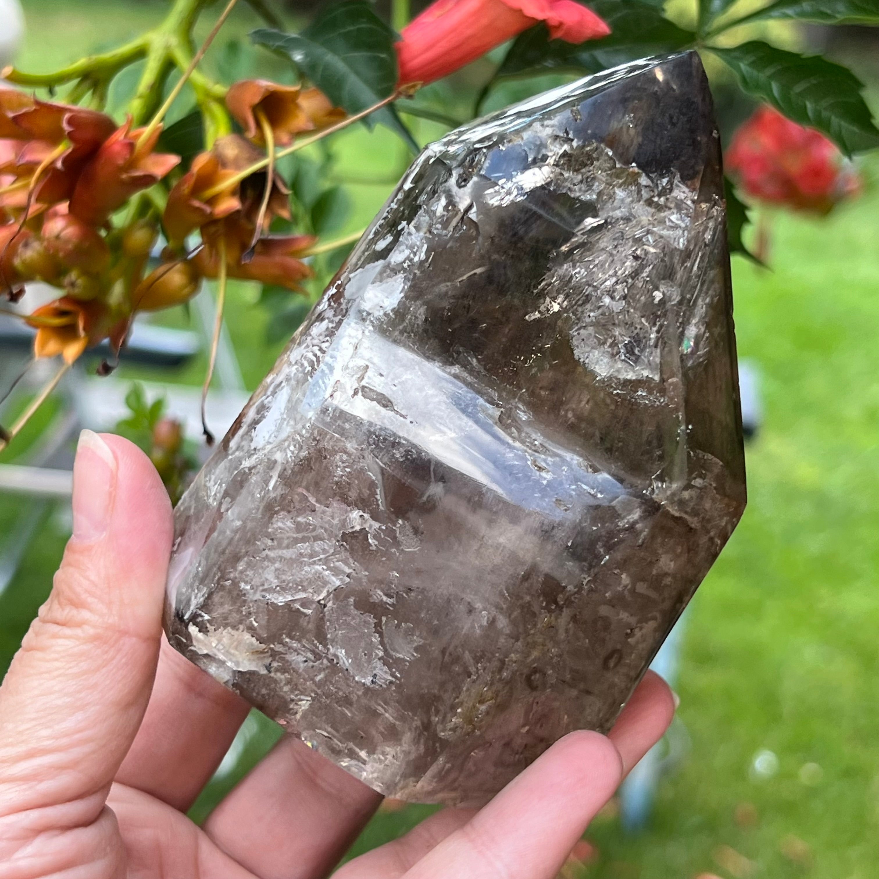 Връх / генератор димчест кварц Мадагаскар модел 1, размер 11 см * 7.5 * 5 см