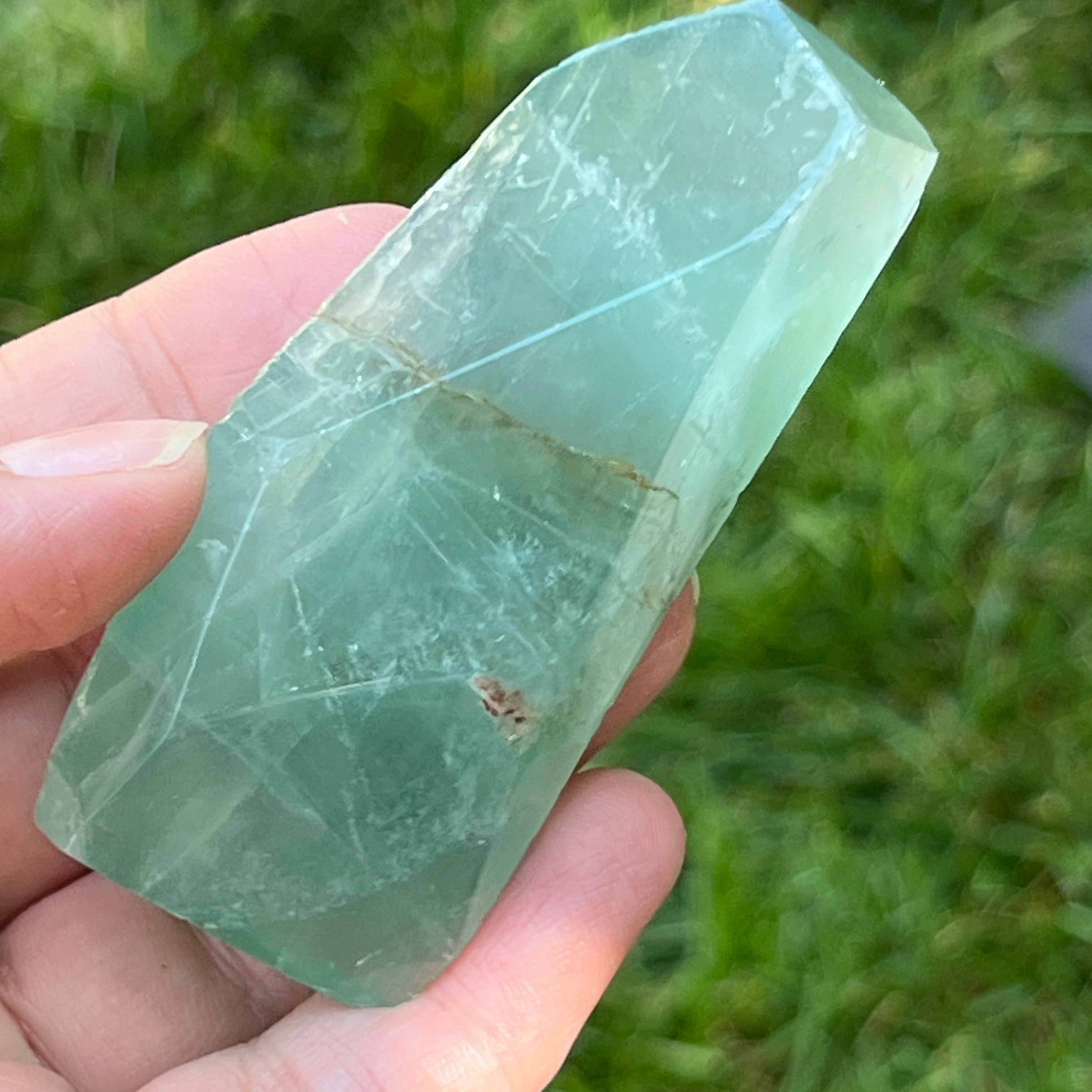 Зеленият флуорит балансира сърдечната чакра и помага за подобряване на междуличностните отношения. Той свързва умът и сърцето, за да донесе баланс между мислите и емоциите.