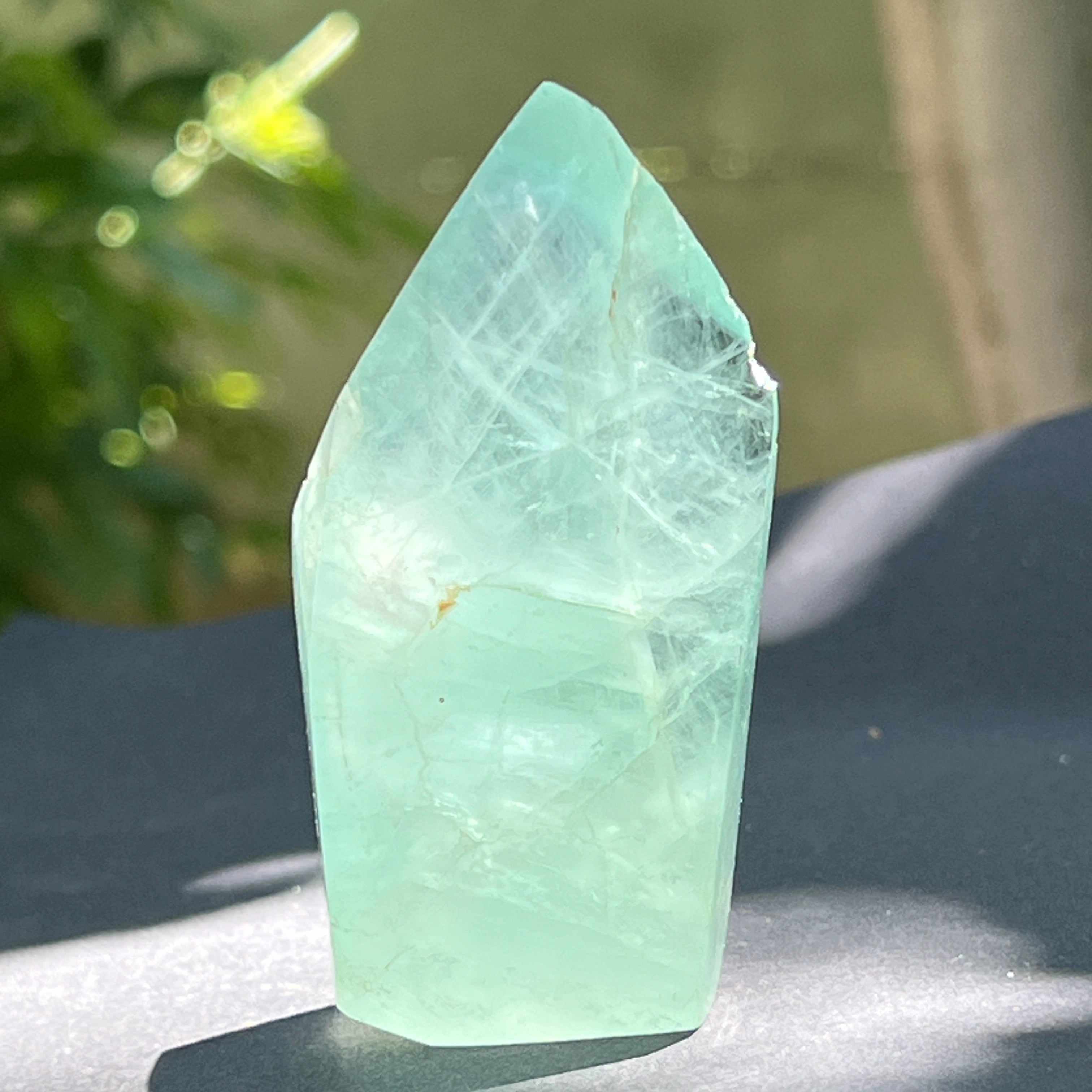 Зеленият флуорит балансира сърдечната чакра и помага за подобряване на междуличностните отношения. Той свързва ума и сърцето, за да внесе баланс между мислите и емоциите.
