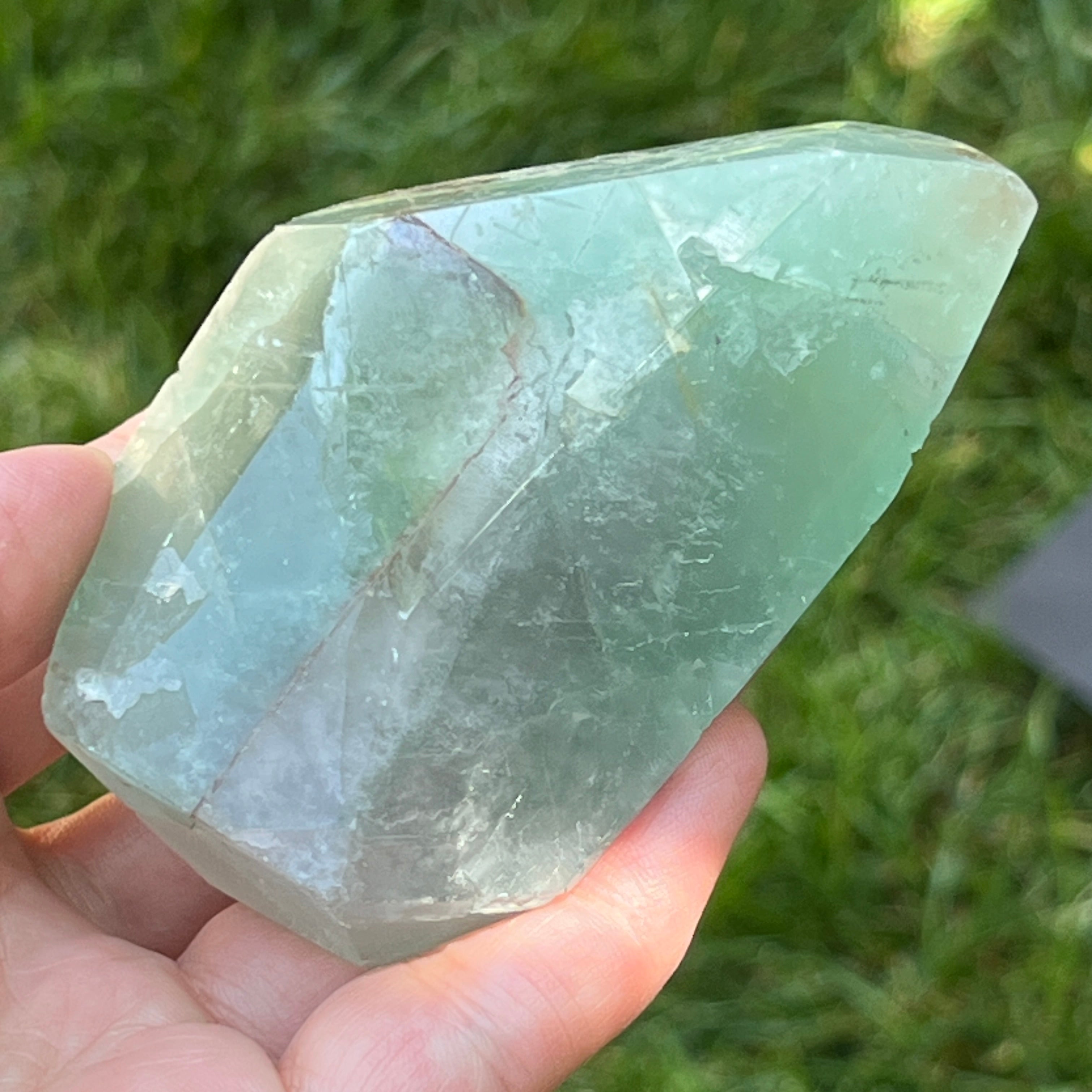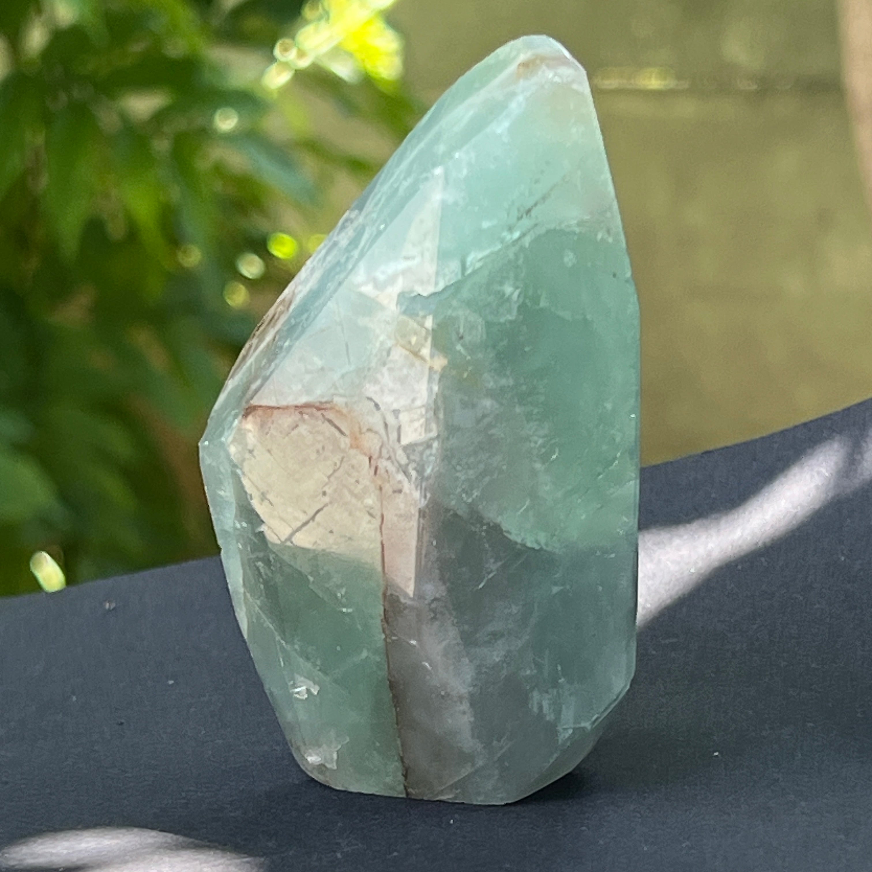 Зеленият флуорит балансира сърдечната чакра и спомага за подобряване на междуличностните отношения. Той свързва ума и сърцето, за да донесе баланс между мисълта и емоцията.