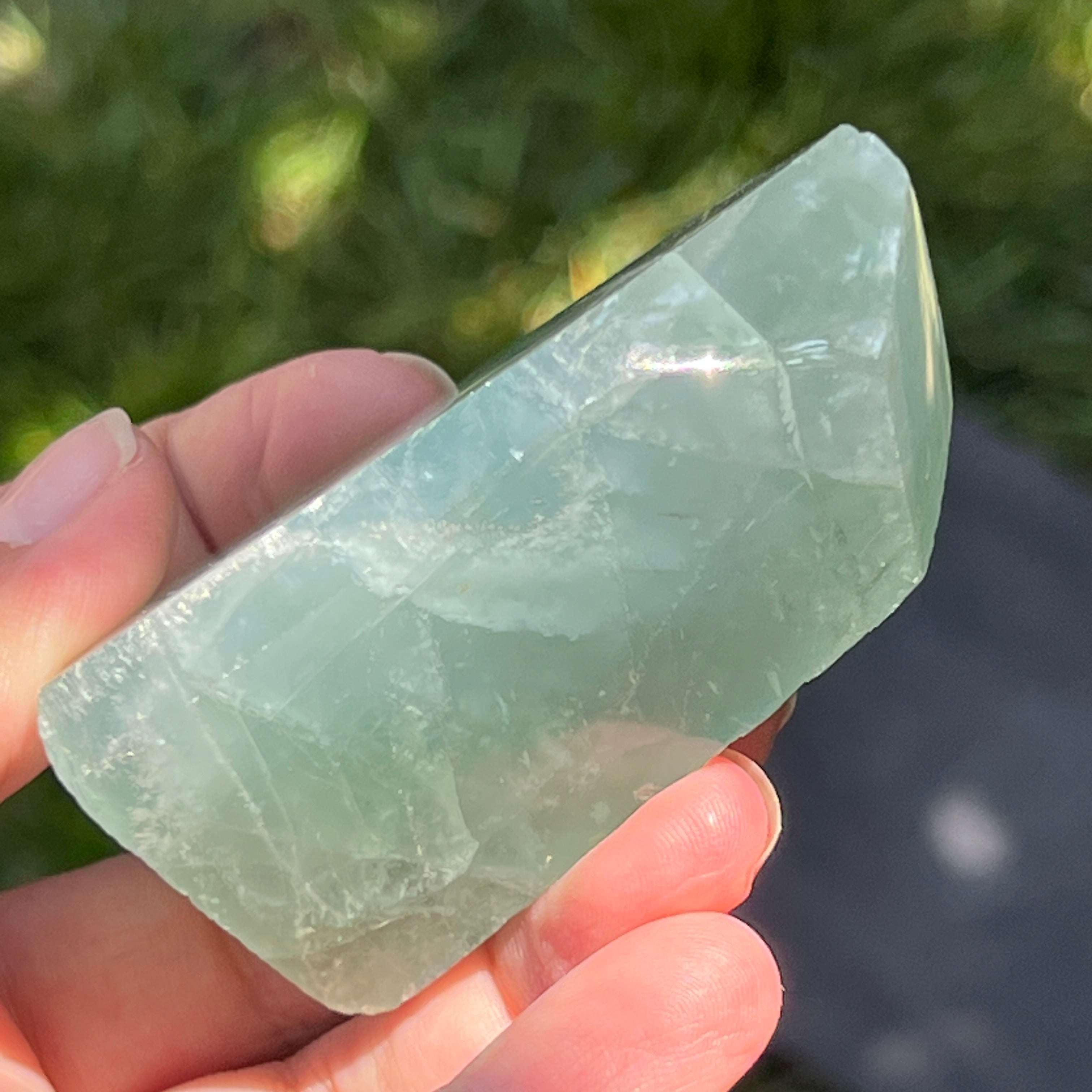 Зеленият флуорит балансира сърдечната чакра и помага за подобряване на междуличностните отношения. Той свързва умът и сърцето, за да донесе баланс между мислите и емоциите.
