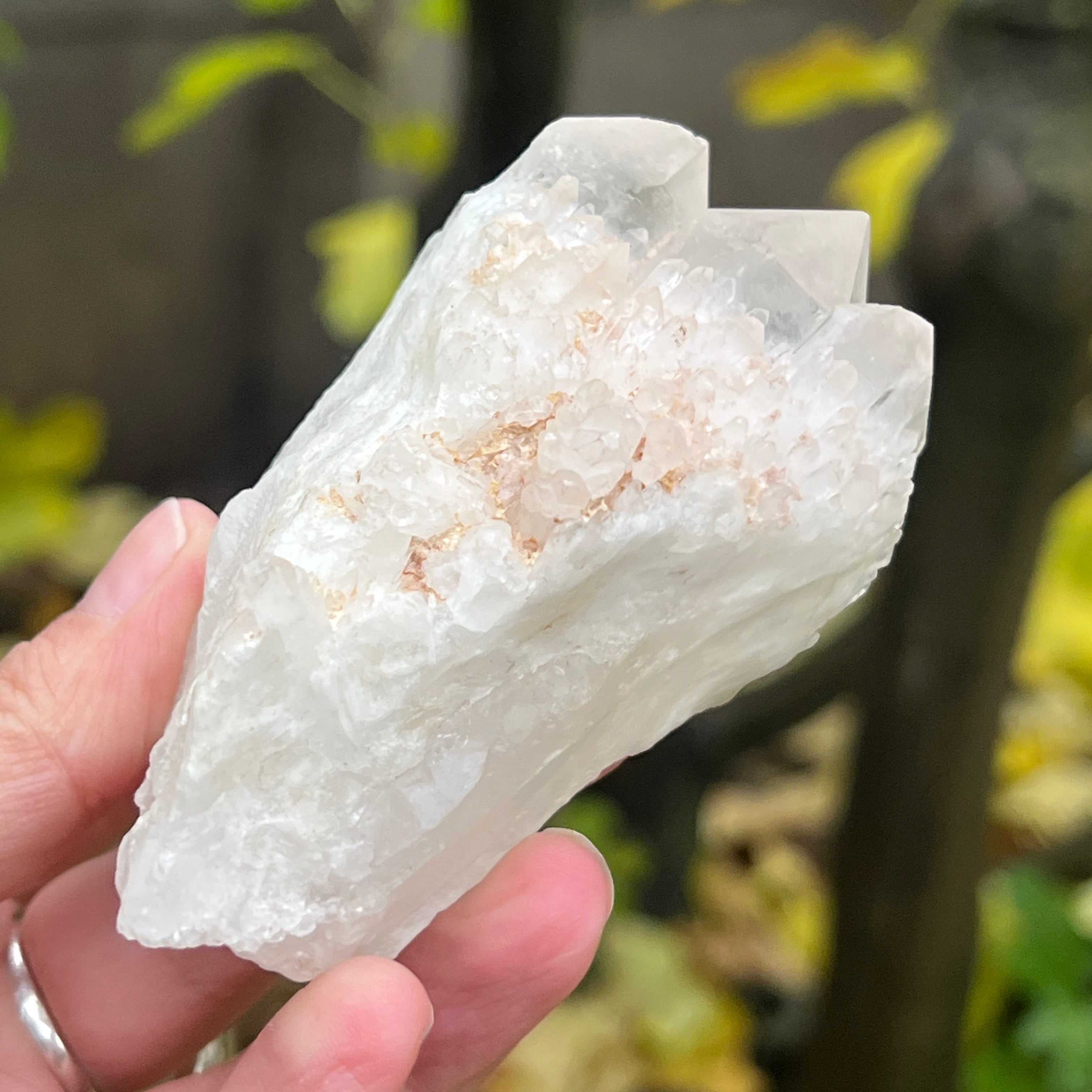 Връх, който изглежда изваян от самата светлина. Небесен кварц, известен още като кварцова свещ, съчетава силата на кварцов кристал с нежността и блясъка на вътрешния пламък. Неговата уникална форма, наподобяваща кристален ананас, излъчва енергия на дълбоко пречистване и връзка с по-високите нива на съзнанието.