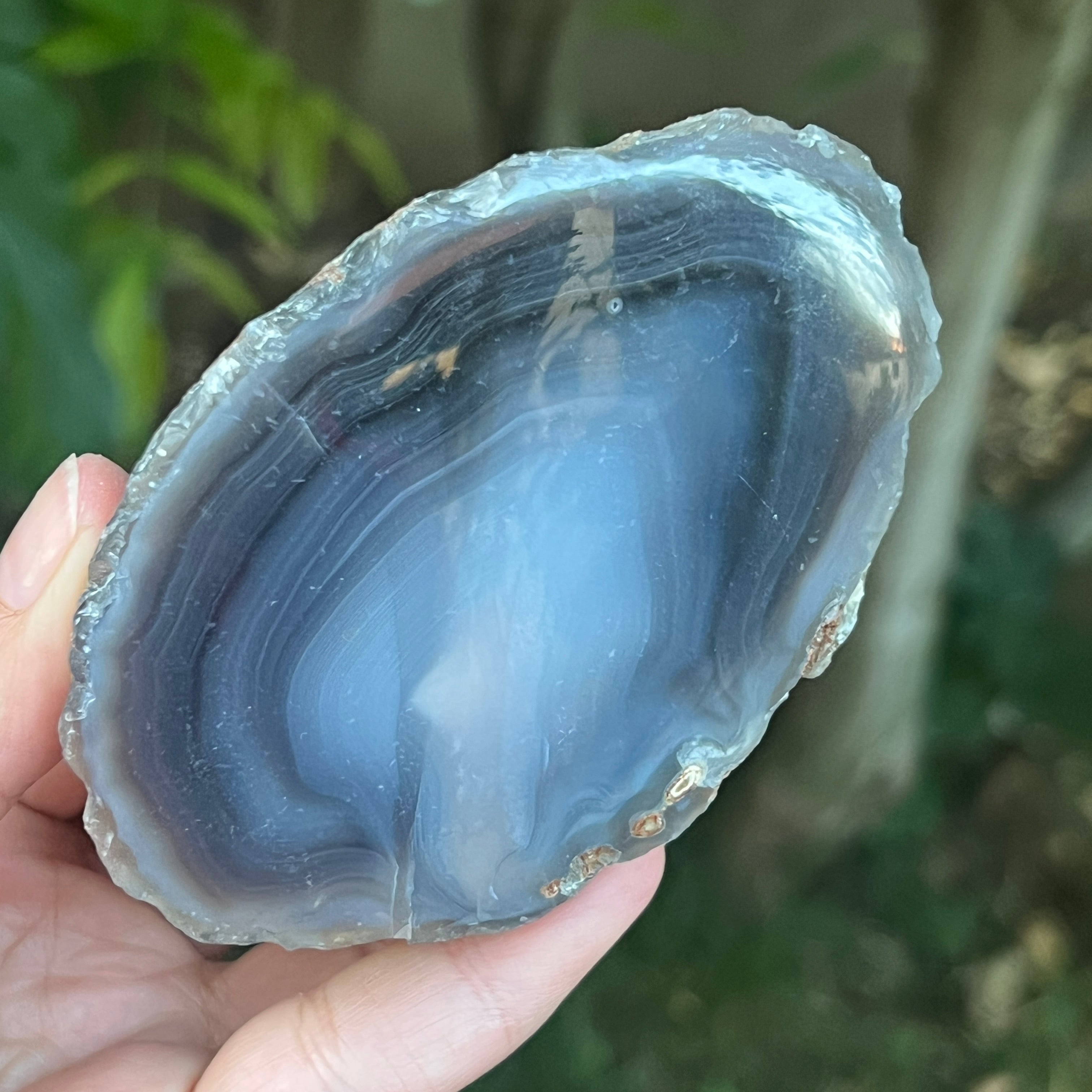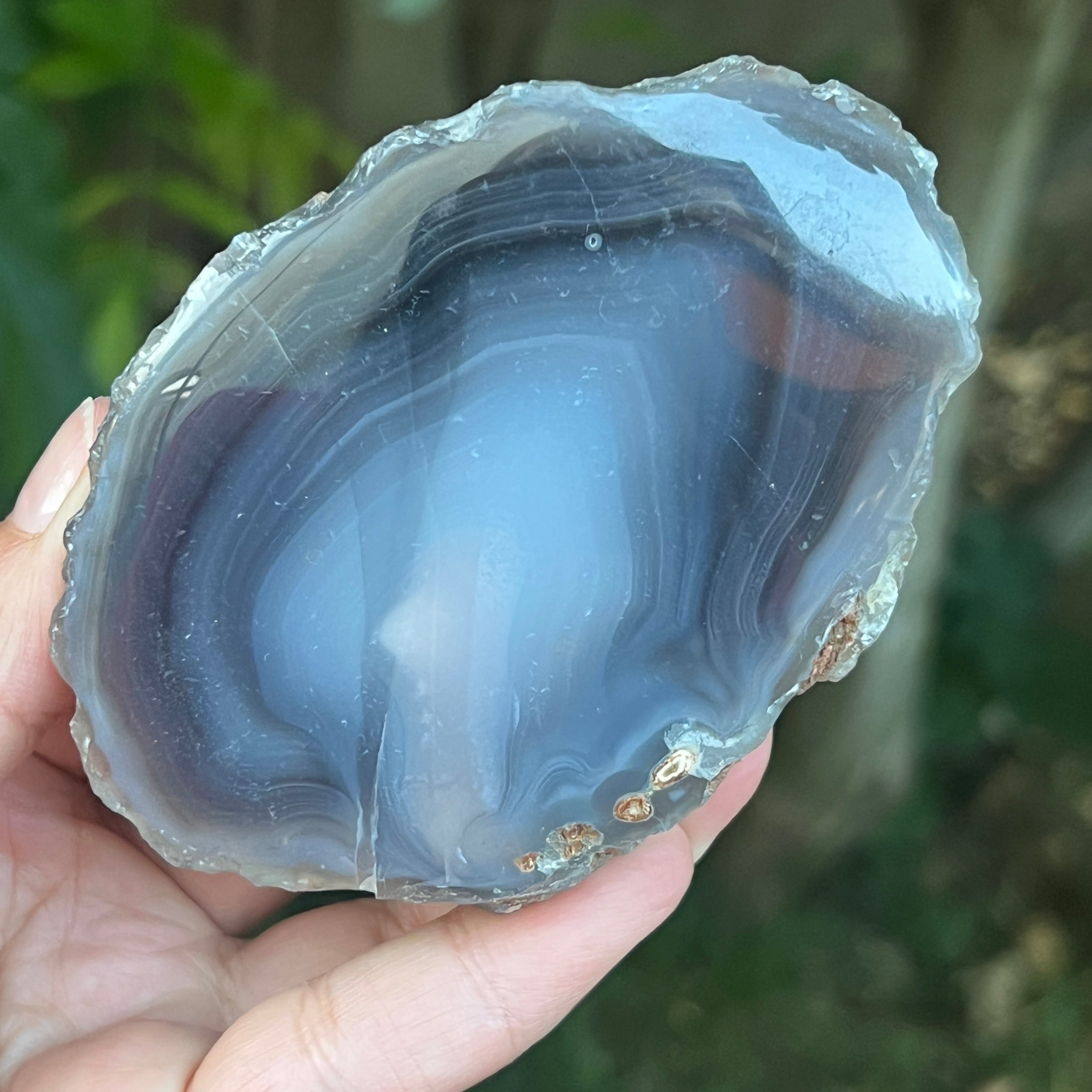 Ботсванският ахат е рядък и елегантен вид ахат, известен със своите фини ивици в нюанси на сиво, розово, бяло и кафяво, произхождащ от Ботсвана. Това е камък на емоционалния комфорт и защита, който успокоява дълбоките тревоги и страхове. Поддържа процесите на вътрешна трансформация, помагайки за освобождаване от негативно мислене. Свързва се с кореновата чакра и чакрата на третото око (Ajna – чакра 6), насърчавайки вътрешната стабилност и ментална яснота. Ботсванският ахат често се използва в медитация за подобряване на концентрацията и интуицията.